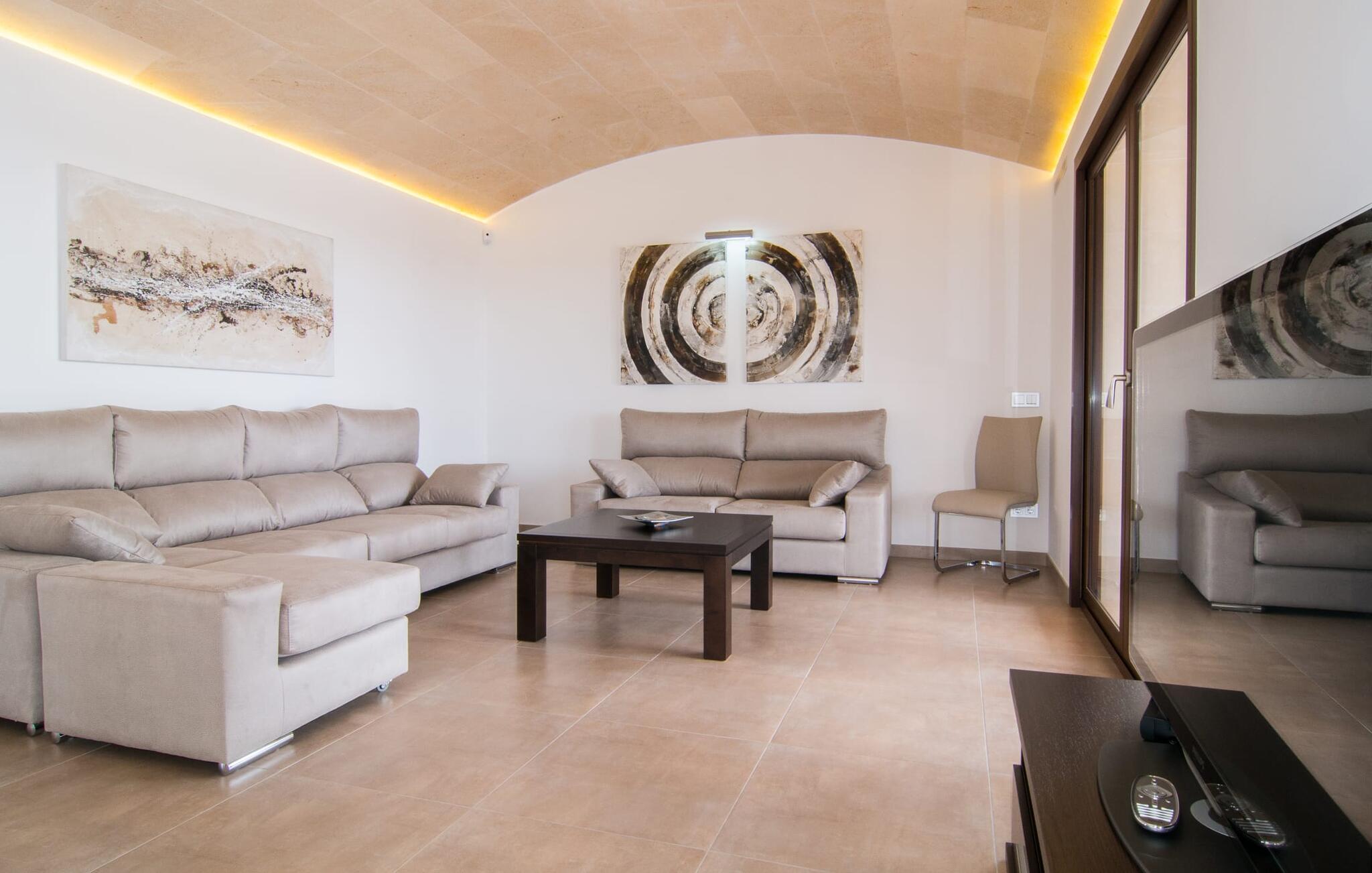 Den stilfulde, moderne og alligevel typisk mallorcanske villa i autentisk stenbrudskonstruktion stod først færdig i 2014 og henvender sig især til familier og feriegæster, der leder efter afslapning. Ved første øjekast bliver vi mødt af en imponerende to-etagers bygning i venlige, farverige terracotta-toner. Men på trods af den traditionelle stil med kurvebuer på en fremspringende terrasse og balkonen ovenover, erkender det trænede øje hurtigt, at der er tale om postmoderne arkitektur. Arkitekturen kan genkendes på pandekagedesignet eller detaljer som den lodrette lysstribe. Udearealet omkring huset er nyplantet og mangler endnu at afsløre sin fulde pragt. Ikke desto mindre kan du allerede nu nyde udsigten over en olivenlund og det grønne. Under den overdækkede terrasse ved huset er der en afslappet polyrattan lounge lavet af mørkt flet med lyse hynder. Samtidig har denne frodige, godt skyggefulde terrasse også et stort glasbord, der kan rumme op til 8 personer. Her kan du for eksempel have en fantastisk grill, da der er en grill. Går du et par trin ned fra terrassen over det grønne område dekoreret med træskulpturer, kommer du til det store poolområde på 10 x 5 meter. Det særlige ved det er, udover den omkringliggende solterrasse og den udendørs bruser, en anden, fladere pool, der fører ned ad trappen til den 1,80 m dybe pool. Dette gør det ideelt for babyer eller småbørn at plaske rundt i. Husets indretning er ikke kun harmonisk og stilfuldt moderne, men harmonerer også perfekt med traditionen for den ydre skal. Alene de hvælvede lofter i den store stue/spisestue og køkken afspejler den traditionelle konstruktion og giver den postmoderne indretning en vis hygge. Efter den moderne filosofi om åbne (funktionelle) rum smelter opholds-, spise- og køkkenområderne sammen med vindueselementer fra gulv til loft. Stuen er udstyret med en beige sofa - super behagelig til en afslappet aften med at se tv med LCD-tv. I den modsatte ende af rummet ligger det super smarte køkken i hvid højglans. Skabene er elegant indlejret i væggene. Det virker som om huset er bygget op omkring det virkelig flotte køkken, med den fantastiske ø i midten. Køkkenet er fuldt udstyret med elkedel, kaffemaskine, mikroovn, ovn i behagelig højde, stort køle/fryseskab kombination og meget mere. Køkkenøen fungerer også som en visuel rumdeler. Ved siden af er spisepladsen med et stort, hvidt spisebord og komfortable højryggede stole. Husets elegante, moderne stil understreges af subtile dekorative genstande såsom løgflaskekollektionen lavet af grønt glas. Farvekontrasten er meget harmonisk og samtidig uhøjtidelig enkel i forhold til den overordnede meget lyse, næsten hvide stue. I alt 4 soveværelser er lige så tiltalende som den åbne stue. Alle værelser er lyse og oversvømmet med lys og nogle har udgang til altanen over terrassen. De komfortable senge har madrasser i forskellige størrelser. Det store soveværelse har eget badeværelse med italiensk design. De resterende badeværelser har også alle et badekar eller en bruseniche og deles af de øvrige 3 soveværelser. Der er også et gæstetoilet. I soveværelserne minder mange kærlige detaljer om fortiden - såsom de synlige træbjælker - og samtidig udstråler disse værelser en smagfuld luksus, som på en behagelig måde forstærkes af en kølig underdrivelse, og som bringer de besøgende glæde på grund af deres kvalitetsdesign. og æstetik. Da den stilrene villa "Calonge" klarer balancegangen mellem tradition og modernitet, er den også beliggenhedsmæssigt fantastisk placeret. Villaen ligger mellem den lille landsby Calonge og den livligere strandby Cala D'Or. Calonge er en lille, stille landsby i et blidt bølgende landskab. I modsætning hertil byder Cala D'Or på et aktivt byliv med mange barer, restauranter, en smart lystbådehavn og adskillige små strande, der er meget populære. Andre, lige så smukke, noget roligere badebugter kan hurtigt nås. Disse omfatter Cala Mitjana og Cala Mondrago. Cala Mondragó er en del af den 766 hektar store Mondragó Naturpark. De to største bugter i denne naturpark, ses Fonts de N'Alis og s'Amarador, er forbundet med en kort gåtur ad en stenet sti. Naturelskere kan opdage en rig natur- og dyreverden uanset de fine sandstrande. Har du lyst til natteliv eller travlhed, kan du tage til Cala D'Or og tilbringe eftermiddagen eller aftenen på en af de gode restauranter. Vi hos Fincallorca ønsker vores feriegæster et afslappende og varieret ophold i højkvalitetsvillaen "Calonge" med en følelse af luksus. Den supertrendy nye villa "Calonge" ligger i landlige omgivelser mellem den lille by Calonge og den livlige kystby Cala D'Or. Den førsteklasses udstyrede villa imponerer med en vidunderlig blanding af rustik arkitektonisk stil og forfriskende lyst interiørdesign for at opfylde de højeste krav. Der er indkøbsmuligheder i Calonge såvel som i Cala D'Or eller Santanyi. Strandene i Cala D'Or og andre naturlige strande ligger kun få kilometer væk og kan nås utrolig hurtigt. Bemærk venligst, at denne ejendom ikke accepterer ungdomsgrupper eller polterabender. En ungdomsgruppe på denne ejendom består af personer i alderen [30] eller yngre. Book ikke denne ejendom, hvis du er en ungdomsgruppe eller en polterabendgruppe, da din reservation vil blive afvist, når den er booket, hvilket også kan være tilfældet ved ankomst til ejendommen eller under dit ophold, og du vil ikke modtage en refusion. Dette er et Fincallorca feriehus.
