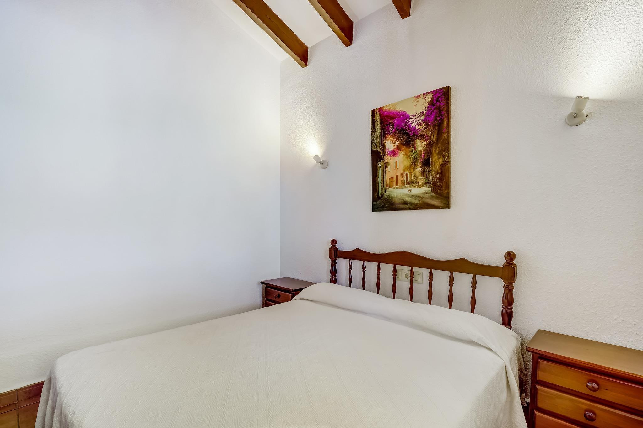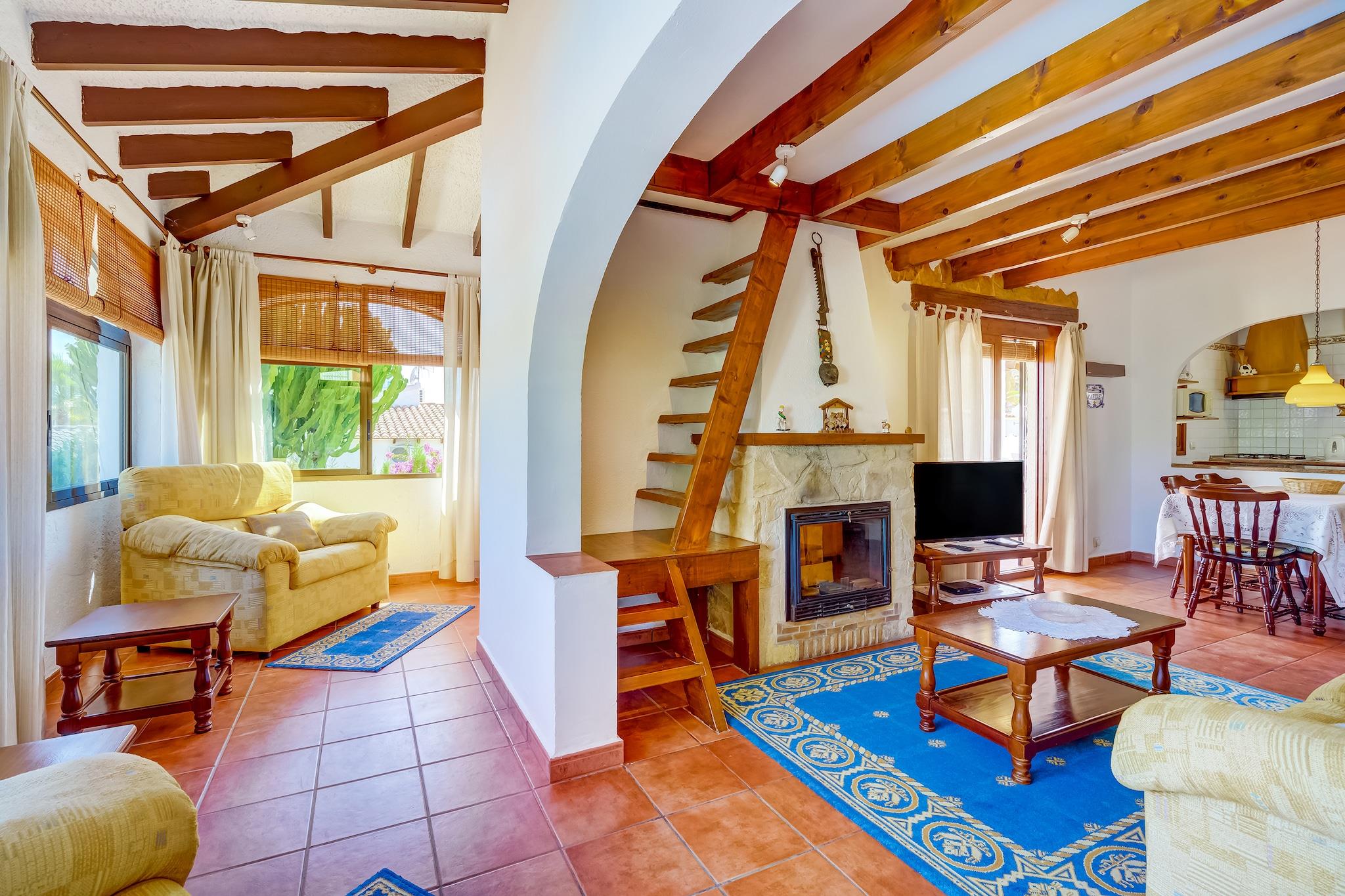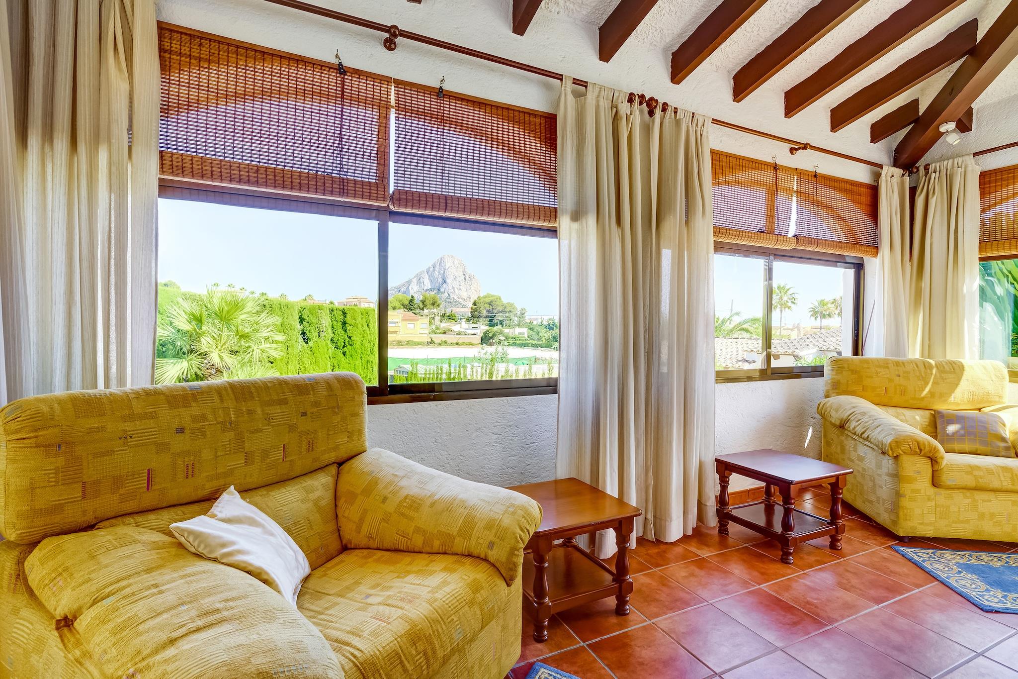 Denne charmerende villa i Calpes fredelige urbanisering Ortenbach tilbyder et afslappende tilflugtssted kun få minutter fra stranden. Ideel til familier, det ligger 1,5 km fra byens centrum og tæt på lokale butikker og restauranter. Gæsterne kan udforske den ikoniske naturpark Penyal d'Ifac, en dramatisk kalksten, der rejser sig fra havet, eller nyde panoramaudsigten fra Mirador Monte Toix. Calpes historiske gamle bydel og den naturskønne promenade er perfekte til afslappede gåture. Villaen har en hyggelig stue/spisestue med pejs og internationalt tv samt åbent køkken udstyret med ovn, mikroovn og køleskab med fryser. To soveværelser, et med en dobbeltseng og et andet med to enkeltsenge og en trille, kan komfortabelt rumme gæster. Et komplet badeværelse, vinterhave og udendørs bruser tilføjer bekvemmelighed. Den private indhegnede have omfatter en overdækket terrasse, grill og en 8x4 m swimmingpool (åben maj-okt), perfekt til solrige eftermiddage. Området er omgivet af kystskønhed og byder på fremragende spisning inden for 2 km. Nyd middelhavskøkkenet på Puerto Blanco, kreative retter på Enigma Cocina Con Alma eller traditionel spansk mad på El Cantonet Restaurante. Uanset om du solbader, vandrer eller udforsker Calpes kulturelle perler, er denne villa et perfekt tilflugtssted på Costa Blanca.
