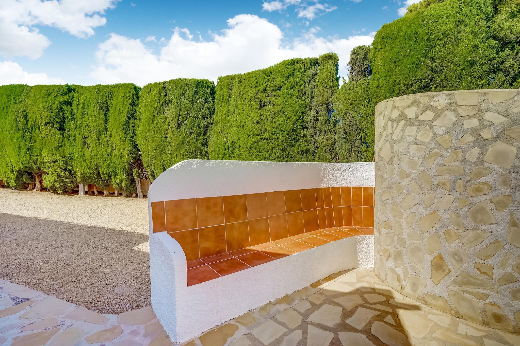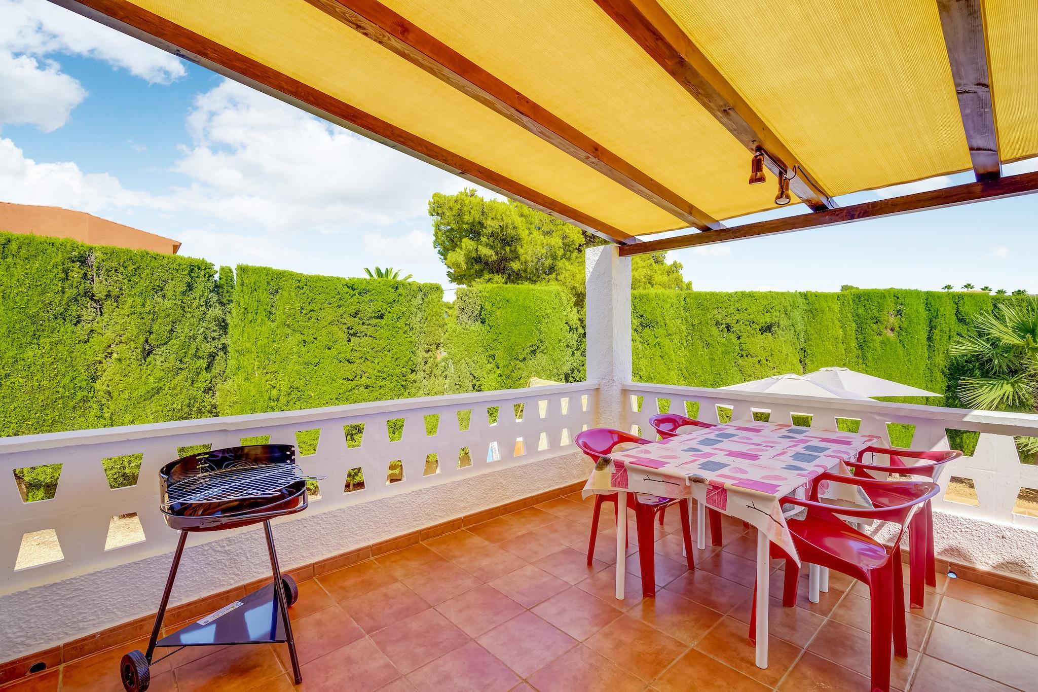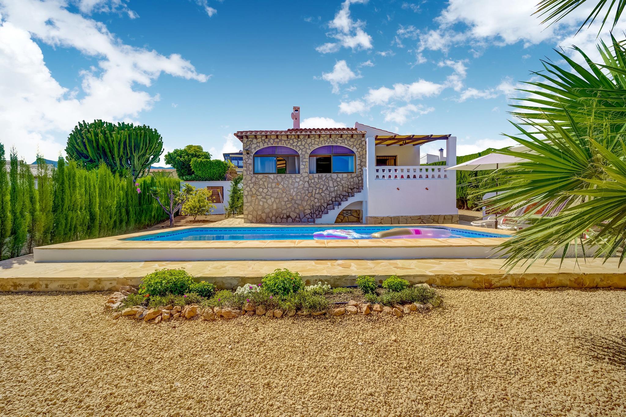 Denne charmerende villa i Calpes fredelige urbanisering Ortenbach tilbyder et afslappende tilflugtssted kun få minutter fra stranden. Ideel til familier, det ligger 1,5 km fra byens centrum og tæt på lokale butikker og restauranter. Gæsterne kan udforske den ikoniske naturpark Penyal d'Ifac, en dramatisk kalksten, der rejser sig fra havet, eller nyde panoramaudsigten fra Mirador Monte Toix. Calpes historiske gamle bydel og den naturskønne promenade er perfekte til afslappede gåture. Villaen har en hyggelig stue/spisestue med pejs og internationalt tv samt åbent køkken udstyret med ovn, mikroovn og køleskab med fryser. To soveværelser, et med en dobbeltseng og et andet med to enkeltsenge og en trille, kan komfortabelt rumme gæster. Et komplet badeværelse, vinterhave og udendørs bruser tilføjer bekvemmelighed. Den private indhegnede have omfatter en overdækket terrasse, grill og en 8x4 m swimmingpool (åben maj-okt), perfekt til solrige eftermiddage. Området er omgivet af kystskønhed og byder på fremragende spisning inden for 2 km. Nyd middelhavskøkkenet på Puerto Blanco, kreative retter på Enigma Cocina Con Alma eller traditionel spansk mad på El Cantonet Restaurante. Uanset om du solbader, vandrer eller udforsker Calpes kulturelle perler, er denne villa et perfekt tilflugtssted på Costa Blanca.