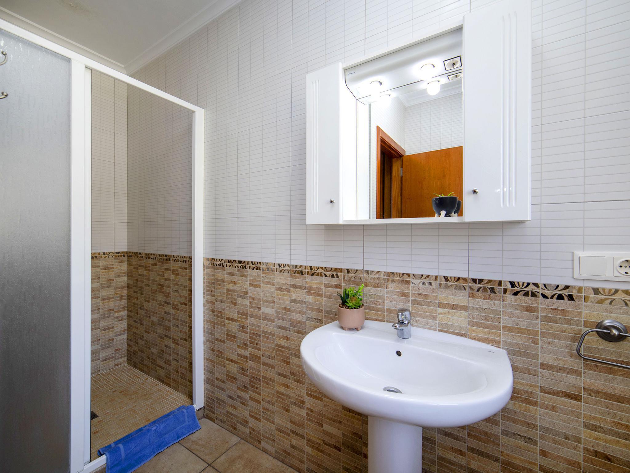 "Enrique", 6-room house 190 m2 on 2 levels. Object suitable for 10 adults. Practical and cosy furnishings: living/sleeping room with 1 sleeping facility and open-hearth fireplace (only for decoration), satellite TV. Exit to the terrace. 2 rooms, each room with 2 beds (90 cm, length 190 cm), air conditioning and forced-air heating. 1 room with 2 beds (90 cm, length 190 cm), shower/WC, air conditioning and forced-air heating. Kitchen (oven, dishwasher, 4 ceramic glass hob hotplates, toaster, kettle, microwave, freezer, electric coffee machine) with dining table. Shower/WC. Upper floor: 1 room with 1 french bed (150 cm, length 190 cm), shower/WC, air conditioning and forced-air heating. 1 room with 1 french bed (150 cm, length 190 cm), shower/WC, air conditioning and forced-air heating. Exit to the terrace. Terrace roofed. Terrace furniture, barbecue, deck chairs (5), covered balcony, sitting area. Facilities: washing machine, iron, children's high chair, baby cot for up to 2 year olds, hair dryer. Internet (WiFi, free). Parking (fenced 4 cars). Suitable for families. Maximum 2 pets/ dogs allowed. AT-438355-A // Reg. Nr.: ESFCTU00000302900027813100000000000000000AT-438355-A2