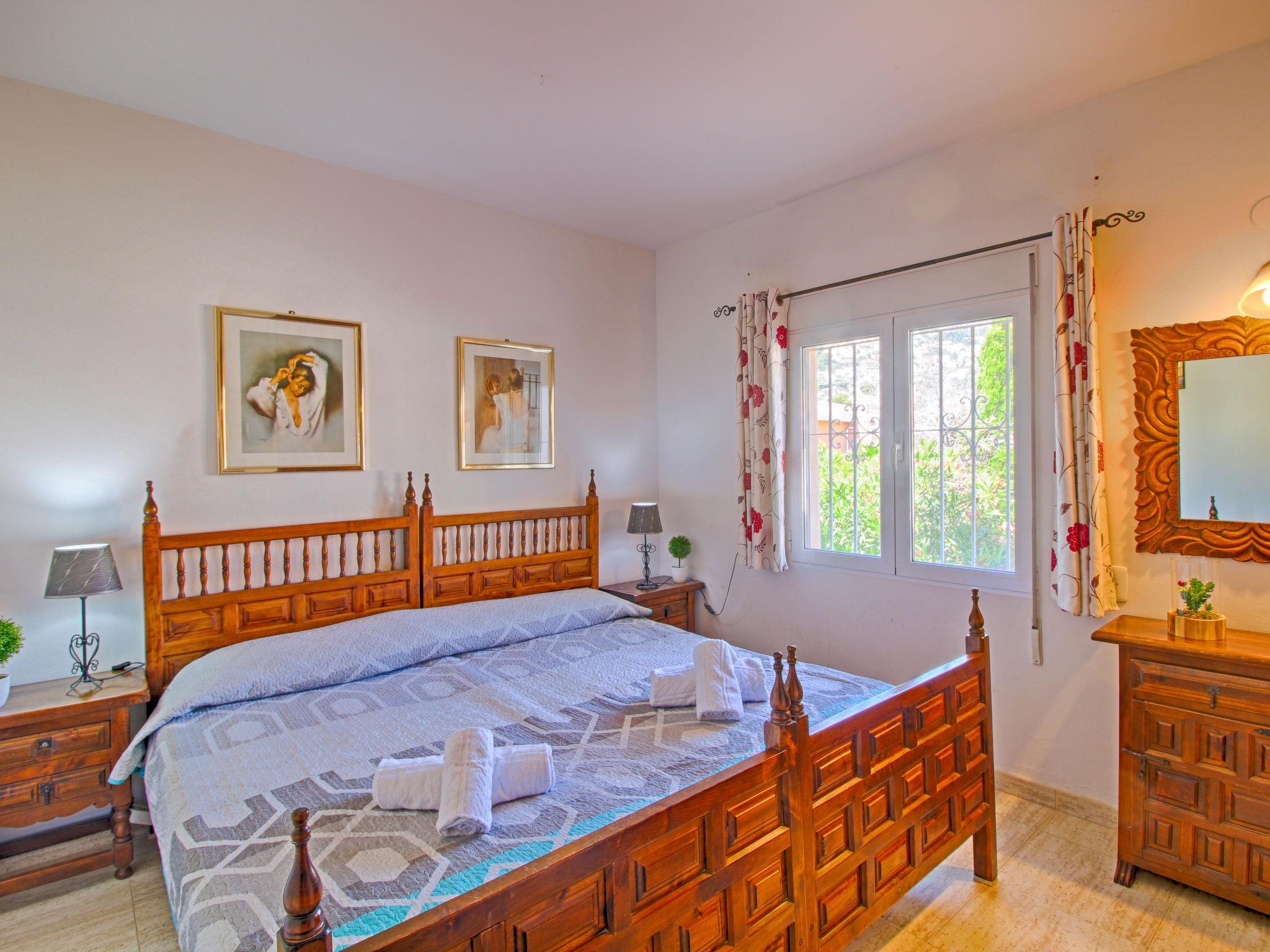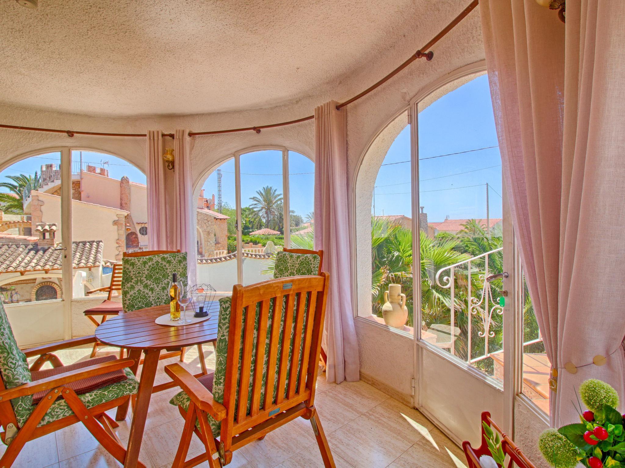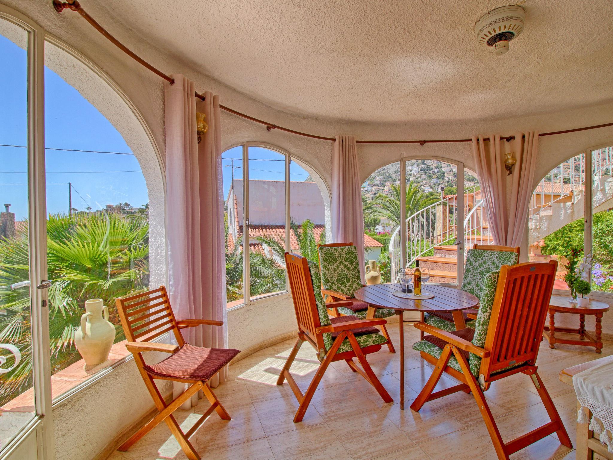 Puerto Blanco: Villa "Estrella". In the district of Canuta Baja 1.5 km from the centre of Calpe, 60 km from the centre of Alicante, 120 km from the centre of Valencia, 300 m from the sea. Private: property 650 m2 (fenced) with wildlife garden and trees, swimming pool kidney shaped (8 x 4 m, seasonal availability: 01.Jun. - 30.Sep.). Garden furniture, barbecue. Stepped path (11 steps) to the house. Parking (for 2 cars) on the premises. Shop 1.3 km, supermarket 1.3 km, restaurant 300 m, bus stop 1.4 km, sandy beach "Playa Puerto Blanco" 300 m. Nearby attractions: Parque atracciones Terra Mítica 35 km, Parque acuático Aqualandia 25 km. Hiking paths: Parque natural Peñon de Ifach 4.5 km. Please note: car recommended. Part of the house is closed and unoccupied. Access to the balcony via external staircase.