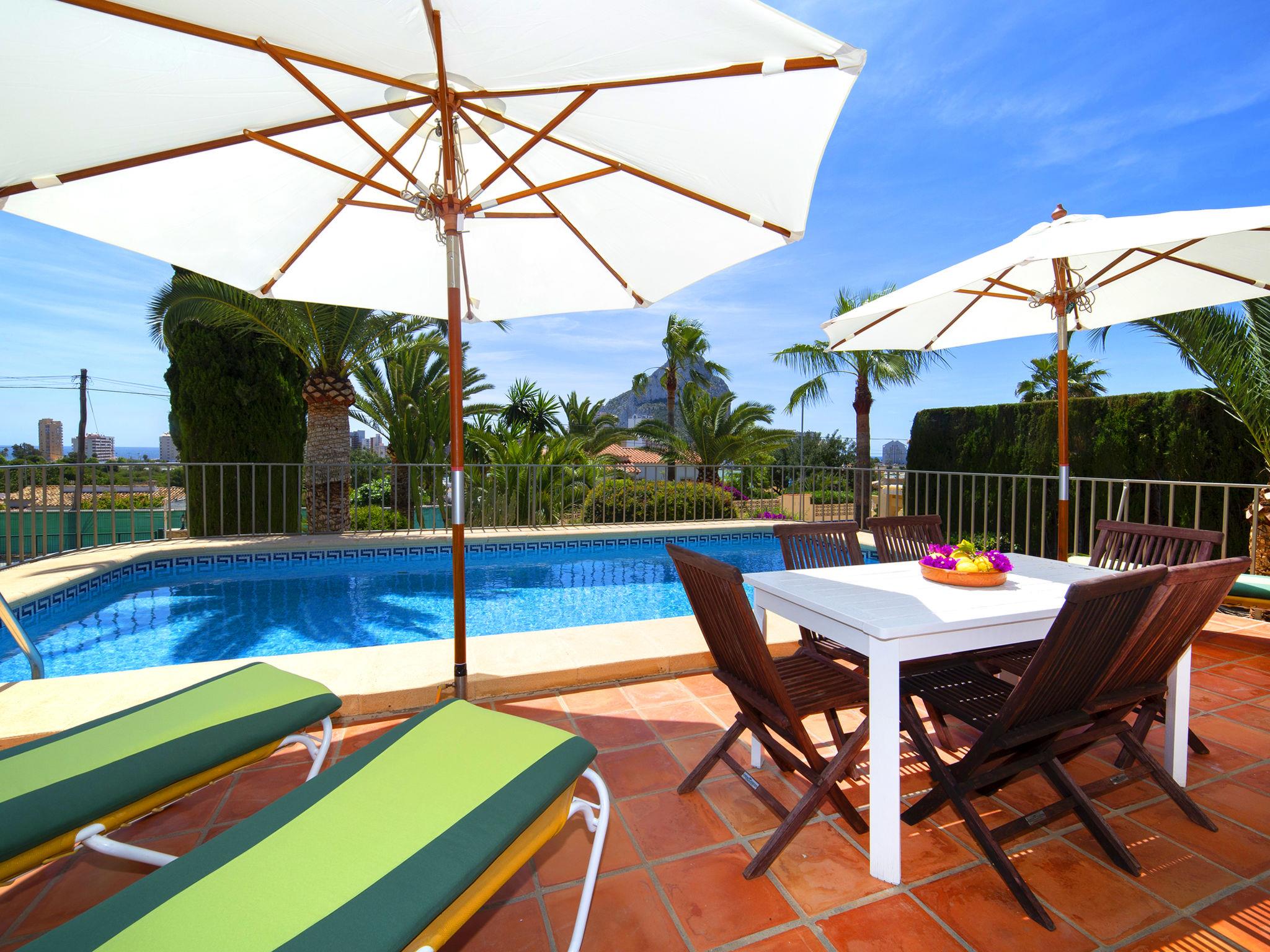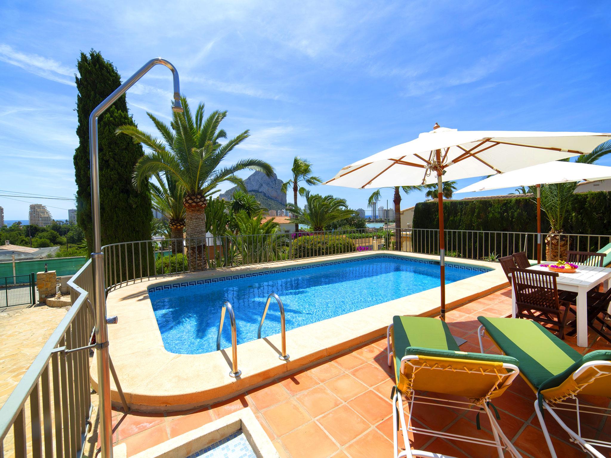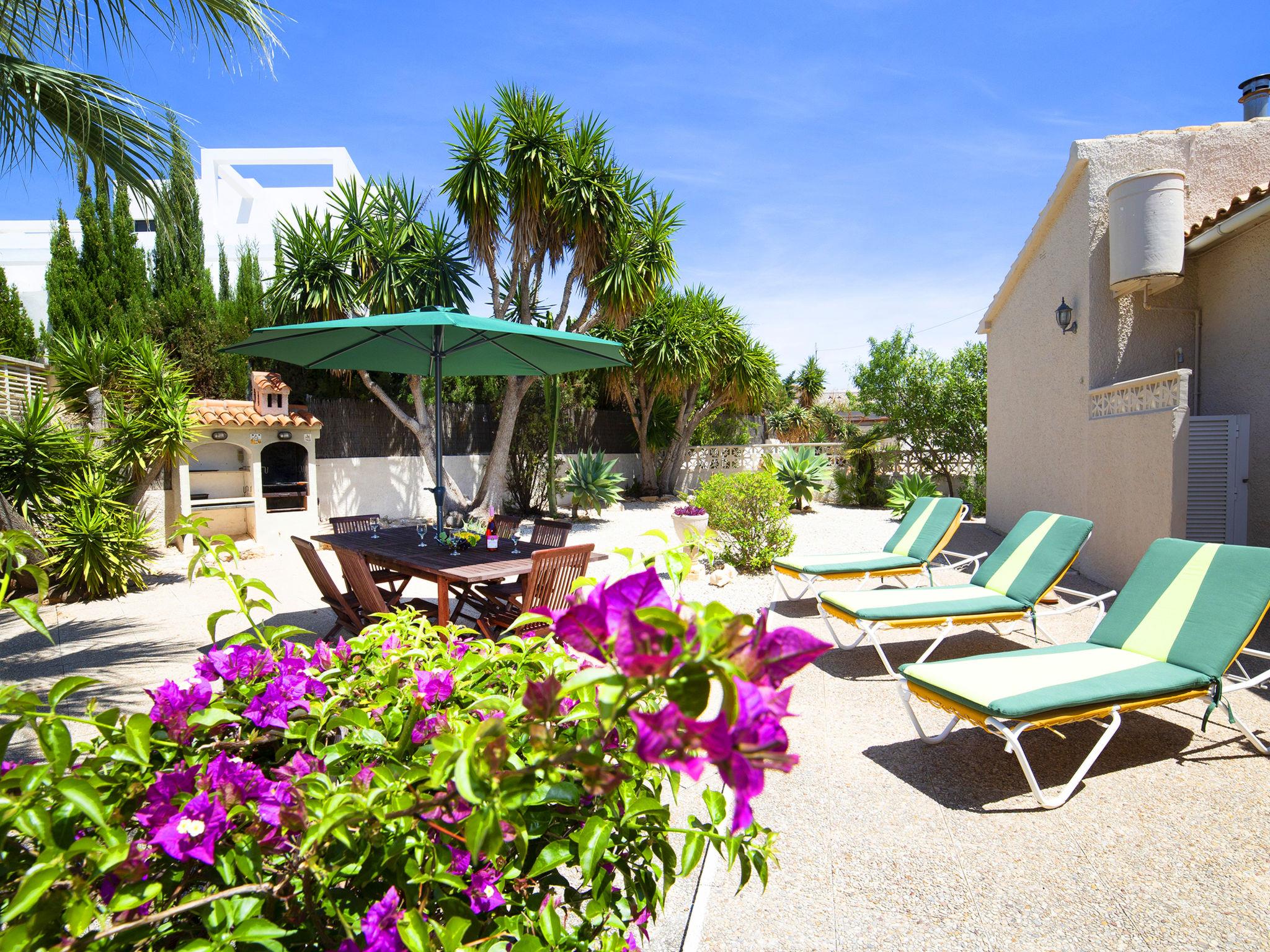 Almendros: Beautiful, cosy house "Alma". In the resort 2 km from the centre of Calpe, in a quiet, sunny position residential area (villas), traffic calmed area, 1 km from the sea, 1 km from the beach. Private: property (fenced), well-kept garden, natural garden, swimming pool (8 x 4 m, seasonal availability: 01.Jan. - 31.Dec.). Outdoor shower, barbecue. In the house: WiFi. Grocery, supermarket 550 m, restaurant, bar 350 m, bus stop 1.1 km, sandy beach "Playa Arenal" 1 km. Sports harbour 2.4 km, marina 2.4 km, golf course (9 hole) 11 km, tennis 2.3 km. Nearby attractions: Aqualandia, Mundomar, Terra Mítica, Terra Natura, Benidorm Palace (Benidorm), Les Fonts de l'Algar, Castillo de Guadalest.