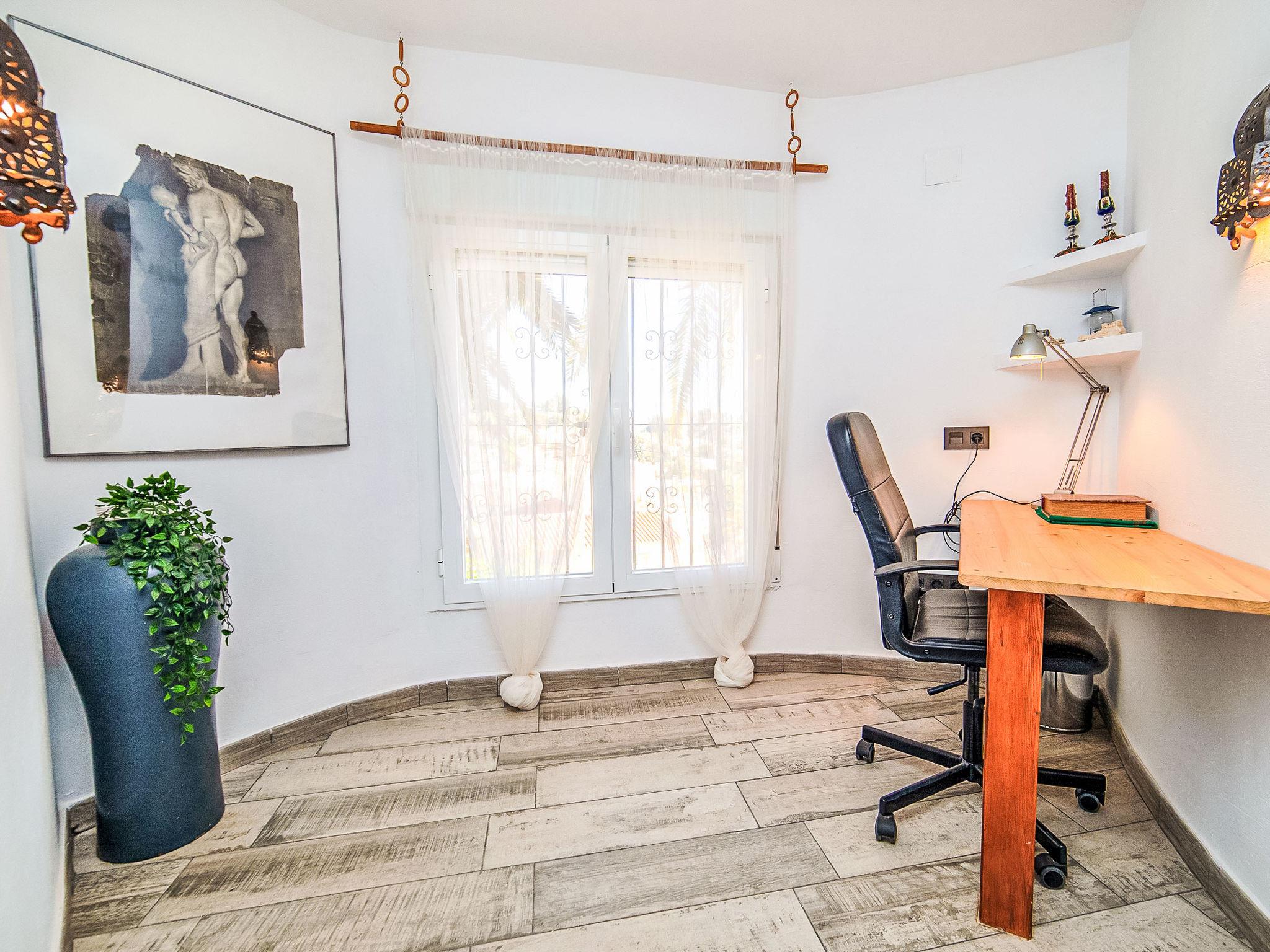 CANUTA 2 km from Calpe Centro: Large, beautiful villa "Moonlight", 2 storeys, built in 2023. 1.8 km from the centre of Calpe, in the district Canuta, in a sunny position residential area (villas), traffic calmed area, 1 km from the sea, 1 km from the beach, in a cul-de-sac. For shared use: property 636 m2 (fenced). Private: property 636 m2 (fenced), garden, swimming pool angular (8 x 4 m, depth 150 - 150 cm, seasonal availability: 01.Jan. - 31.Dec.). Outdoor shower. Shop 2 km, grocery 2 km, supermarket 2 km, restaurant 1 km, bar 1 km, bus stop 1 km, sandy beach "Playa Puerto Blanco" 1.2 km. Sports harbour 4.7 km, marina 4.7 km, golf course (9 hole) 14 km, surf school 4.7 km, sailing school 4.7 km. Nearby attractions: Aqualandia, Mundomar, Terra Mítica, Terra Natura, Les Fonts de l'Algar, Castillo de Guadalest. Please note: baby equipment (included). The owner does not accept any youth groups. 1st floor is closed and not occupied.