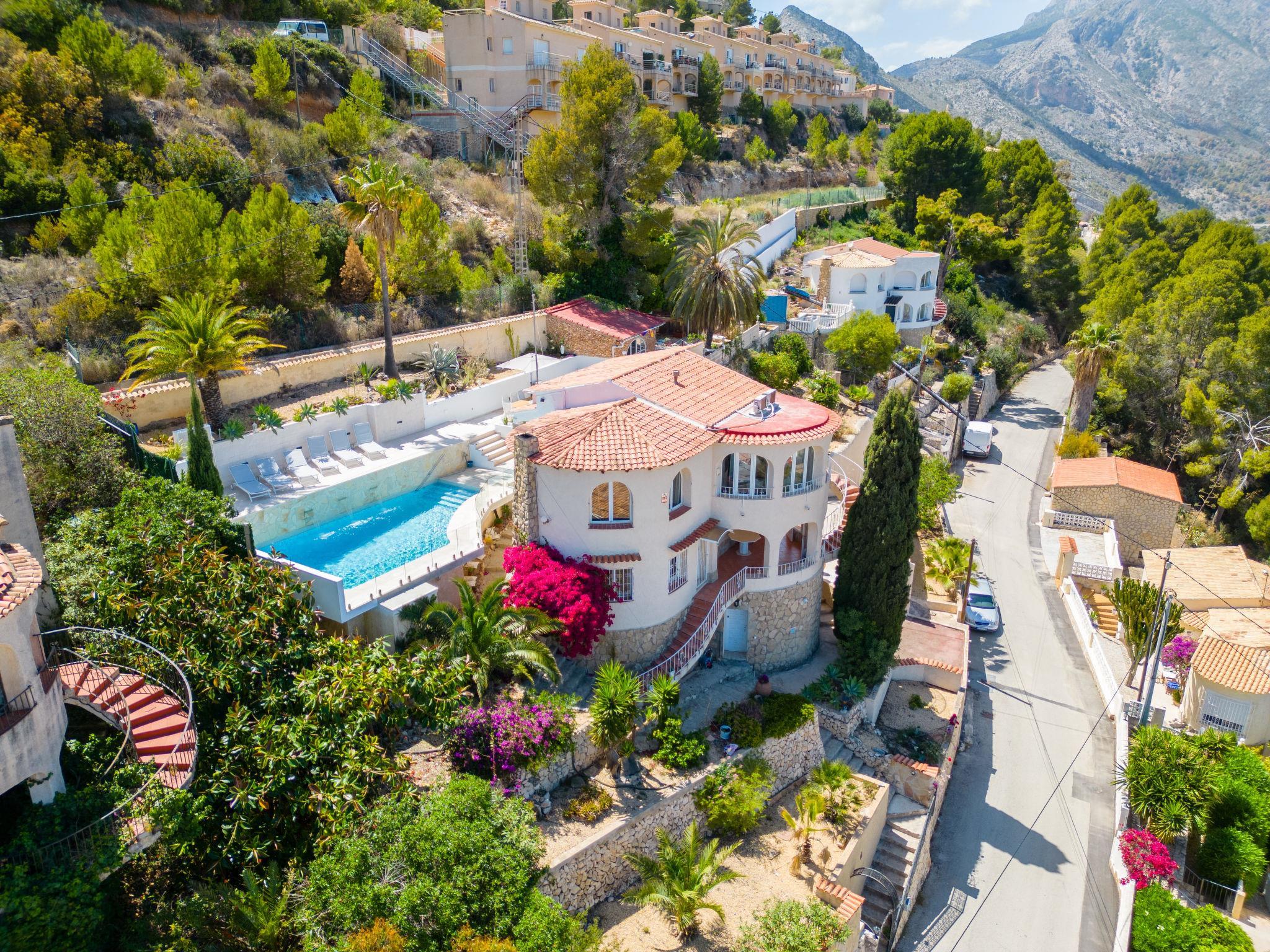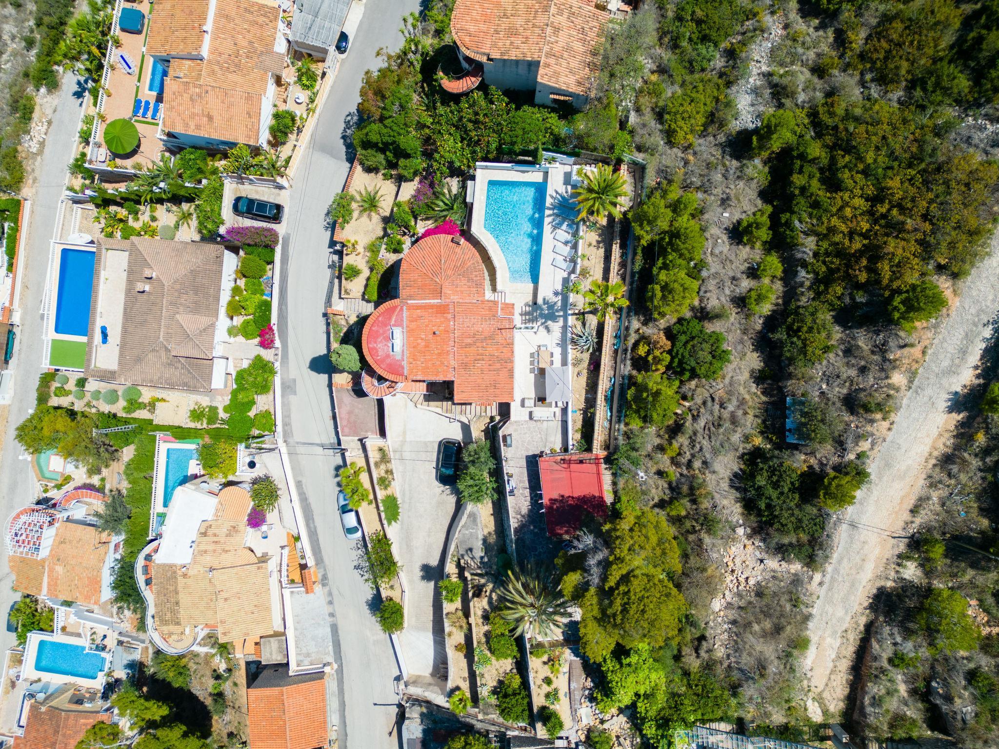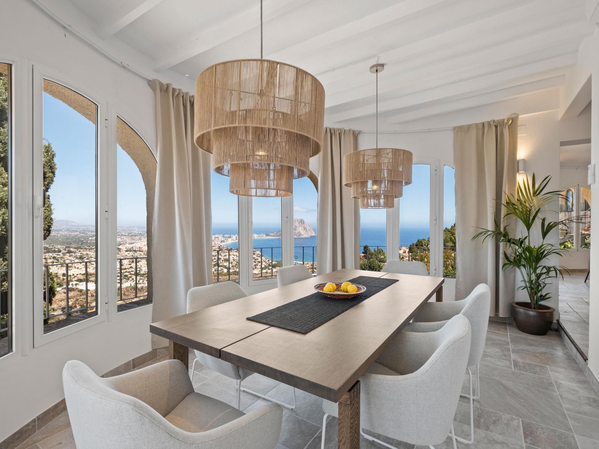 Maryvilla: Beautiful, cosy house "Roxas", 2 storeys. 4 km from the centre of Calpe, in a quiet, sunny, elevated position on a slope, residential area (villas), traffic calmed area, 2 km from the sea, 2 km from the beach. Private: property 1'228 m2 (fenced), garden, swimming pool (8 x 4 m, seasonal availability: 01.Jan. - 31.Dec.). Outdoor shower, terrace, garden furniture, barbecue. Stepped path (52 steps) to the house. Parking (for 2 cars) at the house, single garage. Grocery 4 km, supermarket 4 km, restaurant 1.7 km, bar 1.7 km, bus stop "Parada Bus" 3.7 km, sandy beach "Playa Puerto Blanco" 2 km pebble beach "Cala Les Urques" 2 km. Marina 2.5 km, golf course (9 hole) 14 km. Nearby attractions: Aqualandia, Mundomar, Terra Natura, Terre Mítica, Benidorm Palace (Benidorm). Please note: not suitable for small children. The owner does not accept any youth groups. Part of the house is closed and unoccupied.