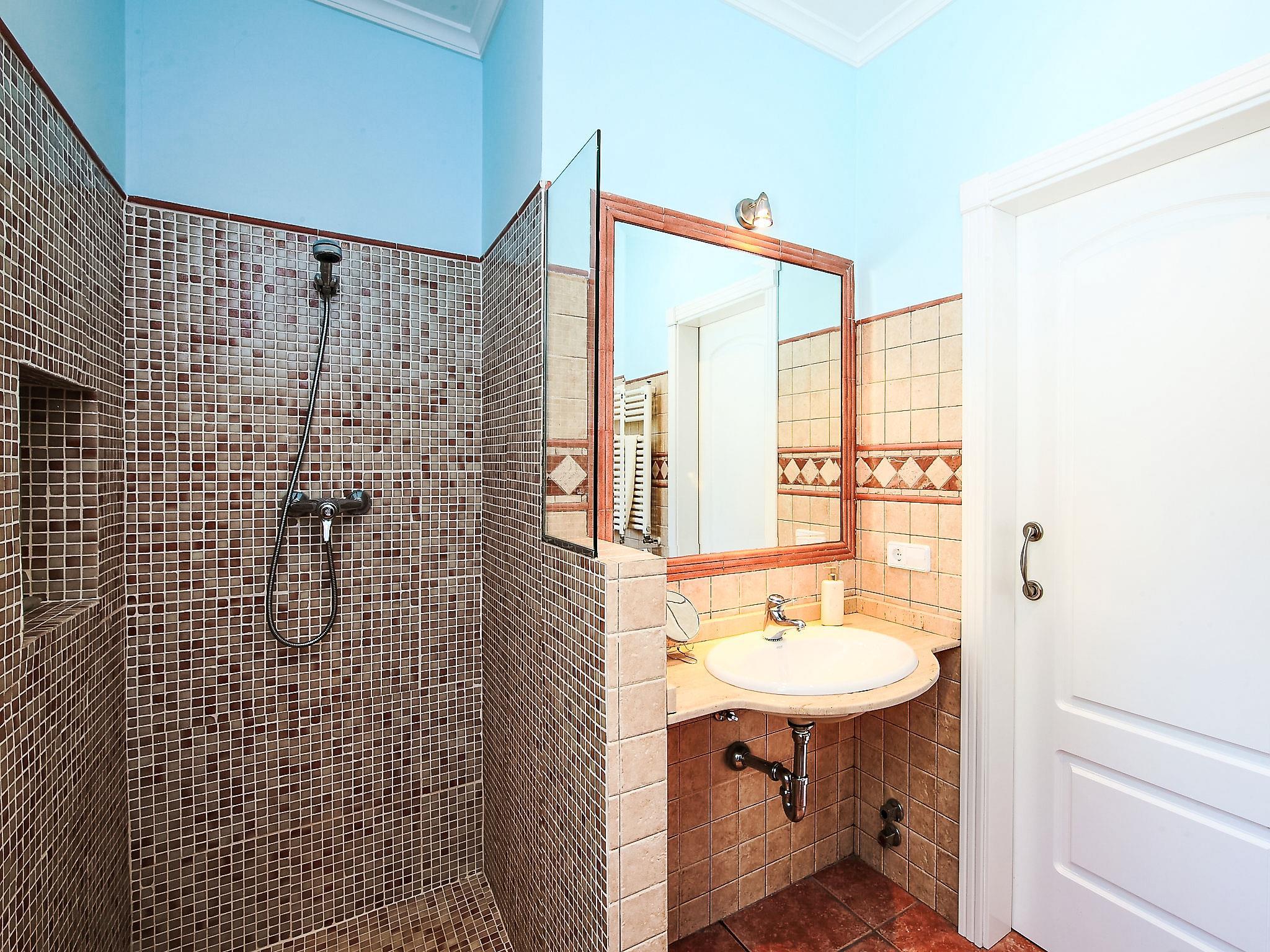 "Azul", 5-room villa 200 m2 on 2 levels. Spacious and bright, comfortable and beautiful furnishings: living/dining room 35 m2 with satellite TV, digital TV, hi-fi system and DVD. Exit to the terrace. 2 rooms 12 m2, each room with 2 beds (90 cm, length 190 cm), fan. 1 room 18 m2 with 1 french bed (150 cm, length 190 cm), shower/bidet/WC and fan. Kitchen (oven, dishwasher, 3 induction hot plates, microwave, freezer, electric coffee machine). Exit pergola. Shower/WC. Upper floor: 1 room 18 m2 with 1 french bed (135 cm, length 190 cm), shower/WC and fan. Exit to the terrace. Patio, porch. Terrace furniture, deck chairs (8), covered balcony. View of the countryside. Facilities: washing machine, iron, children's high chair, baby cot for up to 2 year olds. Internet (WiFi, free). Parking, garage on the property. Please note: suitable for families. Non-smoking house. AT-427692-A // Reg. Nr.: ESFCTU00000302900056121900000000000000000AT-427692-A4
