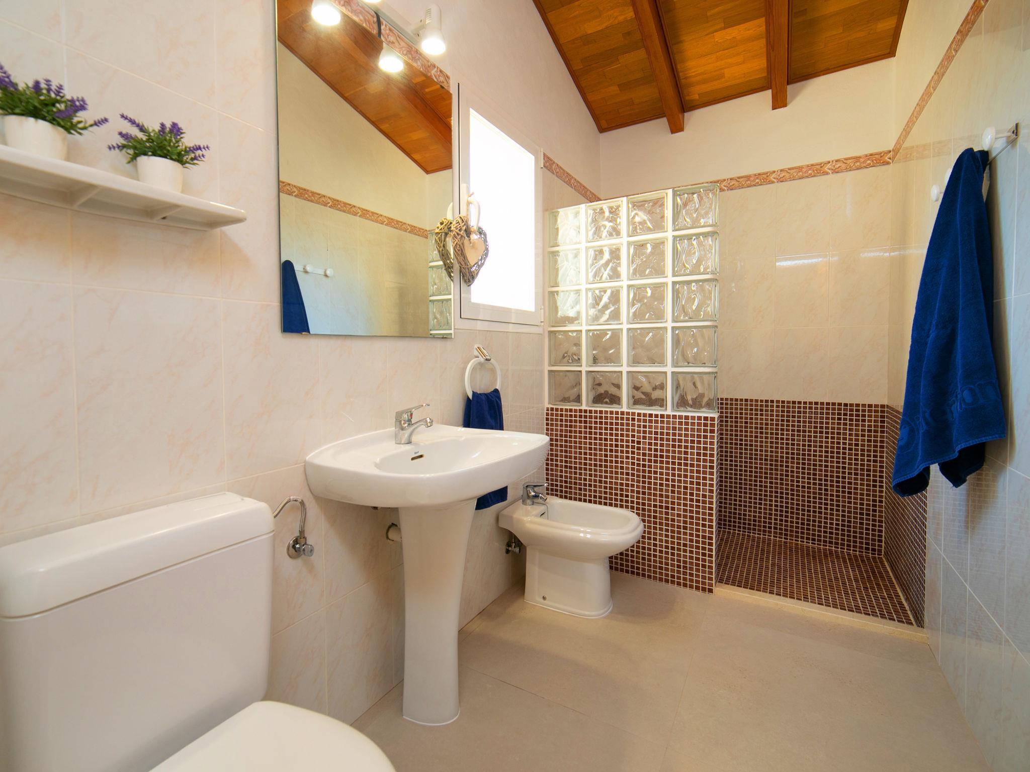 Buenavista 3 km from Calpe: Large, simple, comfortable villa "Campos", 2 storeys. 3 km from the centre of Calpe, in the district Buenavista, in a quiet, sunny position residential area (villas), 950 m from the sea, from the beach, in the countryside. Private: property 1'000 m2 (fenced), beautiful garden to relax, swimming pool secured, fenced (5 x 9 m, seasonal availability: 01.Jan. - 31.Dec.) with internal staircase. Outdoor shower, pool house, terrace, garden furniture, barbecue, barbecue house. In the house: washing machine. Parking on the premises. Shop 900 m, grocery, supermarket 900 m, restaurant, bar 300 m, bakery 300 m, café 300 m, pedestrian zone 100 m, pub garden 350 m, bus stop "Bus Local" 400 m, sandy beach "Playa de la fossa" 950 m. Sports harbour 2.4 km, marina 2.4 km, golf course (9 hole) 10.4 km, surf school 2.4 km, sailing school 2.4 km, cycle lane 30 m. Nearby attractions: Aqualandia - Mundomar 28 km, Terra Mítica - Terra Natura 29 km, Benidorm Palace 25 km. Hiking paths: Peñon de Ifach 3.1 km. Please note: suitable for families, suitable for seniors. The owner does not accept any youth groups.