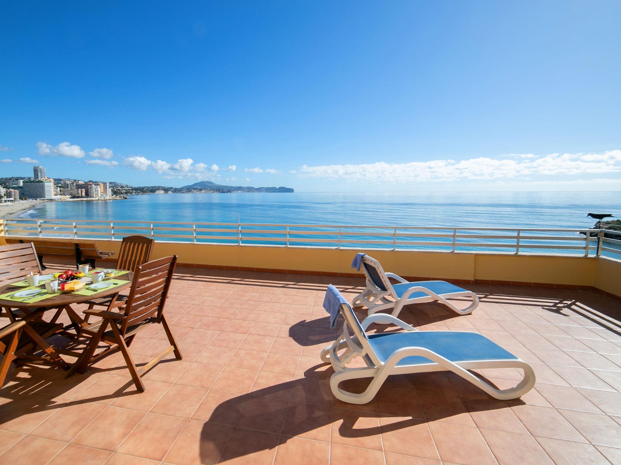 "Voramar", 4-room apartment 108 m2 on 6th floor. Comfortable and beautiful furnishings: living/dining room 20 m2 with satellite TV, digital TV, air conditioning and forced-air heating. Exit to the terrace. 1 room with 1 french bed (150 cm, length 190 cm), shower/WC, air conditioning and forced-air heating. Exit to the terrace. 2 rooms, each room with 2 beds (90 cm, length 190 cm), air conditioning and forced-air heating. Small kitchen (oven, 4 ceramic glass hob hotplates, kettle, microwave, freezer, electric coffee machine). Shower/WC. Large terrace 84 m2. Terrace furniture, deck chairs. Panoramic view of the sea and the countryside. Facilities: washing machine, iron, hair dryer. Internet (WiFi, free). Parking space n 11. Edif. Zafiro (1 car). AT-503918-A // Reg. Nr.: ESFCTU00000302900034205400000000000000000AT-503918-A8