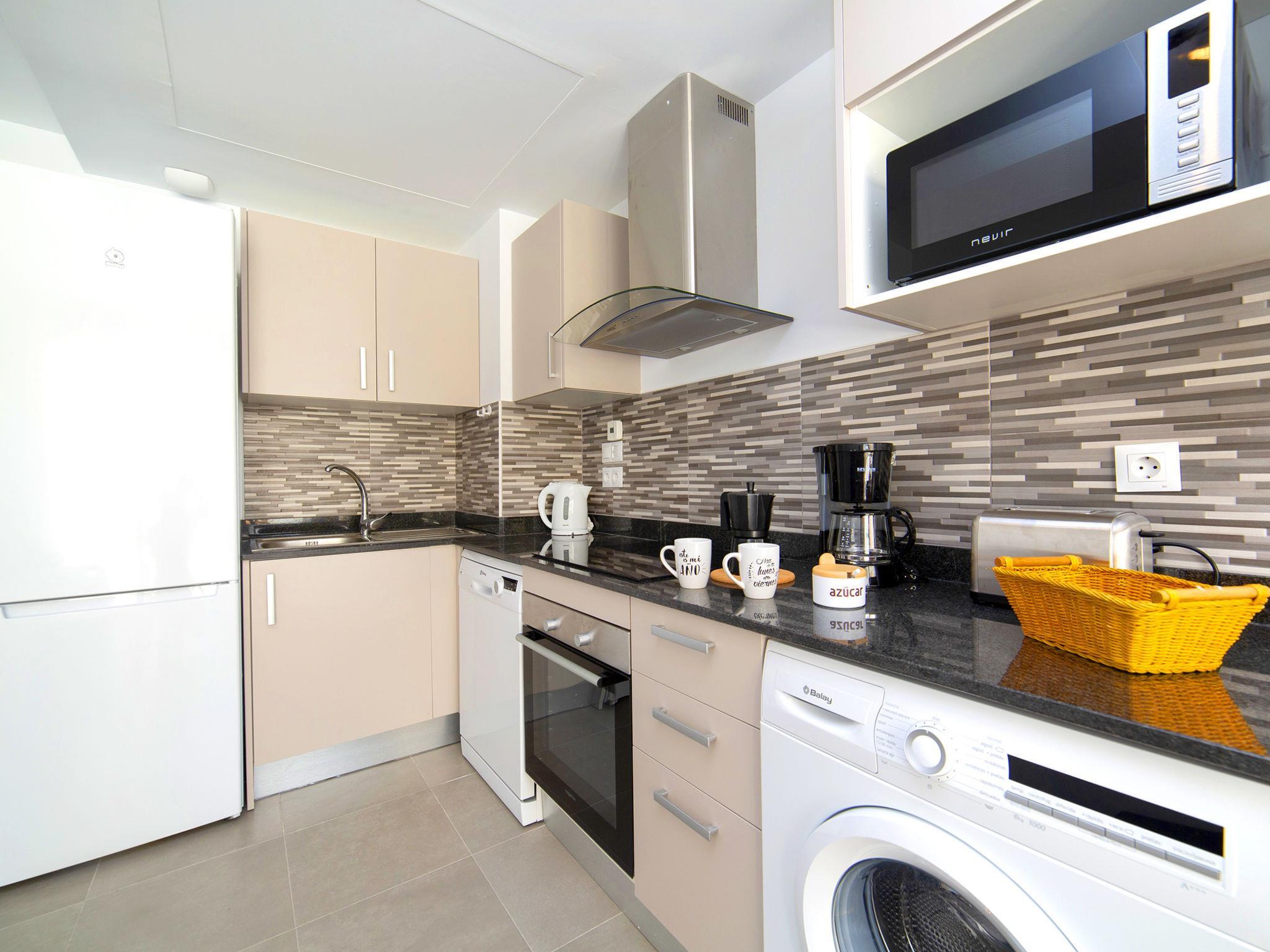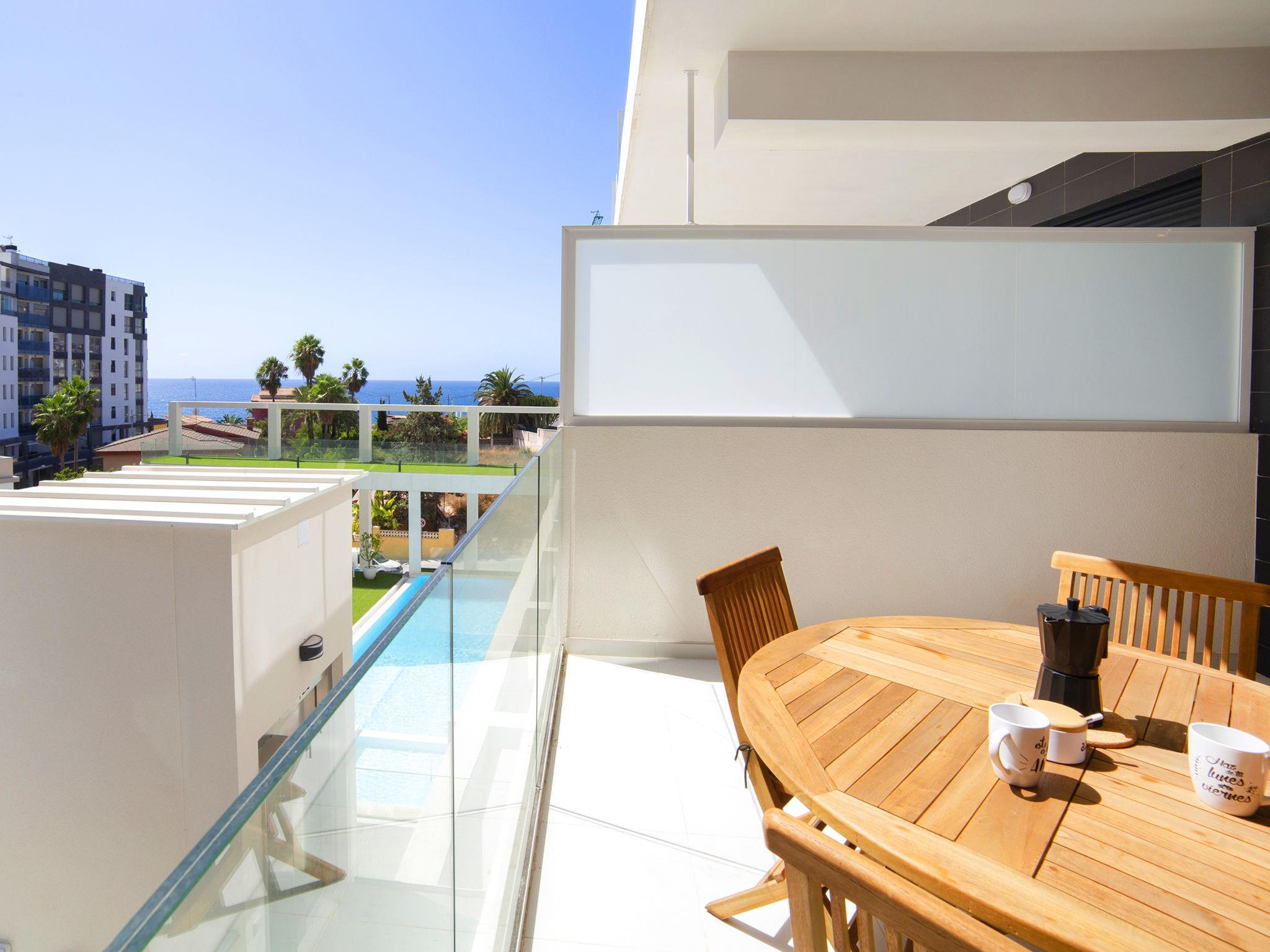 Calpe Centro: Modern, beautiful apartment block "Calpe Beach I", 10 storeys, built in 2019. 62 apartments in the residence. In the centre of Calpe, in a central position, excellent location: right in the centre but still quiet, 100 m from the sea, 100 m from the beach. For shared use: swimming pool (seasonal availability: 16.Apr. - 15.Oct. pool opening hours: 10:00-21:00). WC in the pool area, outdoor shower. In the house: solarium, lift, roof terrace. Grocery, supermarket 100 m, restaurant, bar, café 30 m, bus stop "Parada Bus" 100 m, sandy beach "Playa Arenal" 100 m. Sports harbour 2.4 km, marina 2.4 km, golf course (9 hole) 10 km, sailing school 2.4 km. Nearby attractions: Aqualandia, Terra Mítica, Mundomar, Terra Natura, Benidorm Palace (Benidorm).