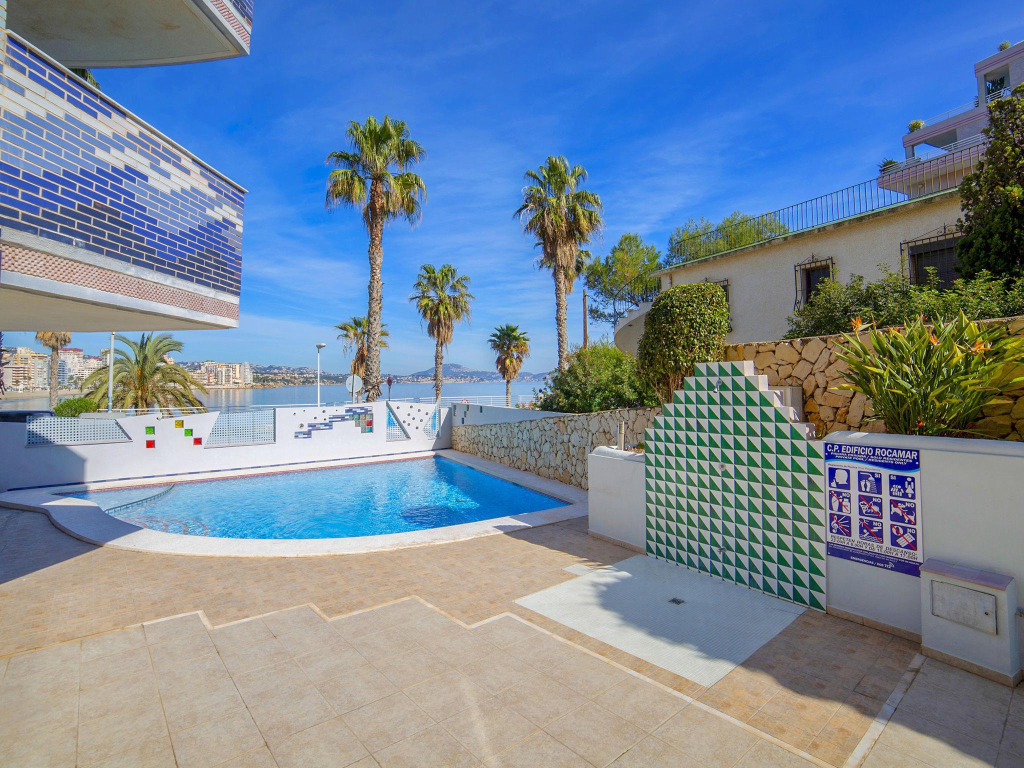 Playa de La Fossa: Beautiful apartment block "Rocamar", 8 storeys. In the resort 2.6 km from the centre of Calpe, in a sunny position, at the seaside, on the beach. For shared use: property (fenced), garden, swimming pool (8 x 6 m, seasonal availability: 01.Jan. - 31.Dec.) with internal staircase. Children's pool, outdoor shower. In the house: lift. Supermarket 200 m, restaurant, bar, café 10 m, bus stop "Estacion Bus Calpe" 3.3 km, sandy beach "Playa de la Fossa" 10 m. Marina, golf course (9 hole) 10.7 km, sailing school 400 m. Nearby attractions: Aqualandia, Mundomar, Terra Mítica, Terra Natura, Benidorm Palace (Benidorm), Les Fonts de l'Algar, Castillo de Guadalest.