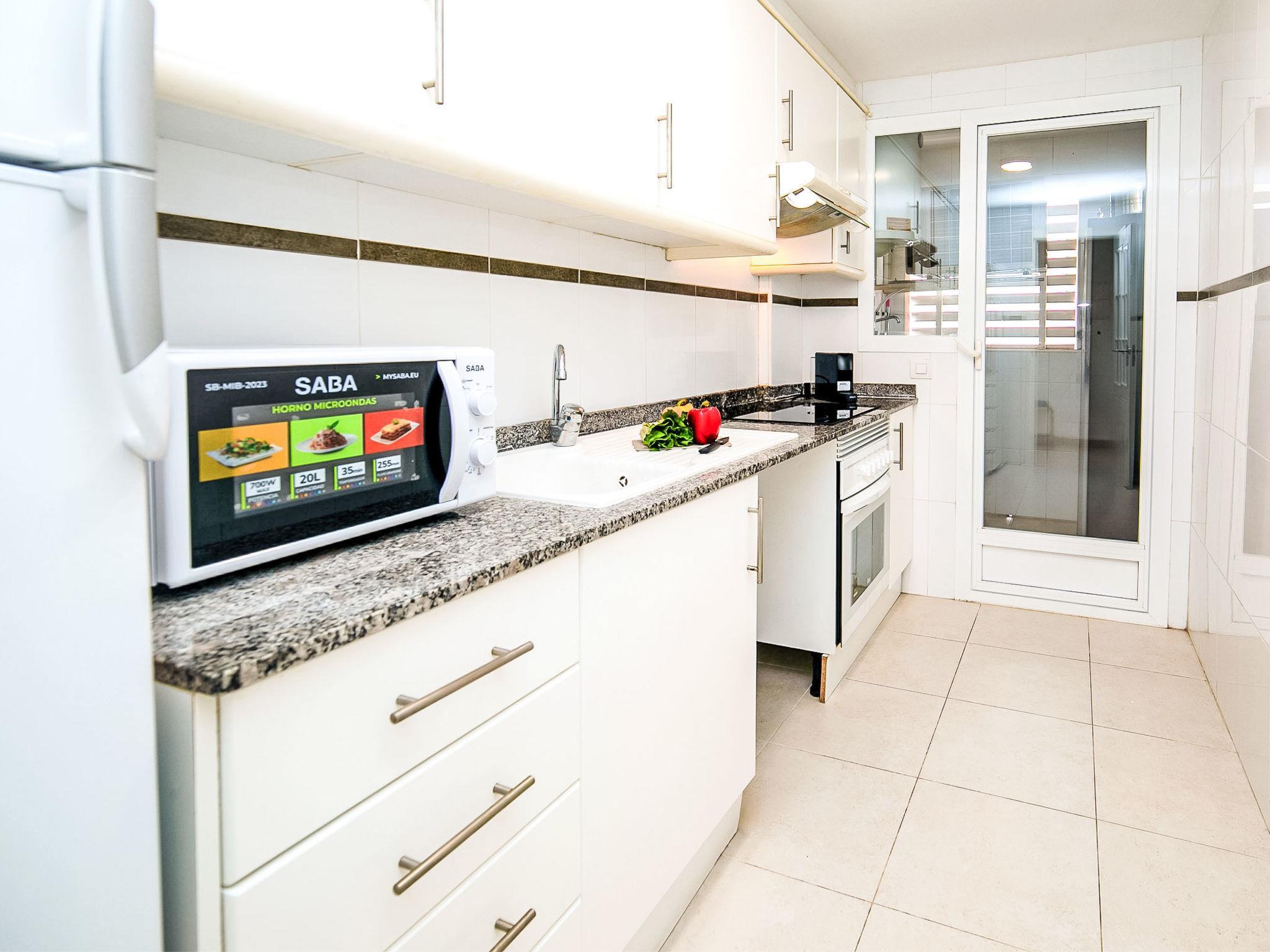 "Apolo XIX", 2-room apartment 69 m2 on 4th floor. Bright, comfortable and beautiful furnishings: living room with 1 sofabed (140 cm, length 180 cm), digital TV, air conditioning and forced-air heating. Exit to the terrace. 1 room with 1 french bed (1 x 150 cm, length 190 cm), air conditioning and forced-air heating. Exit to the terrace. Kitchen (oven, 3 ceramic glass hob hotplates, toaster, kettle, microwave, electric coffee machine). Bath/WC. Forced-air heating. Terrace. Terrace furniture. Beautiful view of the resort. Facilities: washing machine, iron, children's high chair, baby cot for up to 2 year olds, hair dryer. Internet (WiFi, free). Please note: non-smoking house. VT-514339-A // Reg. Nr.: ESFCTU00000302900060376600000000000000000VT-514339-A4