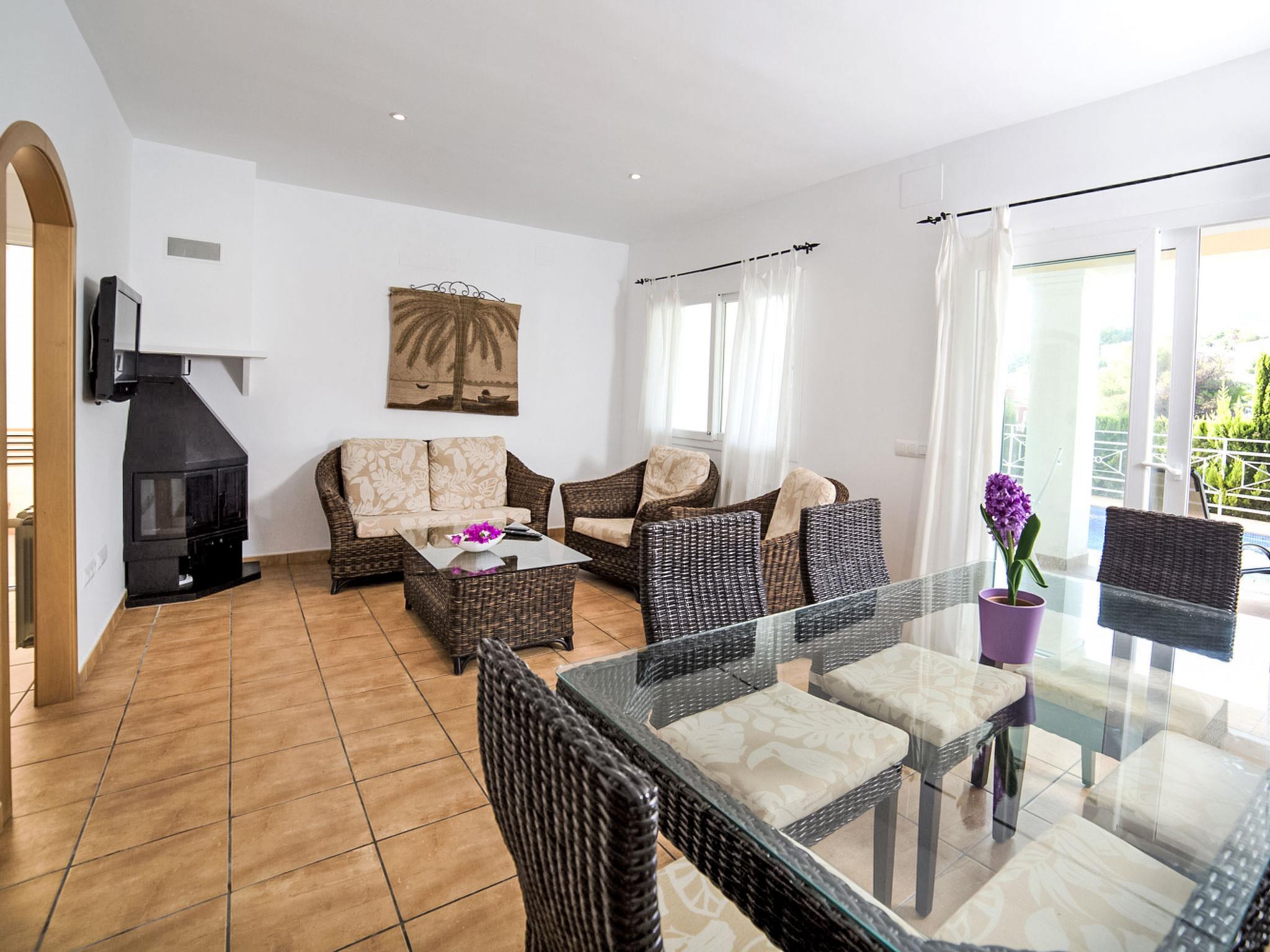 "Junio", 4-room terraced house 75 m2 on 2 levels. Bright, comfortable and beautiful furnishings: living/dining room with open-hearth fireplace, satellite TV and digital TV. Exit to the terrace, to the swimming pool. Open kitchen (oven, dishwasher, 4 ceramic glass hob hotplates, toaster, kettle, microwave, freezer, electric coffee machine, Capsules for coffee machine (Tassimo)). Sep. WC. Heating. Heating available only from 01.11. to 30.04. Upper floor: 1 room with 1 french bed (140 cm, length 200 cm), fan. 1 room with 2 beds (90 cm, length 200 cm), fan. 1 room with 2 beds (90 cm, length 200 cm), fan. Bath/bidet/WC, shower/WC. Terrace furniture, deck chairs. Of the countryside. Facilities: washing machine, iron, children's high chair, baby cot for up to 2 year olds, hair dryer. Internet (WiFi, free). Parking (1 car) at the house. Please note: parking space for small car only. TV only ES, FR. AT-451014-A