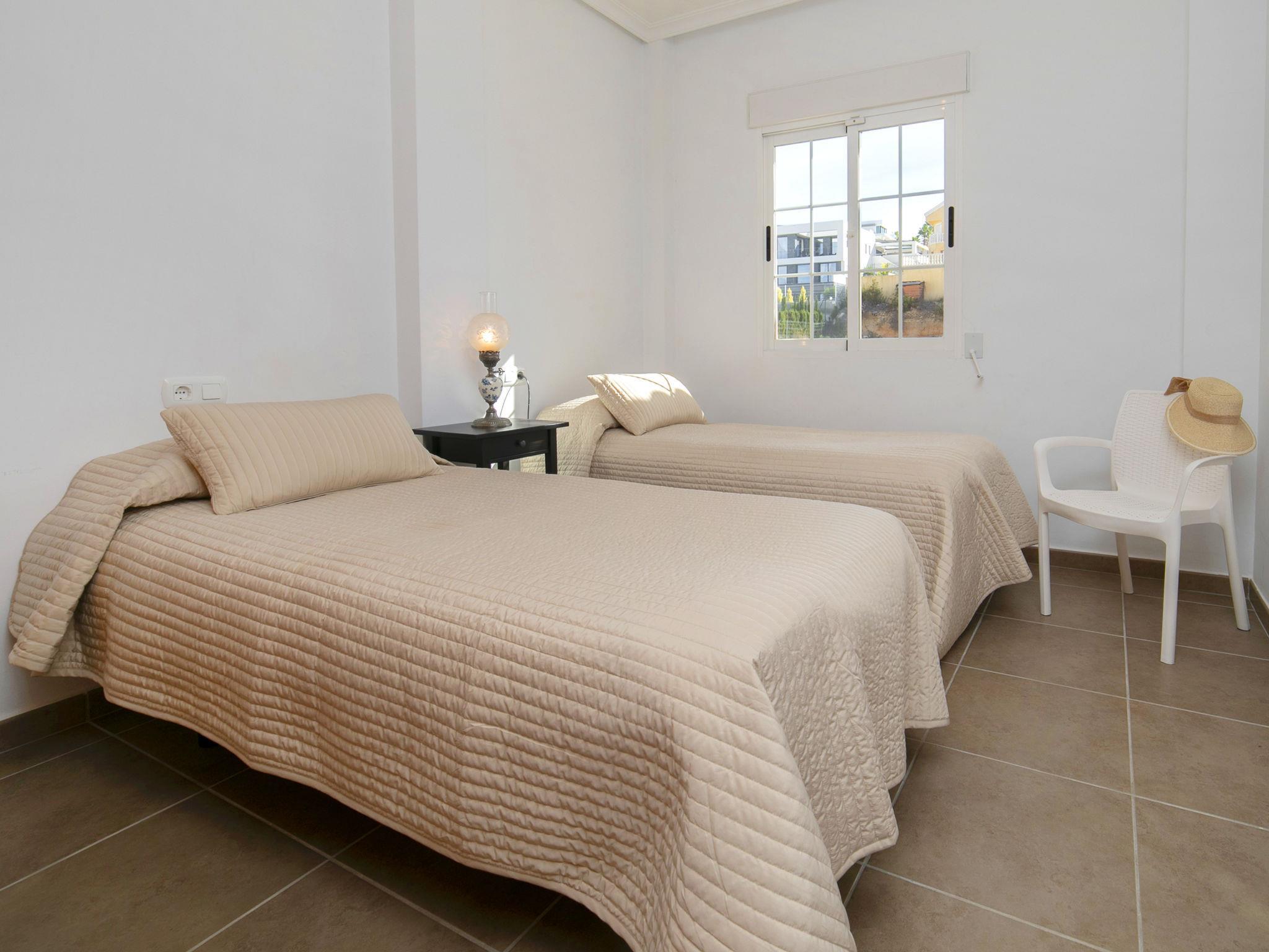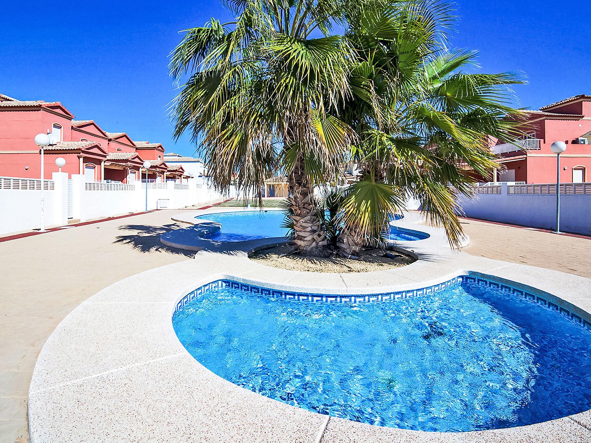 "Jazmines V", 5-room terraced house 224 m2. Spacious and bright, comfortable and beautiful furnishings: open living/dining room with digital TV, air conditioning and forced-air heating. Exit to the terrace. 1 room with 1 double bed (2 x 80 cm, length 200 cm), shower/bidet/WC, air conditioning and forced-air heating. 1 room with 2 beds (90 cm, length 200 cm), air conditioning and forced-air heating. Kitchen (oven, dishwasher, 4 gas rings, toaster, kettle, microwave, electric coffee machine). Shower/WC. Upper floor: 1 room with 1 double bed (2 x 80 cm, length 200 cm), air conditioning and forced-air heating. 1 room with 1 double bed (2 x 80 cm, length 200 cm), air conditioning and forced-air heating. Bath/bidet/WC. Large terrace. Barbecue, sitting area. View of the swimming pool, the resort and the town. Facilities: washing machine, iron, children's high chair, baby cot for up to 2 year olds, hair dryer, baby changing unit. Internet (WiFi, free). Please note: suitable for families. Non-smoking house. VT-513428-A // Reg. Nr.: ESFCTU00000302900059738600000000000000000VT-513428-A6