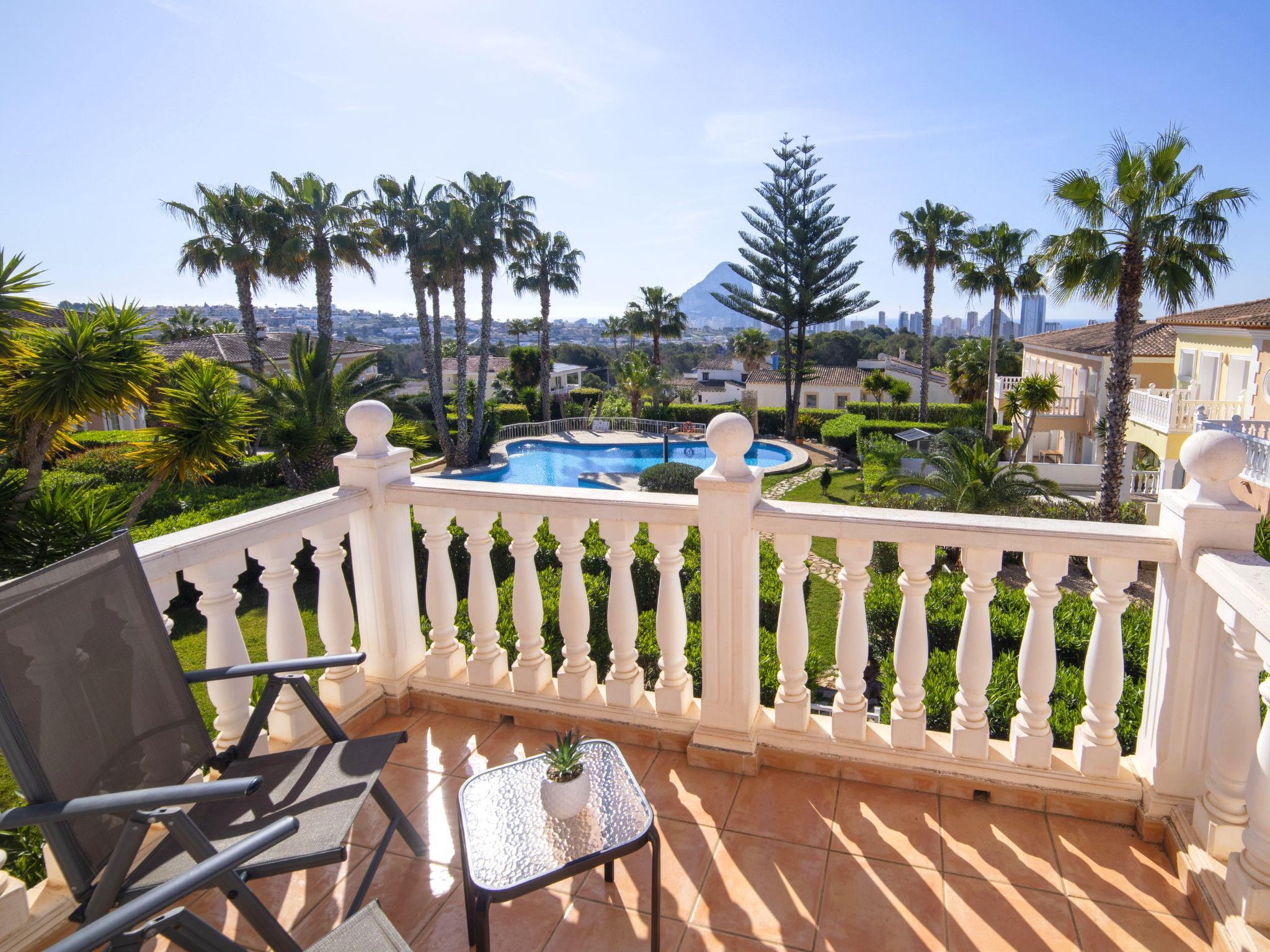 Very beautiful bungalow "Bel-Air", 2 storeys, semi-detached. 15 houses in the resort. In the resort 2 km from the centre of Calpe, in the district Garduix, in a quiet, sunny position residential area (villas), traffic calmed area, 2 km from the sea, 2 km from the beach. For shared use: property (fenced) with lawn and plants, lawn for sunbathing, beautiful garden to relax, swimming pool (15 x 14 m, depth 50 - 200 cm, seasonal availability: 01.Jan. - 31.Dec.). Outdoor shower. Private: property (fenced). Terrace, barbecue. Supermarket 1.5 km, restaurant 1 km, café 1 km, bus stop 1.5 km, sandy beach "Playa Arenal" 2 km. Sports harbour 3.8 km, marina 3.8 km, golf course (9 hole) 12 km, surf school 3.8 km, sailing school 3.8 km, tennis 1.1 km. Nearby attractions: Aqualandia, Mundomar, Terra Mítica, Terra Natura, Benidorm Palace (Benidorm), Les Fonts de l'Algar, Castillo de Guadalest. Residence with electric gates.