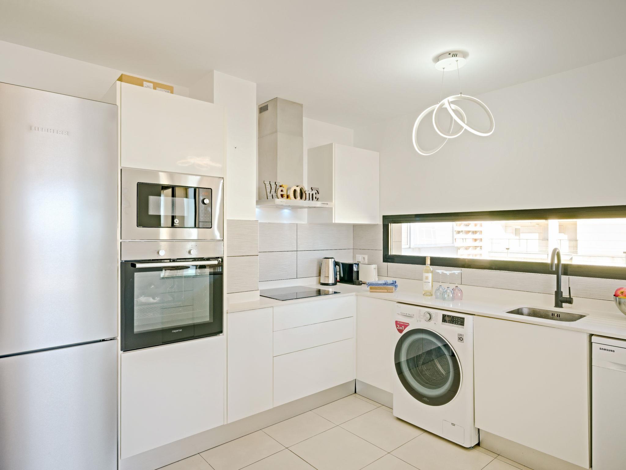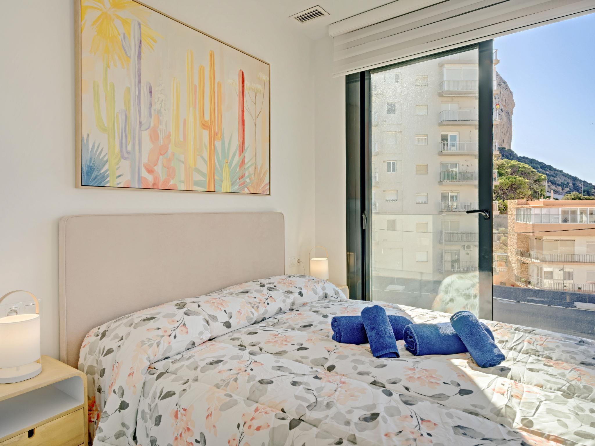 "Calpe Beach II", 3-room apartment 149 m2 on 6th floor. Spacious and bright, beautiful and modern furnishings: open large living/dining room with panoramic window with digital TV, air conditioning and forced-air heating. Exit to the terrace. 1 room with 1 french bed (1 x 150 cm, length 200 cm), shower/WC, air conditioning and forced-air heating. Exit to the terrace. 1 room with 1 french bed (1 x 150 cm, length 200 cm), air conditioning and forced-air heating. Exit to the terrace. Large, open kitchen (oven, dishwasher, 4 ceramic glass hob hotplates, toaster, kettle, microwave, electric coffee machine). Shower/WC. Large terrace. Terrace furniture, sitting area. Beautiful view of the sea and the resort. Facilities: washing machine, iron, children's high chair, baby cot for up to 2 year olds, hair dryer. Internet (WiFi, free). Garage space n 14. Please note: suitable for families. Non-smoking house. AT-503403-A // Reg. Nr.: ESFCTU00000302900076098800000000000000000AT-503403-A9