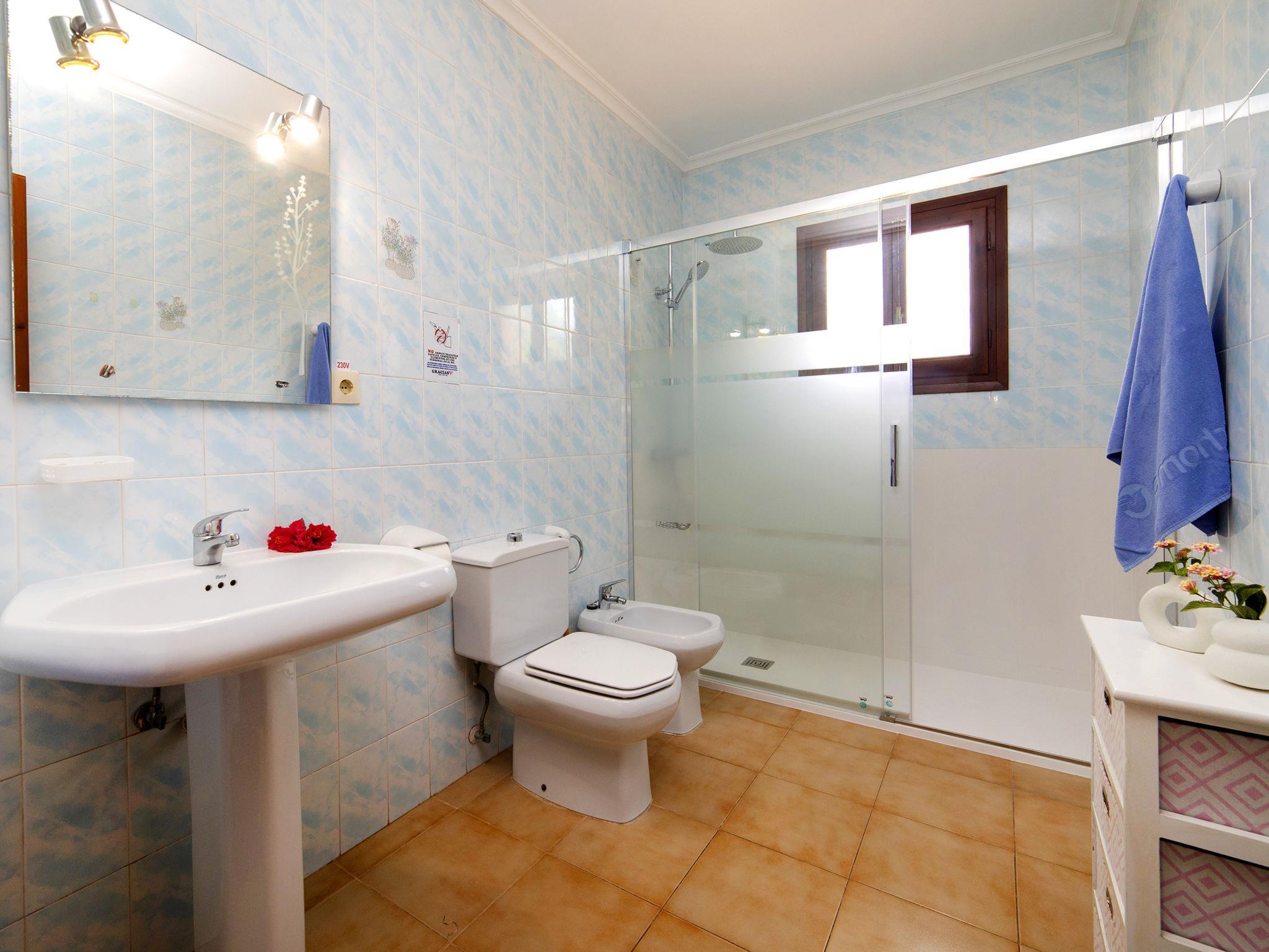 "Roque", 4-room house 120 m2. Practical furnishings: living/sleeping room with open-hearth fireplace (only for decoration), dining table, satellite TV and digital TV. Exit to the terrace. 1 room with 1 french bed (150 cm), air conditioning and forced-air heating. 2 rooms, each room with 2 beds (90 cm, length 190 cm), air conditioning and forced-air heating. Kitchen (oven, dishwasher, 4 gas rings, toaster, kettle, microwave, freezer, electric coffee machine). Exit to the patio. Shower/WC, shower/bidet/WC. Terrace partly roofed. Terrace furniture, barbecue (portable), deck chairs (4), covered balcony. View of the swimming pool and the garden. Facilities: washing machine, iron. Internet (WiFi, free). Parking (fenced 3 cars). Suitable for families. AT-438336-A // Reg. Nr.: ESFCTU00000302900036116100000000000000000AT-438336-A7