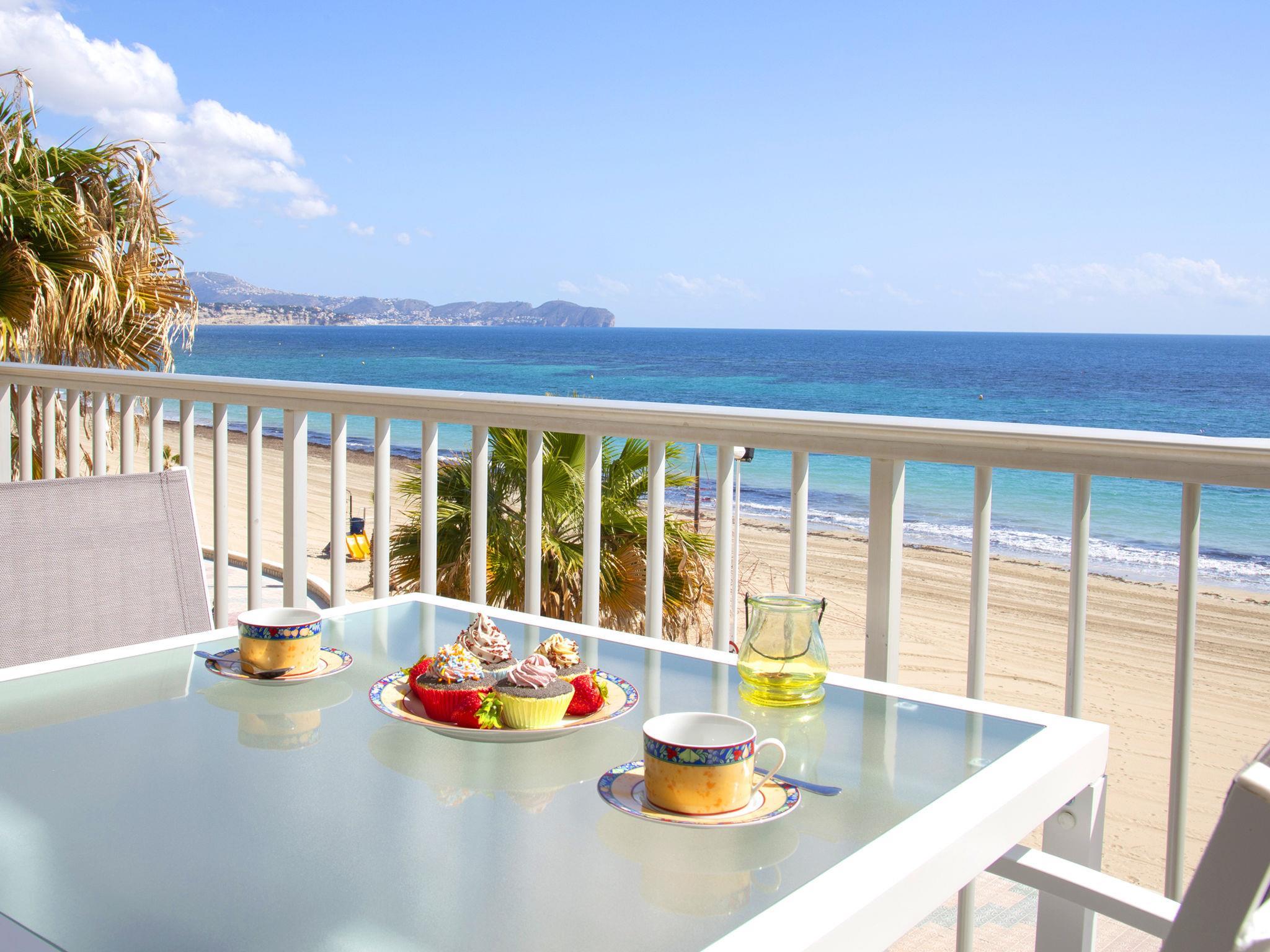 Playa Levante: Directly on the sandy beach and Calpe promenade apartment block "Primum". 2 km from the centre of Calpe, 20 m from the sea, 20 m from the beach. In the house: lift. Public parking on the road extra. Short-stay parking zone (fee), time: 09:00 - 20:00, Monday - Saturday. Grocery, supermarket 10 m, restaurant, bar, bakery, internet café, pedestrian zone, pub garden 20 m, bus stop 150 m, sandy beach "Playa de la Fossa" 20 m. Sports harbour 1 km, marina 1 km, surf school 1 km, sailing school 1 km, tennis 100 m. Nearby attractions: Aqualandia 20 km, Terra Mitica 25 km. Hiking paths: Peñon de Ifach 1.2 km. Please note: suitable for families, suitable for seniors.