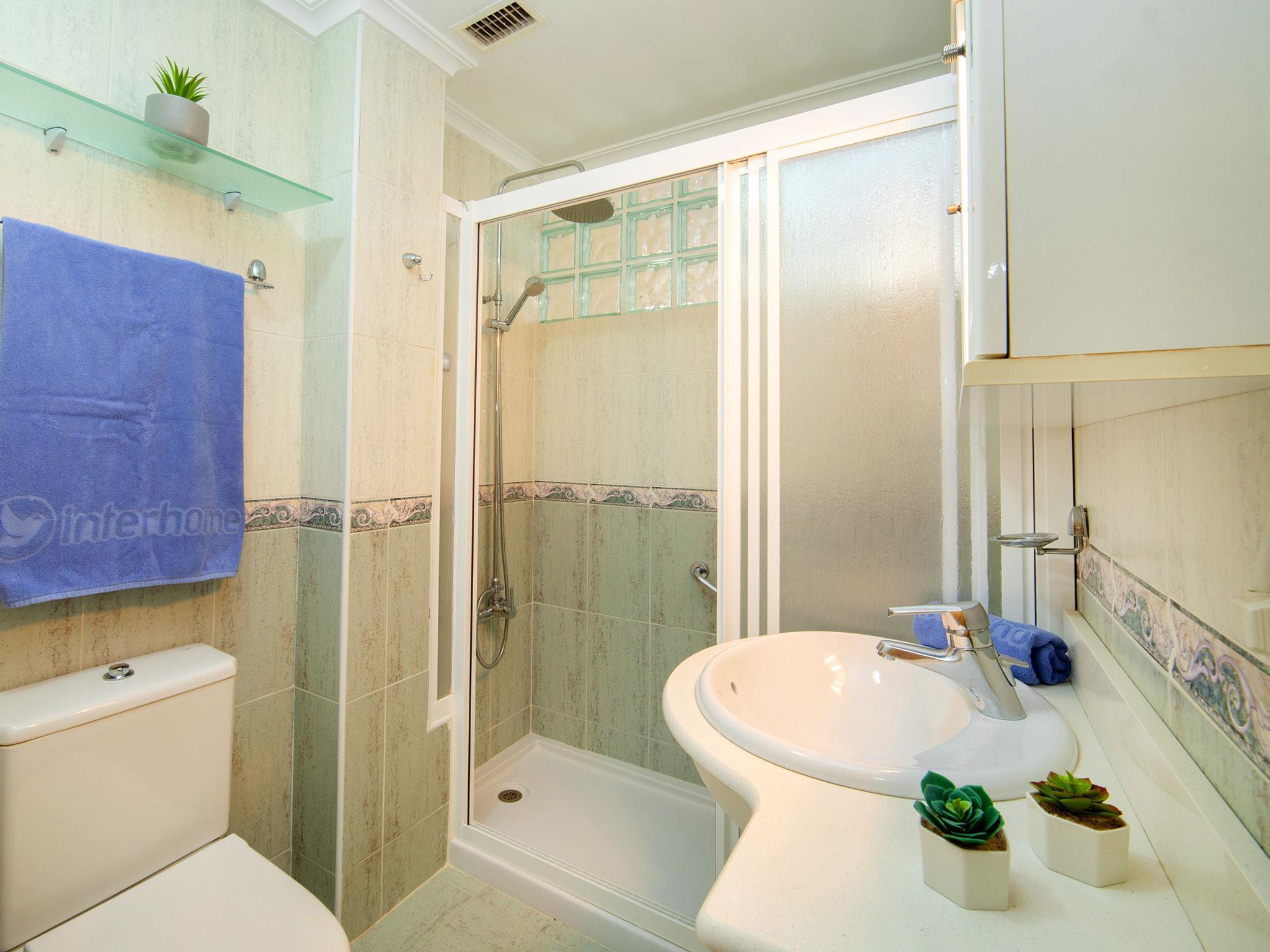 Casanova: Beautiful resort "Pueblo Casanova". 1.7 km from the centre of Calpe, in a quiet, sunny position, 1.9 km from the sea. For shared use: property (fenced), garden, swimming pool (15 x 12 m, seasonal availability: 01.Jan. - 31.Dec.) with salt-electrolysis pool-cleaning system. Unconventional pool shape. Children's pool, terrace. Heating available only from 01.Nov. - 30.Apr.. Supermarket 1.2 km, restaurant 1.4 km, bus stop 450 m, sandy beach 1.9 km, indoor swimming pool 1.5 km. Tennis 1.4 km. Please note: Additional accommodations can be booked. Sun loungers and shower/WC near the swimming pool.
