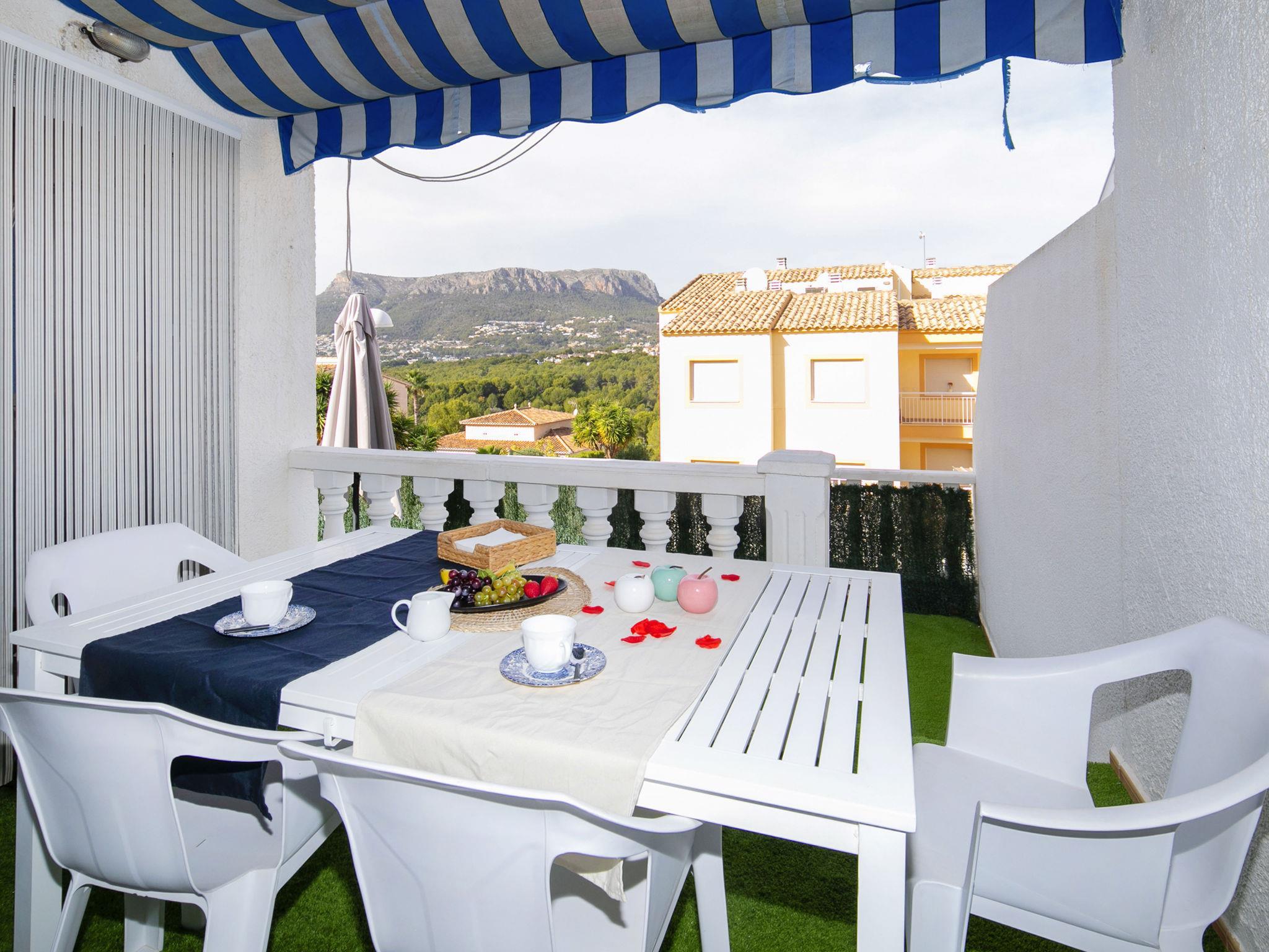 Casanova: Beautiful resort "Pueblo Casanova". 1.7 km from the centre of Calpe, in a quiet, sunny position, 1.9 km from the sea. For shared use: property (fenced), garden, swimming pool (15 x 12 m, seasonal availability: 01.Jan. - 31.Dec.) with salt-electrolysis pool-cleaning system. Unconventional pool shape. Children's pool, terrace. Heating available only from 01.Nov. - 30.Apr.. Supermarket 1.2 km, restaurant 1.4 km, bus stop 450 m, sandy beach 1.9 km, indoor swimming pool 1.5 km. Tennis 1.4 km. Please note: Additional accommodations can be booked. Sun loungers and shower/WC near the swimming pool.