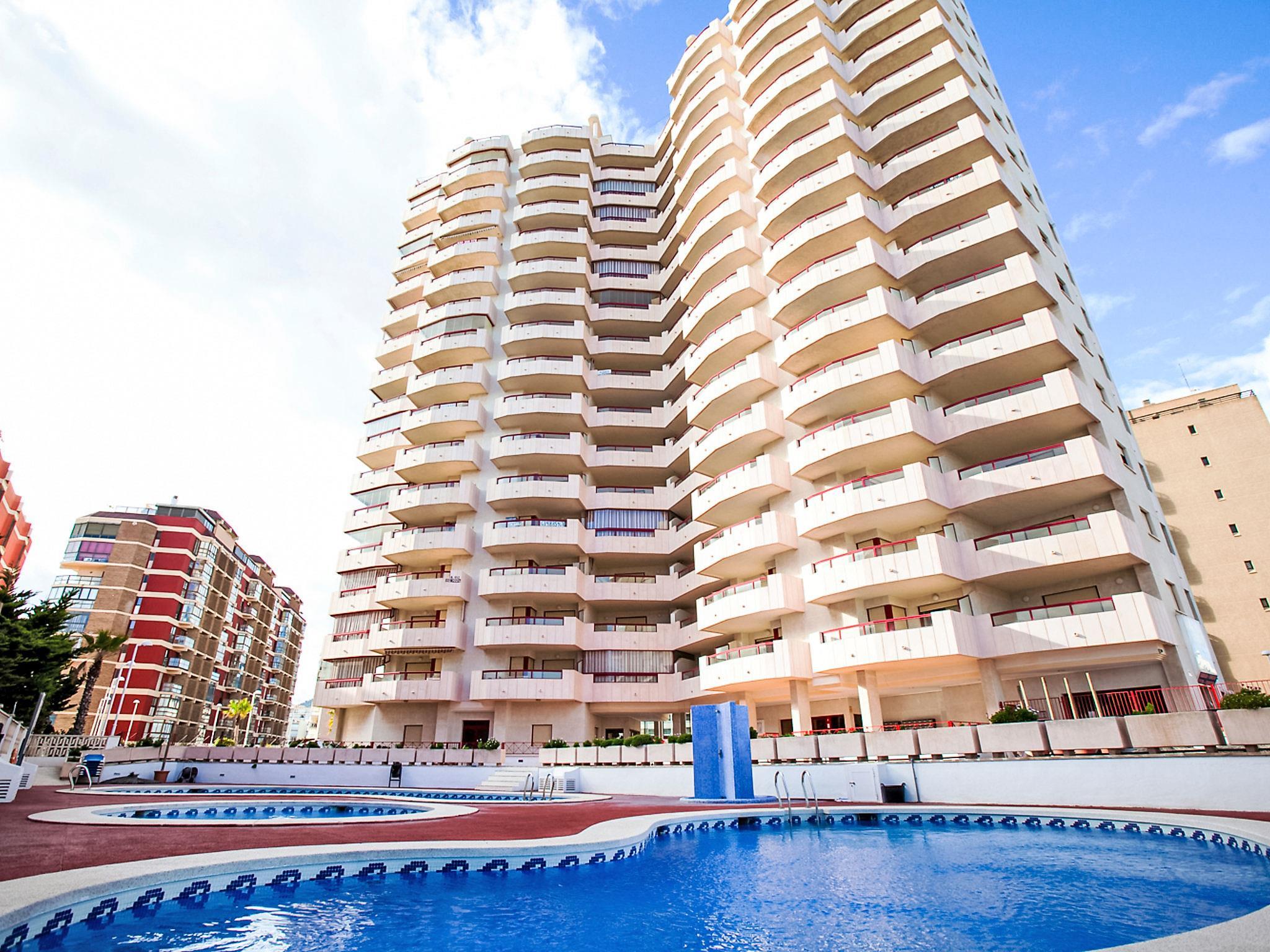 Calpe: Apartment block "Amatista", 16 storeys. In the resort, 700 m from the centre, in a busy, sunny position, 30 m from the sea, direct access to the beach, in a cul-de-sac. For shared use: property (fenced), 3 swimming pools (seasonal availability: 01.Jan. - 31.Dec.). Children's pool, outdoor shower, terrace. In the house: lift. Shop, grocery 100 m, supermarket 200 m, restaurant 50 m, bar 30 m, café, pedestrian zone 50 m, 7 minute walk to the centre, bus stop 400 m, sandy beach "Playa de la Arenal" 30 m, diving center 2 km. Sports harbour 2 km, marina 2 km, golf course (9 hole) 12 km, surf school 2 km, sailing school 2 km, tennis 1.5 km. Nearby attractions: Aqualandia Mundomar, Terra Natura Terra Mítica, Benidorm Palace. Hiking paths: Peñon de Ifach. Please note: suitable for families. Guarded residence. Residence with electric gates.