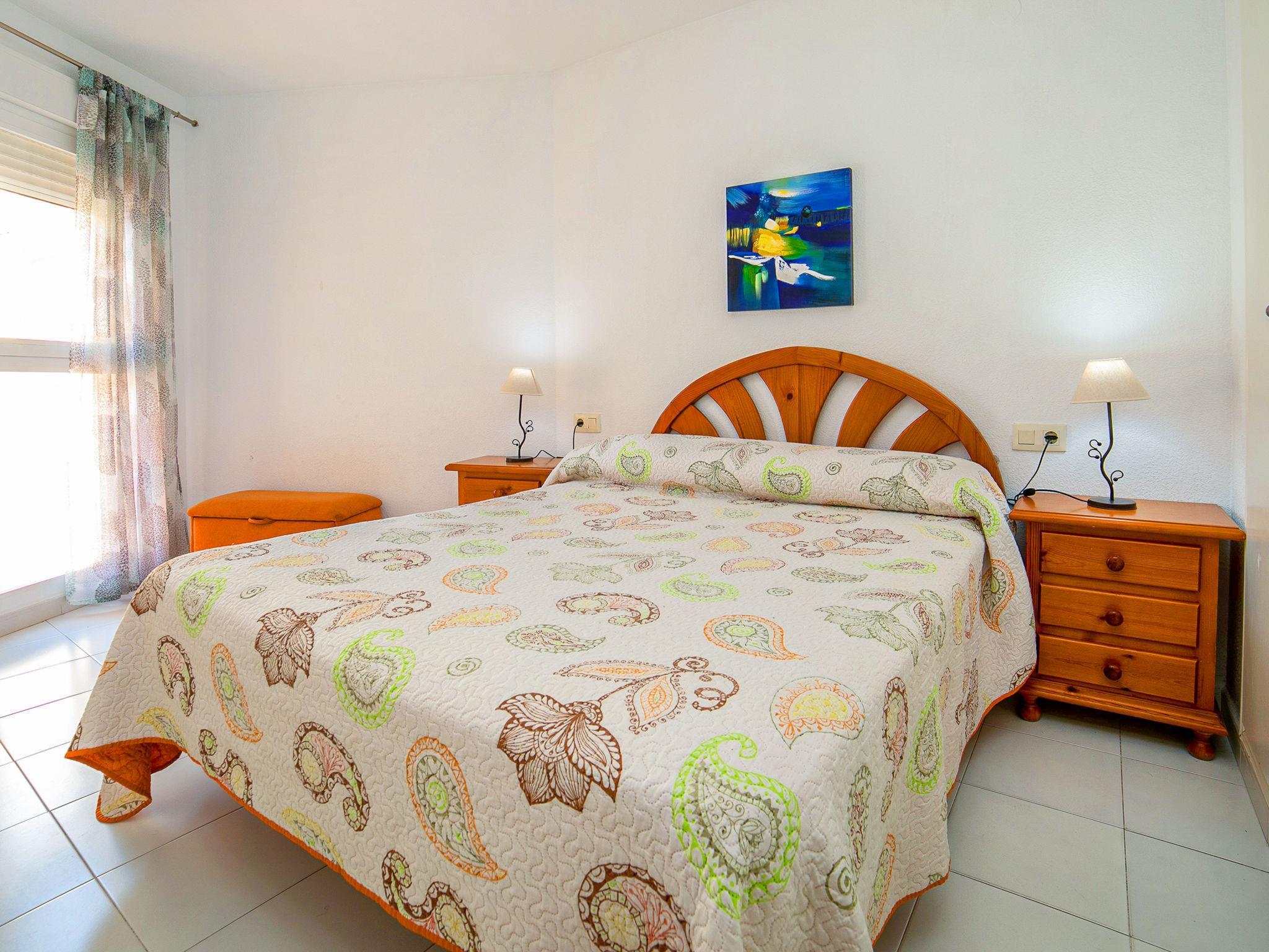 "Apolo VII", 3-room apartment 60 m2. Practical and comfortable furnishings: living/dining room with digital TV, air conditioning and forced-air heating. Exit to the terrace. 1 room with 1 french bed and bath/WC. 1 room with 2 beds. Small kitchen (oven, 4 ceramic glass hob hotplates, toaster, kettle, microwave, electric coffee machine). Shower/WC. Terrace. Terrace furniture. View of the swimming pool and the town. Facilities: washing machine, iron, children's high chair, baby cot for up to 2 year olds. Internet (WiFi, free). Parking space n 72 (roofed, 1 car). 1 small pet/ dog allowed. AT-438393-A // Reg. Nr.: ESFCTU00000302900044681300000000000000000AT-438393-A8