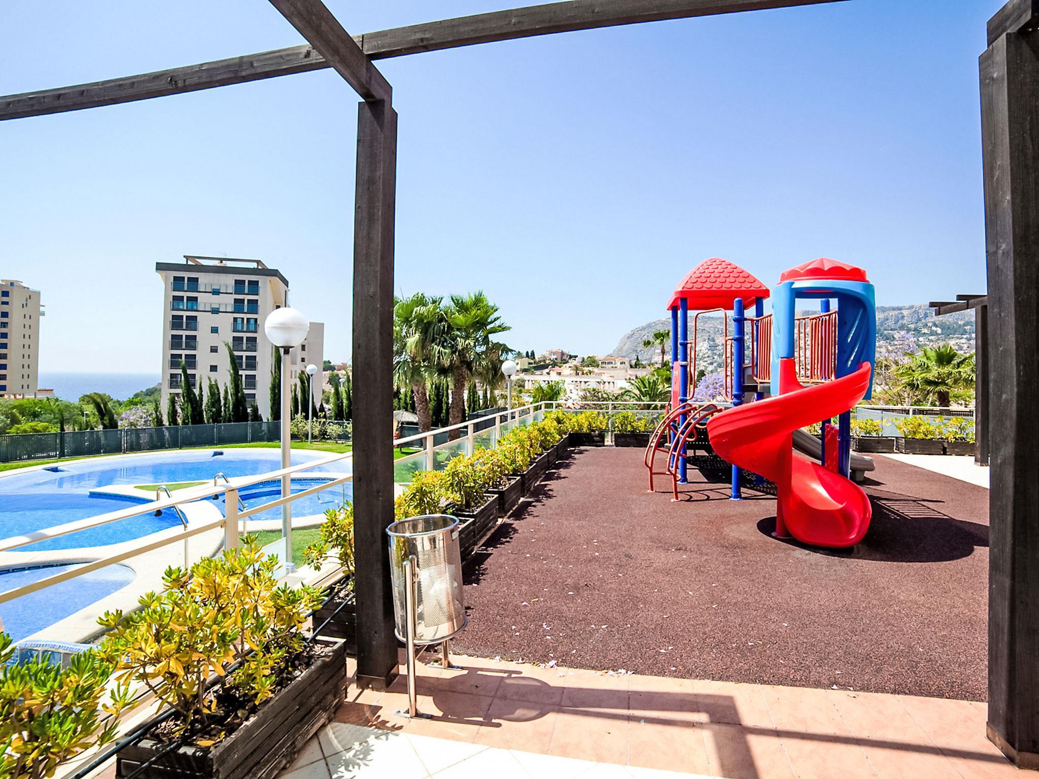 Beautiful apartment block "Luz de Calpe I". 200 m from the centre of Calpe, 1 km from the sea, 1 km from the beach. For shared use: beautiful, well-kept garden with lawn, swimming pool (13 x 12 m, seasonal availability: 01.Jan. - 31.Dec.) with internal staircase. Children's pool, outdoor shower, tennis, terrace, children's playground. In the house: lift. Supermarket 600 m, restaurant, bar 200 m, bus stop 180 m, sandy beach "Playa Arenal" 1 km, swimming bay 600 m. Nearby attractions: Terra Mitica 35 km, Aqualandia 25 km, Peñon de Ifach 4 km. Please note: suitable for families. Additional accommodations can be booked. Property ref. ES9730.907.3 is situated on the same property. The tennis court is a paddle court. Petanque.