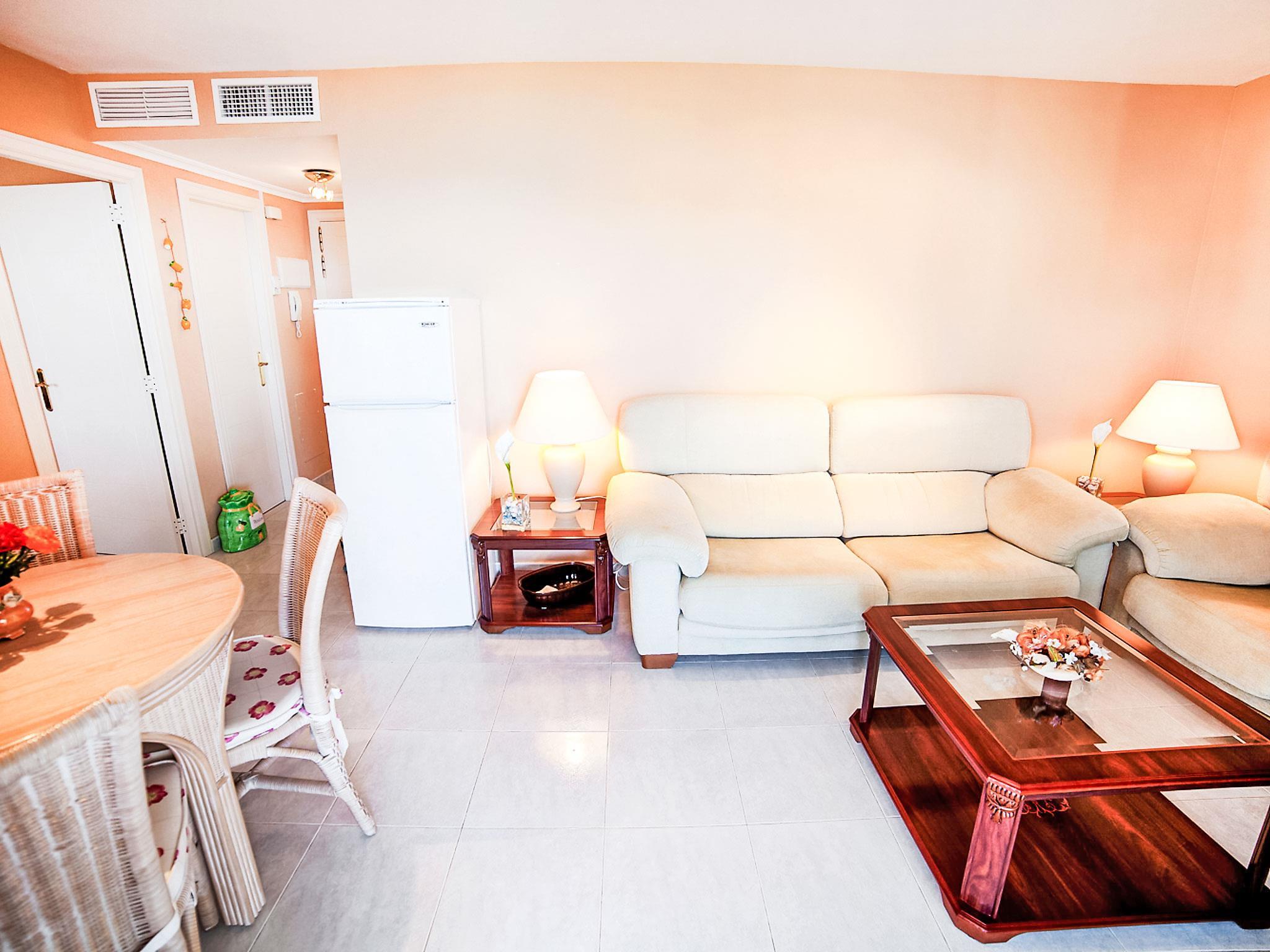 "Turquesa Beach 03", 2-room apartment 56 m2 on 12nd floor. Comfortable furnishings: living/dining room with satellite TV, air conditioning and forced-air heating. Exit to the terrace. 1 room with 1 french bed (160 cm, length 190 cm). Kitchenette (4 hot plates, oven, dishwasher, toaster, kettle, microwave, electric coffee machine). Bath/bidet/WC. Terrace furniture. Panoramic view of the sea and the port. Facilities: washing machine, iron, hair dryer. Garage space n G 135 (1 car), height 240 cm, width 800 cm. On the terrace there's space with: a microwave and a little dishwasher. AT-442079-A // Reg. Nr.: ESFCTU00000302900053077200000000000000000AT-442079-A2