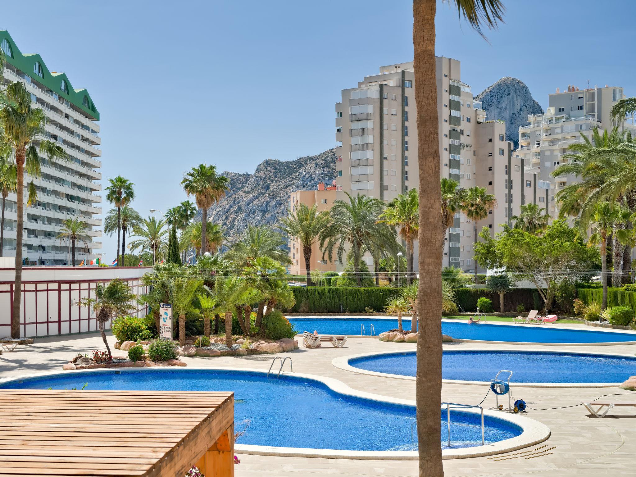 Playa de Levante: Beautiful apartment block "Coral Beach", 22 storeys. 3 km from the centre of Calpe, 150 m from the sea, 150 m from the beach. For shared use: property (fenced), 3 swimming pools (seasonal availability: 01.Jan. - 31.Dec.). Shower/WC in the pool area, children's pool, outdoor shower, terrace. In the house: lift. Supermarket, restaurant, bar 100 m, bus stop 44 m, sandy beach "Playa de la Fossa" 150 m, swimming bay 300 m. Golf course (9 hole) 12 km, tennis 3 km. Nearby attractions: Aqualandia, Mundomar, Terra Mítica, Terra Natura, Benidorm Palace (Benidorm).