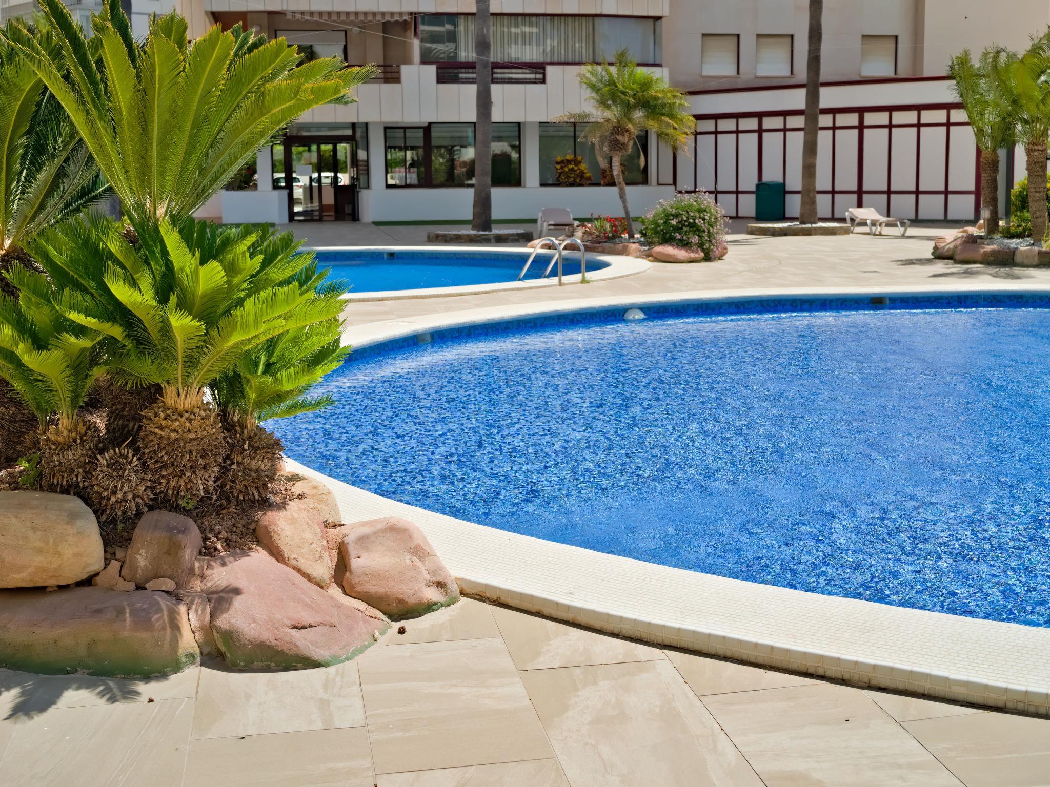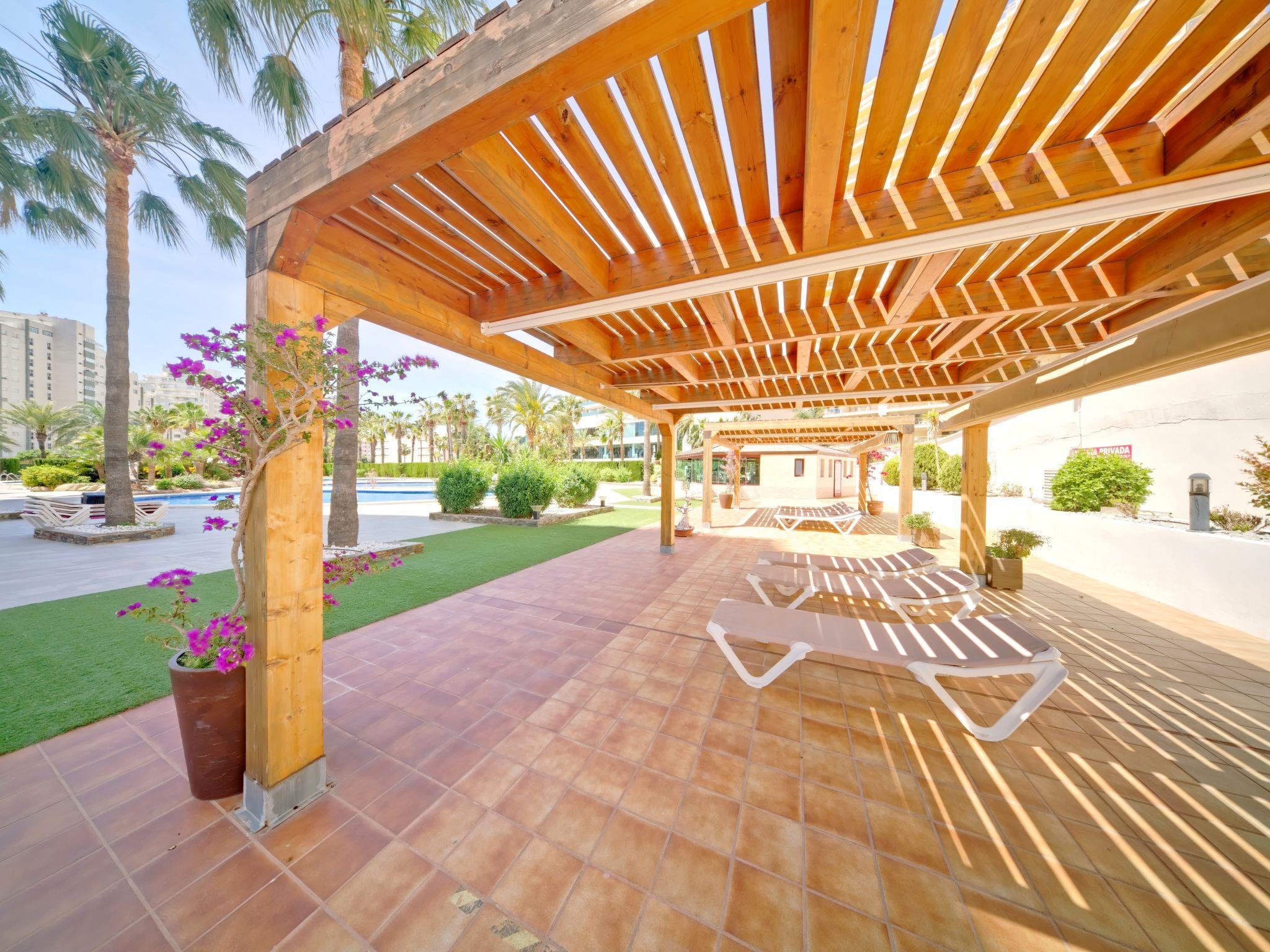 Playa de Levante: Beautiful apartment block "Coral Beach", 22 storeys. 3 km from the centre of Calpe, 150 m from the sea, 150 m from the beach. For shared use: property (fenced), 3 swimming pools (seasonal availability: 01.Jan. - 31.Dec.). Shower/WC in the pool area, children's pool, outdoor shower, terrace. In the house: lift. Supermarket, restaurant, bar 100 m, bus stop 44 m, sandy beach "Playa de la Fossa" 150 m, swimming bay 300 m. Golf course (9 hole) 12 km, tennis 3 km. Nearby attractions: Aqualandia, Mundomar, Terra Mítica, Terra Natura, Benidorm Palace (Benidorm).