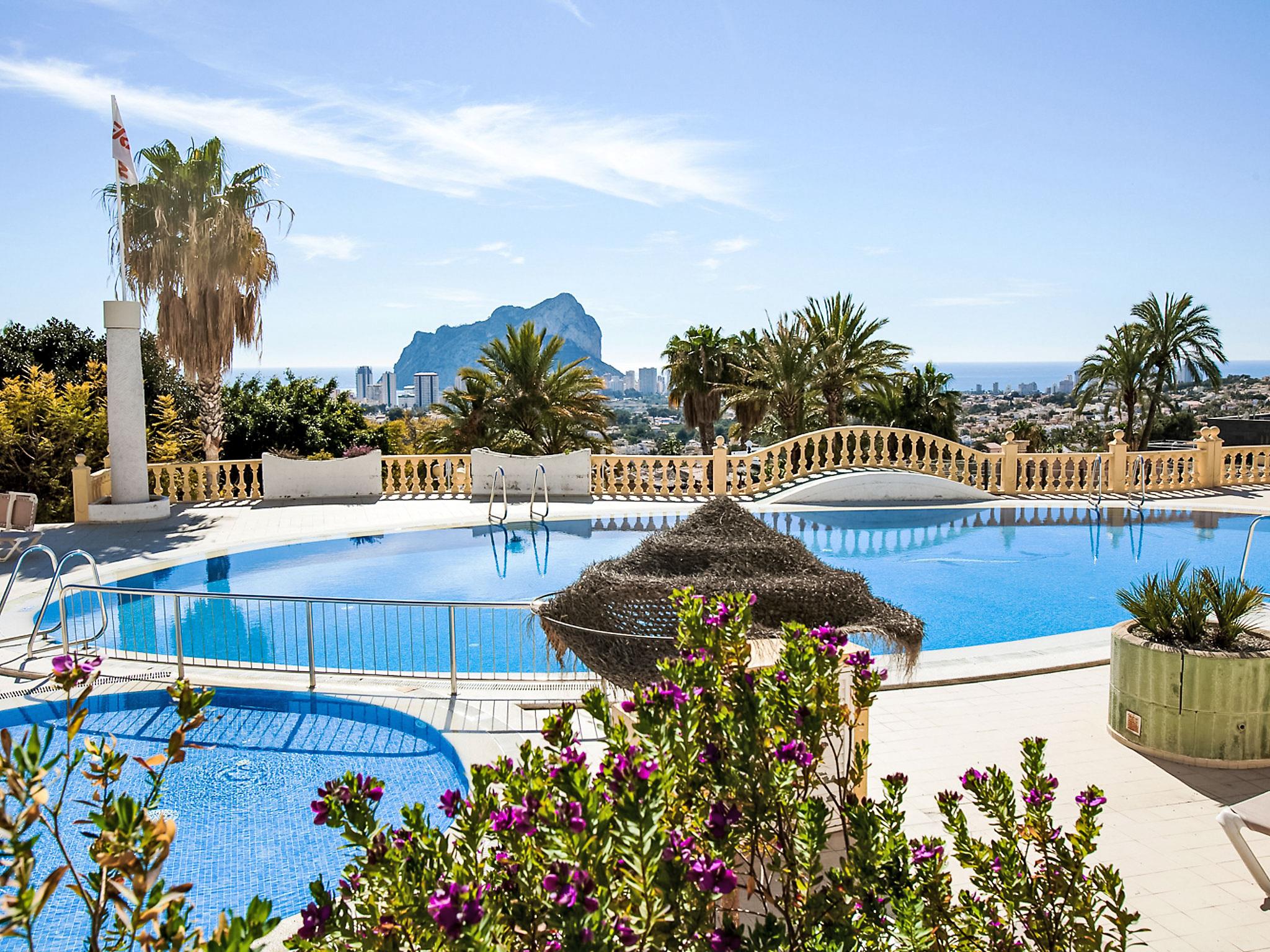 Imperial Park: Modern terraced house "Imperial Park". 3.3 km from the centre of Calpe, in a busy, sunny, elevated position, 2.5 km from the sea, 2.5 km from the beach. For shared use: large, well-kept terraced garden (fenced), natural garden, 3 swimming pools (seasonal availability: 01.Jan. - 31.Dec. pool opening hours: 10:00-20:00) with internal staircase. Unconventional pool shape. Children's pool, outdoor shower, patio, pergola, garden furniture. In the house: reception, lift. Shop 2 km, supermarket 2 km, restaurant 50 m, bar 200 m, café 50 m, bus stop 1.3 km, sandy beach "Playa De La Fosa" 3 km, diving center 1.5 km. Sports harbour 2.5 km, marina 2.5 km, golf course (18 hole) 10 km, surf school 2.5 km, sailing school 2.5 km, tennis 2.8 km, minigolf 3 km. Nearby attractions: Aqualandia, Mundomar, Terra Mítica, Terra Natura, y Benidorm Palace (Benidorm). Please note: car recommended. Reception open 10:00-15:00 hrs. Suitable for families. Please note: guarded residence. Additional accommodations can be booked. All houses/apartments are individually designed/furnished. Neighbourhood highly sensitive to noise. Quietness and good behaviour expected.