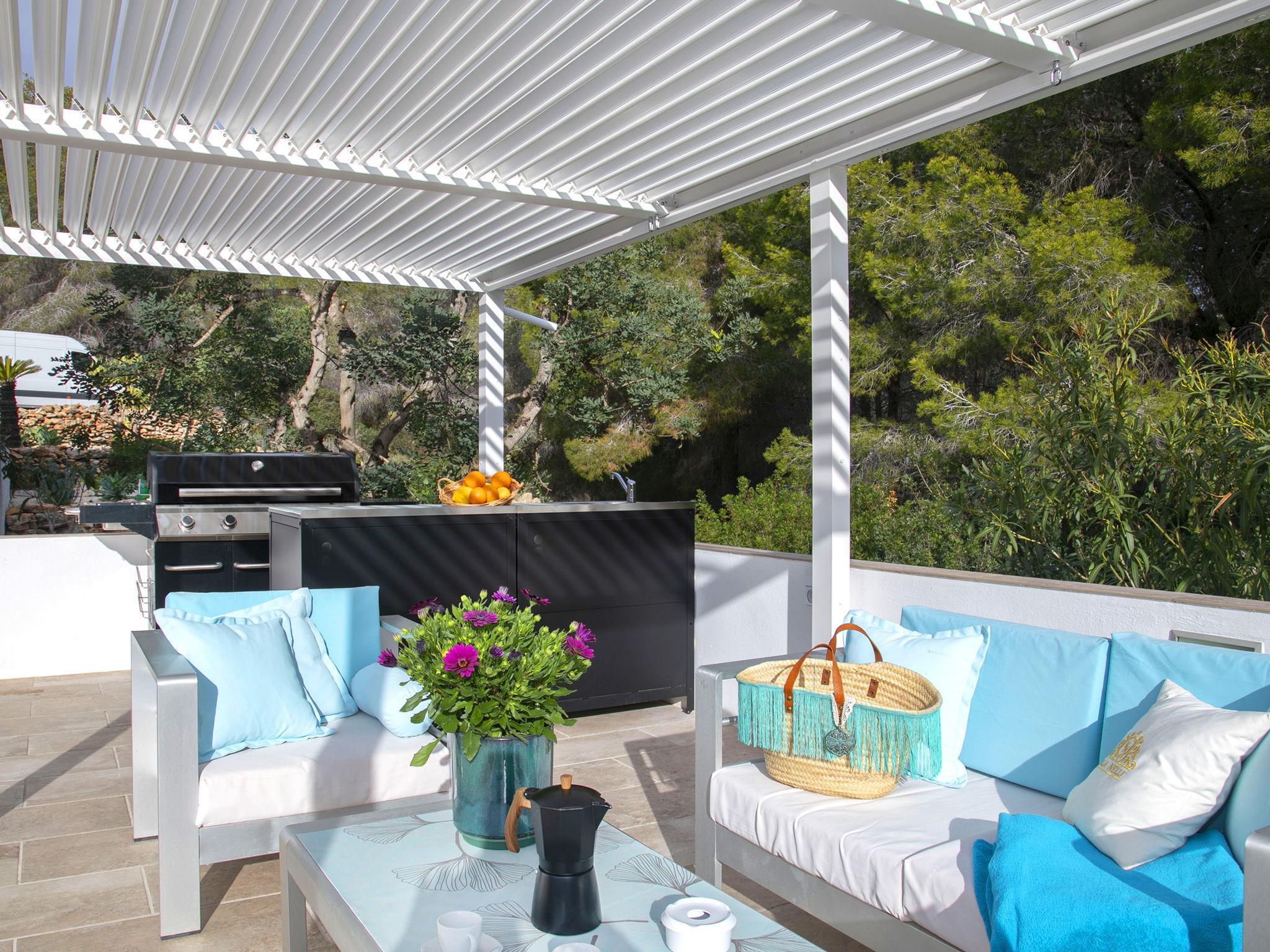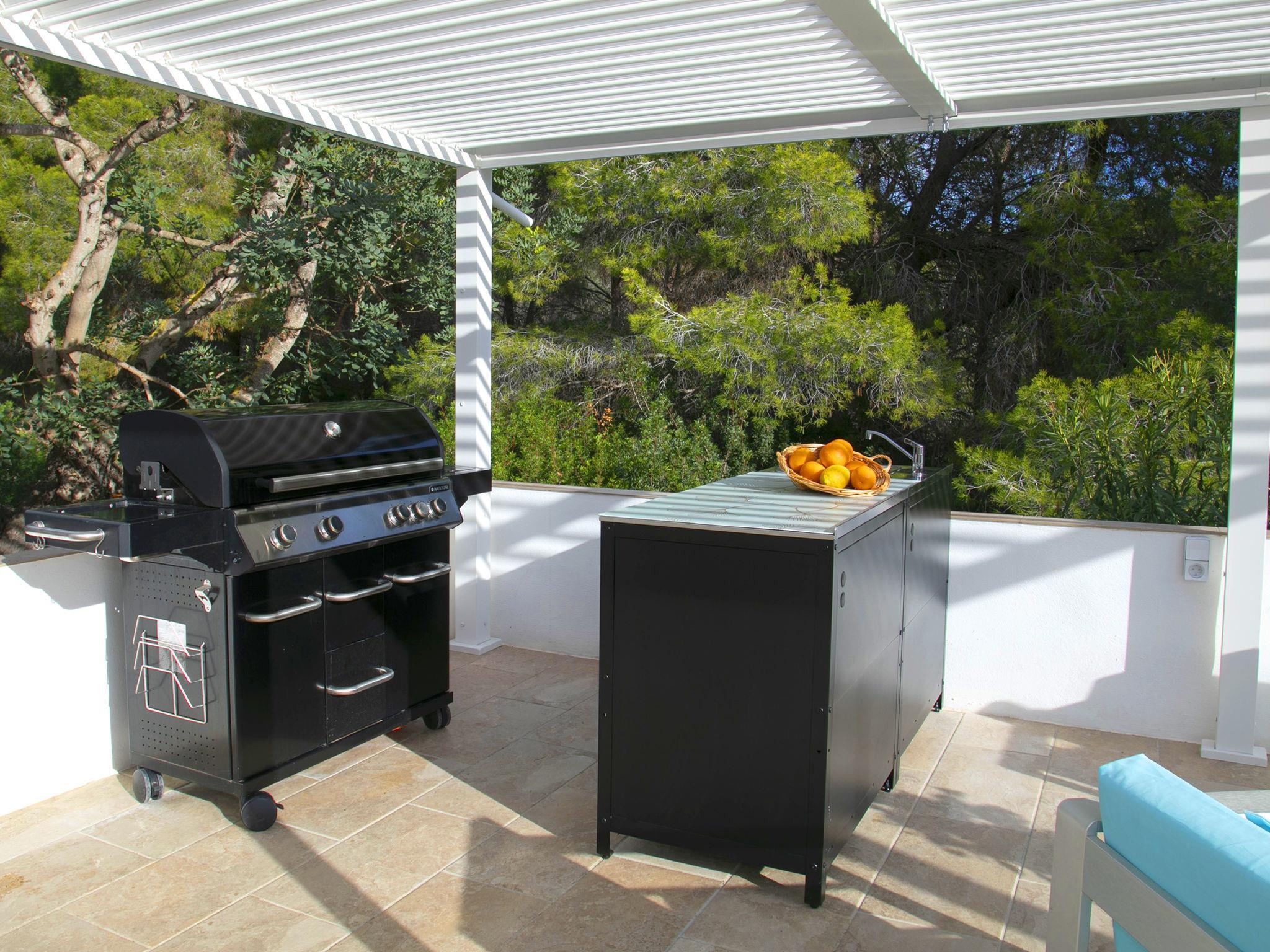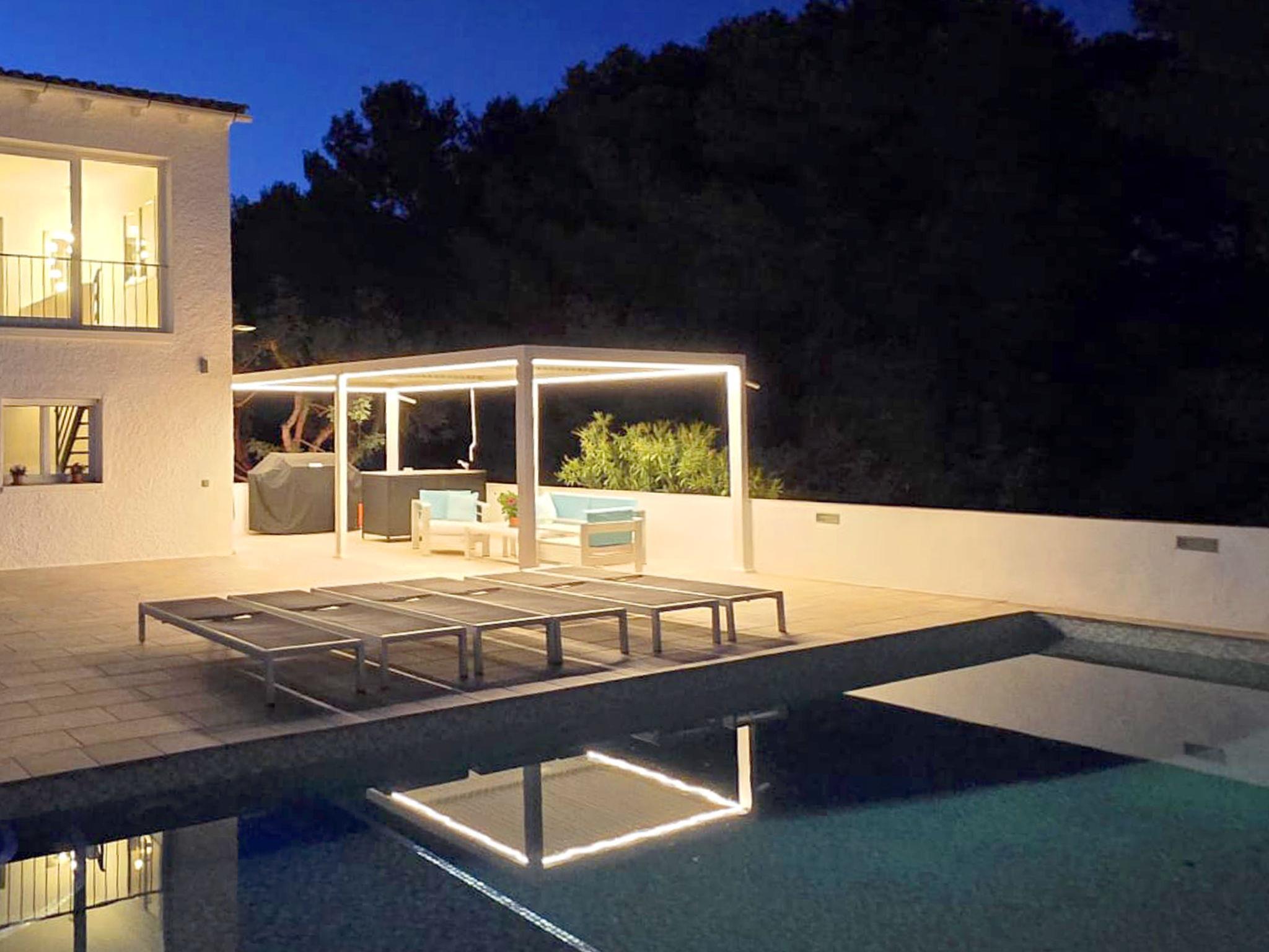 La Fustera 6 km from Calpe: Beautiful single-family house "Nelli", 2 storeys, renovated in 2018, surrounded by trees. 5.4 km from the centre of Calpe, in a quiet position, 1.4 km from the sea, 1.4 km from the beach. Private: property 2'200 m2 (fenced), orchard, swimming pool (4 x 9 m, seasonal availability: 01.Jan. - 31.Dec.) with internal staircase and salt-electrolysis pool-cleaning system. Outdoor shower, terrace, garden furniture, barbecue. In the house: WiFi, air conditioning, washing machine, tumble dryer. Parking (for 4 cars). Supermarket 1 km, restaurant 1.5 km, bar 1 km, bus stop 1.2 km, sandy beach 1.5 km. Sports harbour 1.5 km, marina 1.5 km, golf course (8 hole) 6.3 km, surf school 1.5 km, sailing school 1.5 km, tennis 4.8 km, riding stable 9.8 km, walking paths from the house 100 m, cycle lane. Nearby attractions: Aqualandia, Mundomar, Terra Mítica, Terra Natura, Benidorm Palace en Benidorm. Hiking paths: Peñón de Ifach 6 km. The beach is 12 minutes walking. Swimming pool and garden area have a lot of privacy. Swimming pool with a waterfall.