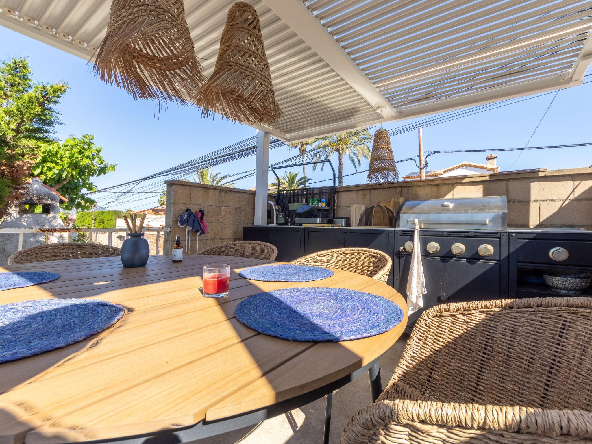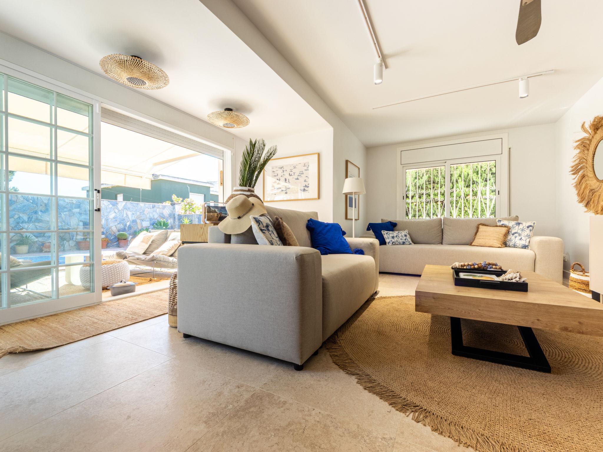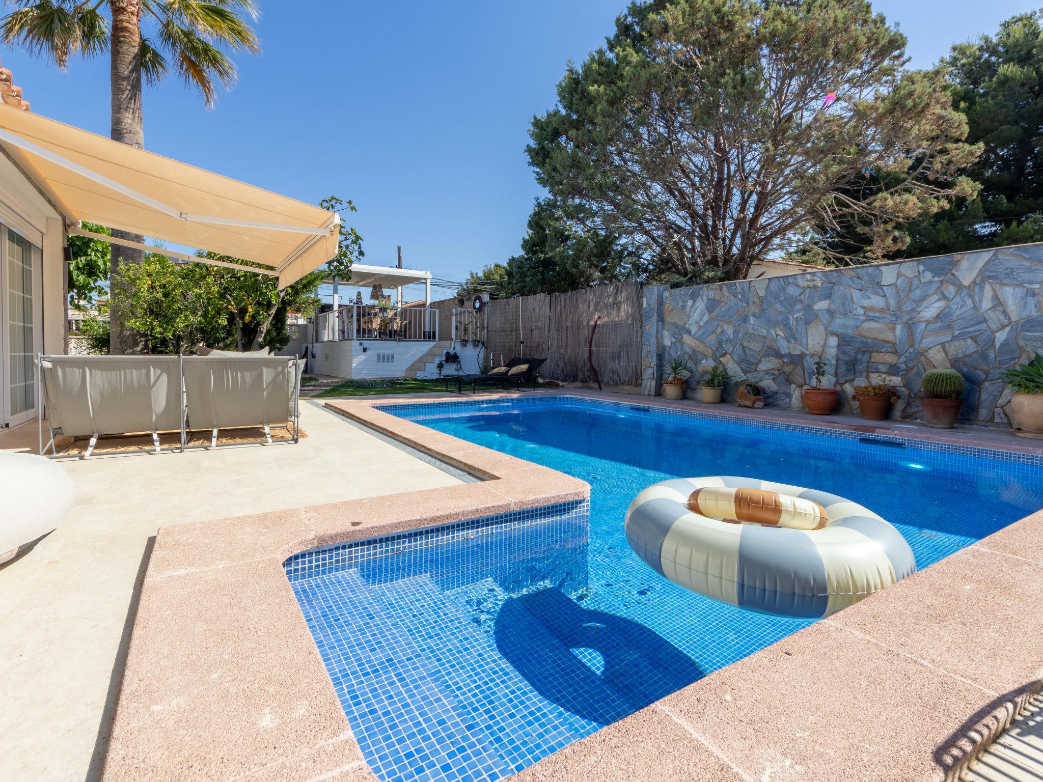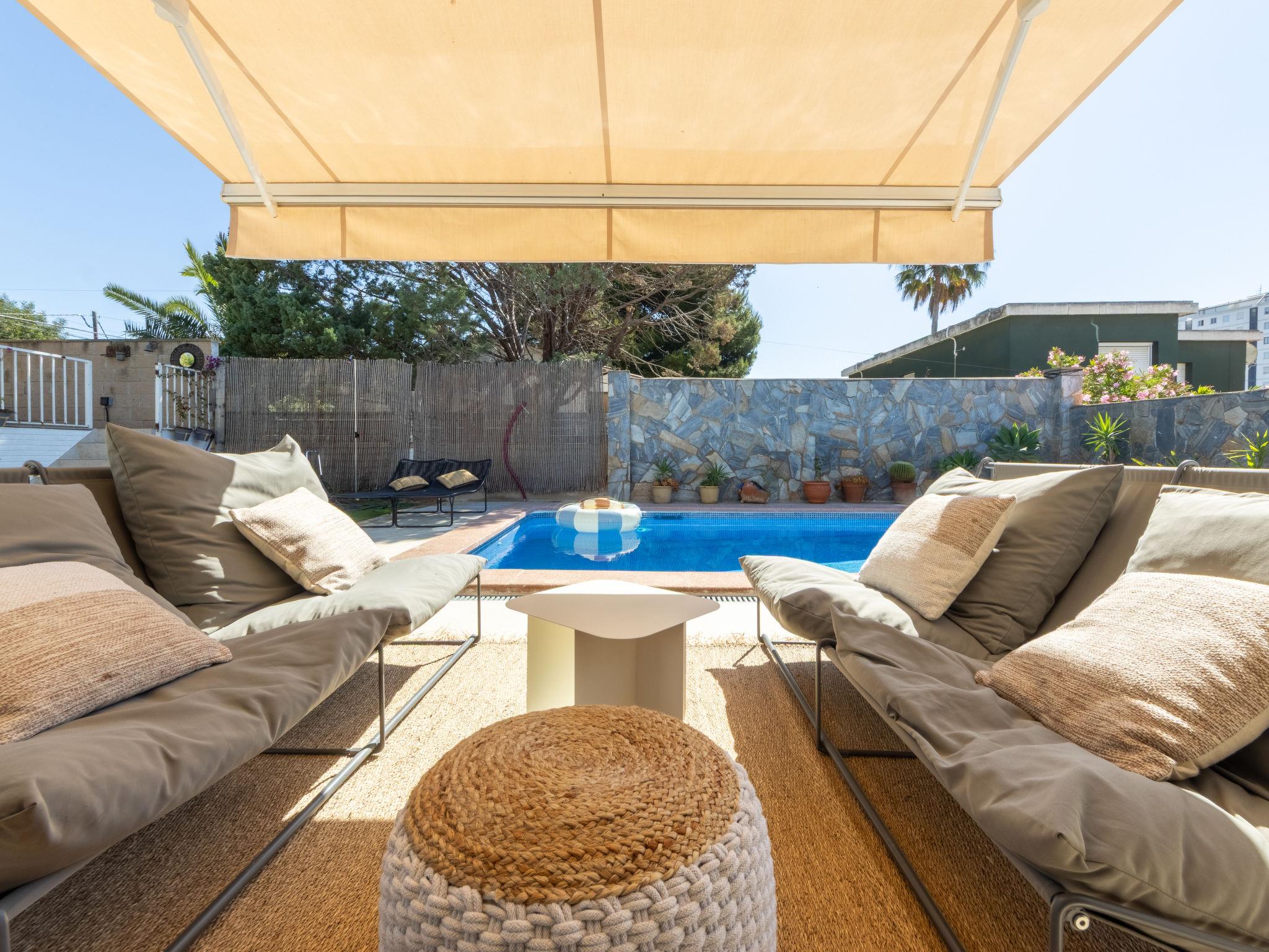 Cambrils Mediterranea: Beautiful house "Fortuna", renovated in 2025. Outside the resort, 3 km from the centre of Cambrils, 800 m from the sea, 800 m from the beach. Private: property 500 m2 (fenced), wildlife garden and trees, swimming pool angular (7 x 4 m, depth 90 - 200 cm, seasonal availability: 01.Jan. - 31.Dec.) with internal staircase. Arbour, garden furniture, barbecue. Stepped path (6 steps) to the house. Public parking on the road. Shop 1 km, bar 1 km, bus stop 300 m, railway station 3 km. Golf course (18 hole) 4 km. Nearby attractions: Parque temático PORTAVENTURA 8 km, Parque aquático AQUOPOLIS 10 km, Spa AQUUM 10 km, Karting 7 km, Paintball 10 km. Groups of teenagers on request only.