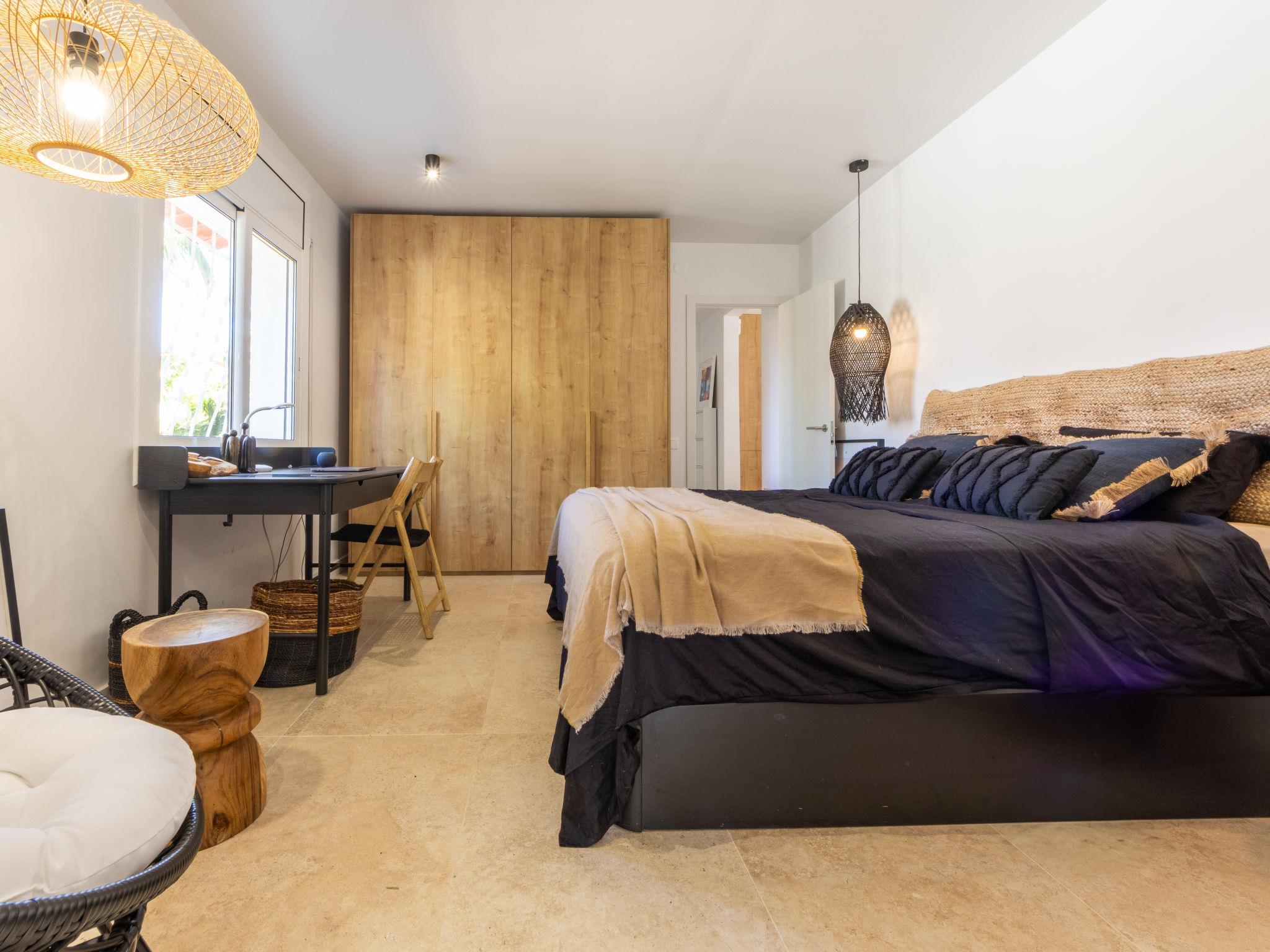 4-room house 108 m2, on the upper ground floor. Renovated in 2025, beautiful and modern furnishings: living/dining room with digital TV. Exit to the terrace. 1 room with 1 french bed (160 cm, length 190 cm), shower/WC. 1 room with 1 french bed (135 cm, length 190 cm). 1 room with 1 french bed (135 cm, length 190 cm). Open kitchen (2 induction hot plates, Gas stove, toaster, kettle, electric coffee machine) with bar. Shower/WC. Air-conditioning. Solar power Heating not available in all rooms. Patio. Terrace furniture, barbecue, sitting area. View of the swimming pool. Facilities: washing machine, dryer, iron, children's high chair, hair dryer. Internet (WiFi, free). Please note: suitable for families. Non-smokers only, non-smoking house. HUTT-005161 // Reg. Nr.: ESFCTU00004303100052920300000000000000000HUTT-0051619