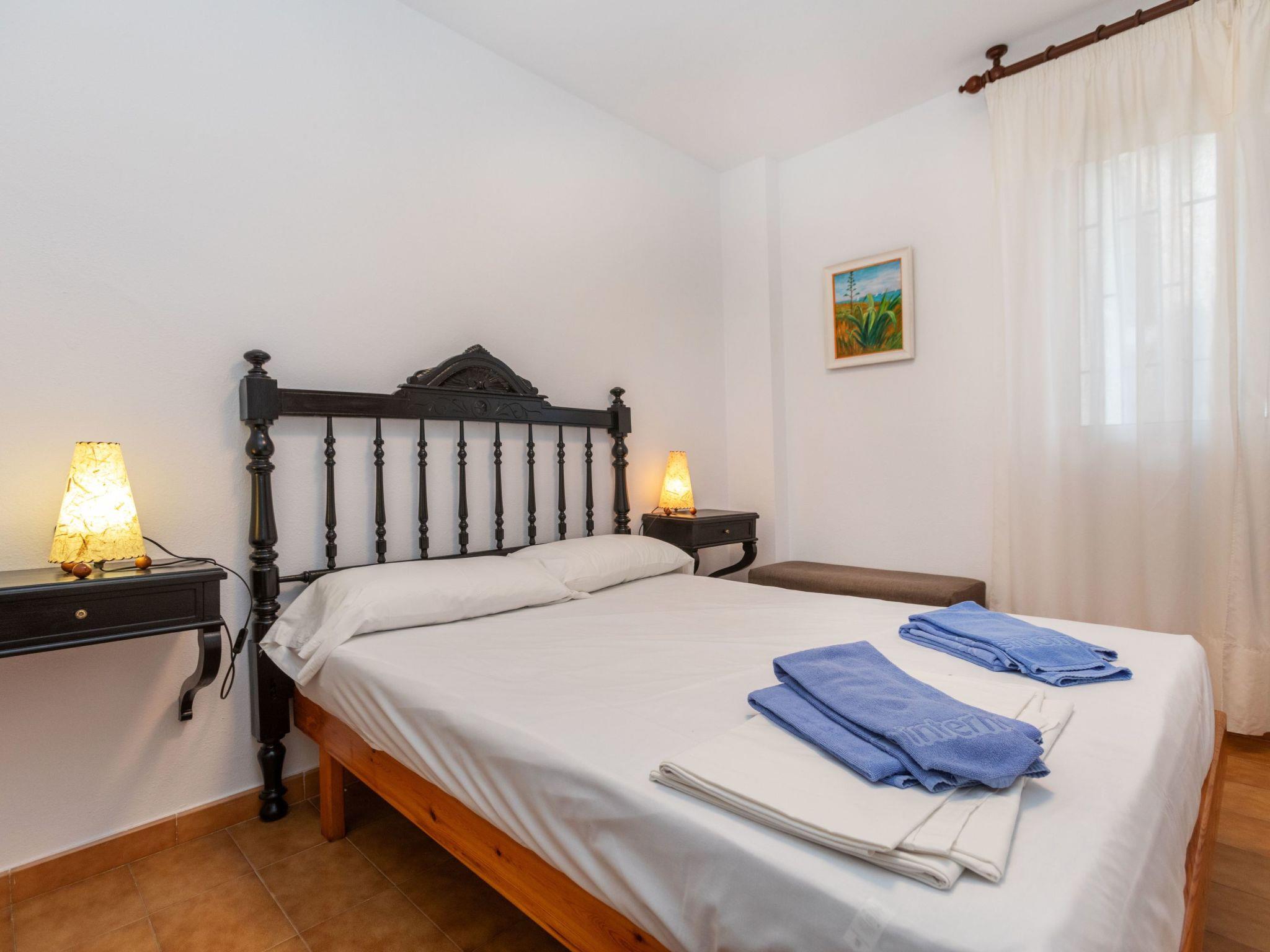 "Blanca de Vilafortuny", 3-room apartment 80 m2. Living/dining room with dining table and digital TV. Exit to the patio. 1 room with 1 french bed (135 cm, length 190 cm), bath/bidet/WC. 1 room with 2 beds (80 cm, length 190 cm). 1 room with 1 french bed (135 cm, length 190 cm). Open kitchen (oven, 4 ceramic glass hob hotplates, toaster, kettle, microwave, electric coffee machine). Shower/WC. No heating option. Patio. Terrace furniture. Very beautiful view of the sea. Facilities: washing machine, iron, hair dryer. Parking (fenced). Please note: parking space for small car only. HUTT-013379 // Reg. Nr.: ESFCTU00004303100011074600000000000000000HUTT-0133795
