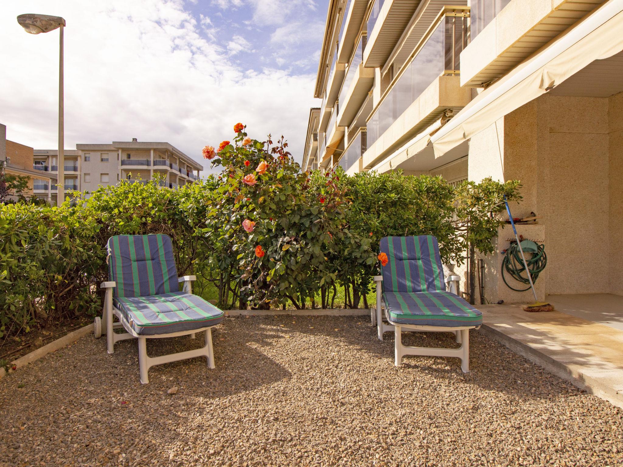 La Llosa 1 km from Cambrils: Cosy, comfortable apartment block "Golf de Sant Jordi". In a central, sunny position, 30 m from the sea, 30 m from the beach, in a cul-de-sac. For shared use: large garden, swimming pool (depth 120 - 200 cm, seasonal availability: 01.Jun. - 15.Sep. pool opening hours: 09:00-22:00). Outdoor shower. Bus stop "orquidies 36" 300 m. Nearby attractions: Port Aventura / Ferrari Land, Jumpland, Acuopolis. Hiking paths: La Mussara. Please note: baby equipment on request (extra).