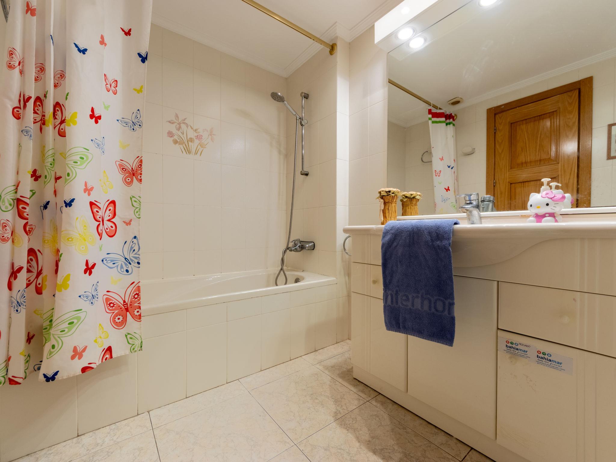"Bahia Dorada C", 4-room apartment 90 m2 on 3rd floor. Practical and comfortable furnishings: living/dining room with digital TV. Exit to the terrace. 1 room with (2 x 90 cm, length 190 cm), 1 pull-out bed and fan. 1 room with 2 beds (90 cm, length 190 cm). 1 room with 2 beds (105 cm, length 190 cm). Kitchen (oven, dishwasher, 4 ceramic glass hob hotplates, toaster, kettle, microwave, electric coffee machine, Capsules for coffee machine (Nescafé)) with boiler (75 litres). Bath/bidet/WC, shower/WC, sep. WC. No heating option. Large terrace. Terrace furniture. Facilities: washing machine, iron, hair dryer. Internet (WiFi, free). Parking space n 47. Suitable for families. HUTT-003607 // Reg. Nr.: ESFCTU00004303100013181900000000000000HUTT-003607-911
