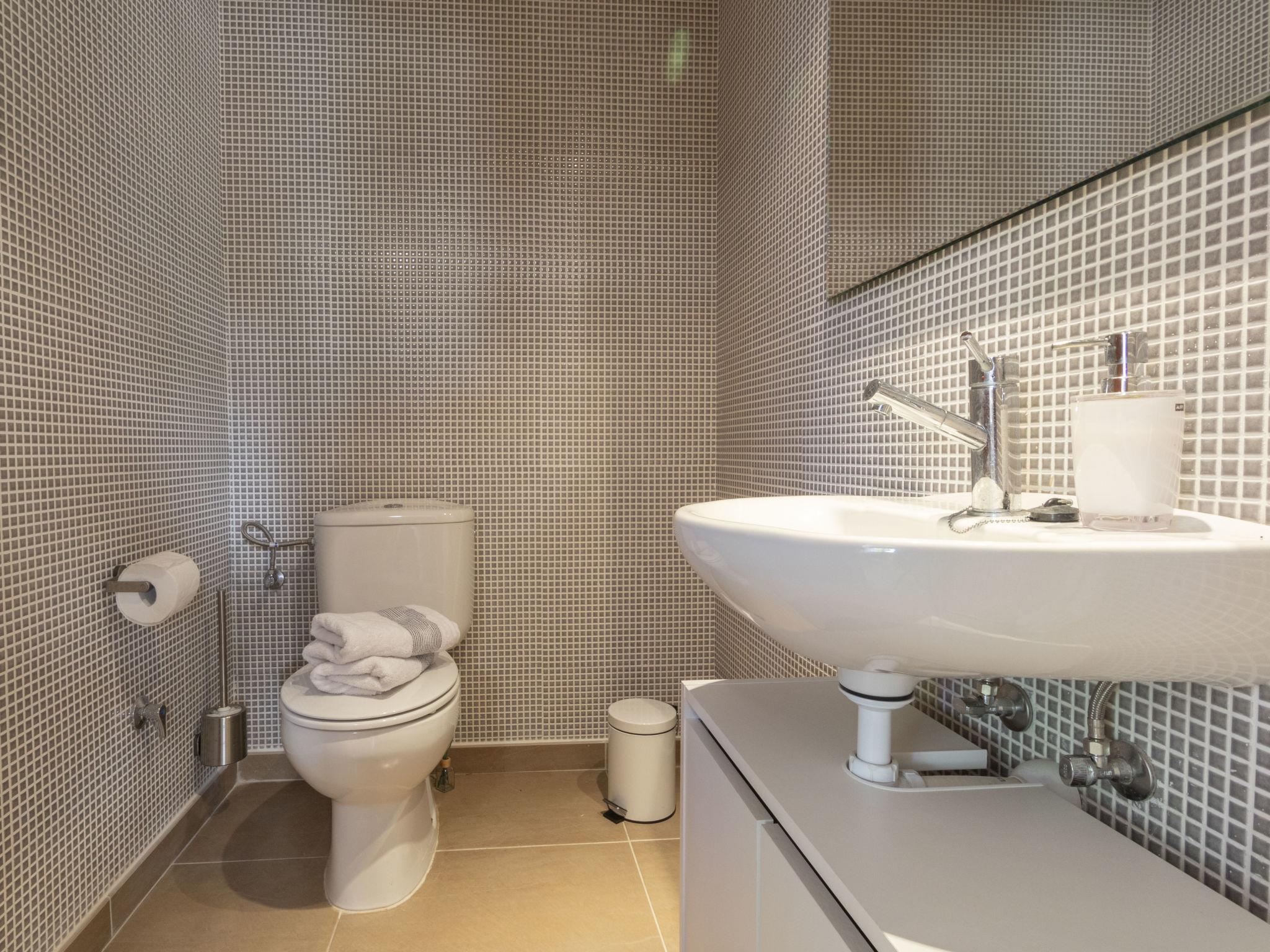 Very modern, beautiful resort "Sol Cambrils Park". In the resort, in a quiet, sunny position, 30 m from the sea, 30 m from the beach, road to cross. For shared use: property 10'000 m2 (fenced), large, beautiful, well-kept garden with lawn, swimming pool, indoor pool heated (22 x 65 m, depth 60 - 220 cm, seasonal availability: 01.Jan. - 31.Dec. pool opening hours: 10:00-23:00). Children's pool, outdoor shower. In the house: sauna, fitness room, hot tub, lift. Shop, grocery, supermarket 600 m, shopping centre 12 km, restaurant, bar 200 m, bakery 600 m, café 200 m, bicycle rental 300 m, pub garden 200 m, bus stop "Playa Cavet" 240 m. Sports harbour 3 km, marina 3 km, golf course (18 hole) 6 km, surf school 500 m, sailing school 3 km, riding stable 8 km. Nearby attractions: Port Aventura 8 km, Aquopolis 9 km, Aquum Spa 9 km. Hiking paths: La Mussara 35 km. The owner does not accept any youth groups. Please note: Property ref. ES9582.600.6 is situated on the same property. Neighbourhood highly sensitive to noise. Quietness and good behaviour expected. The grounds have a sports court, suitable for football and basketball, 2 small tennis courts and a beach-volleyball court. Use of these courts is included in the rent.