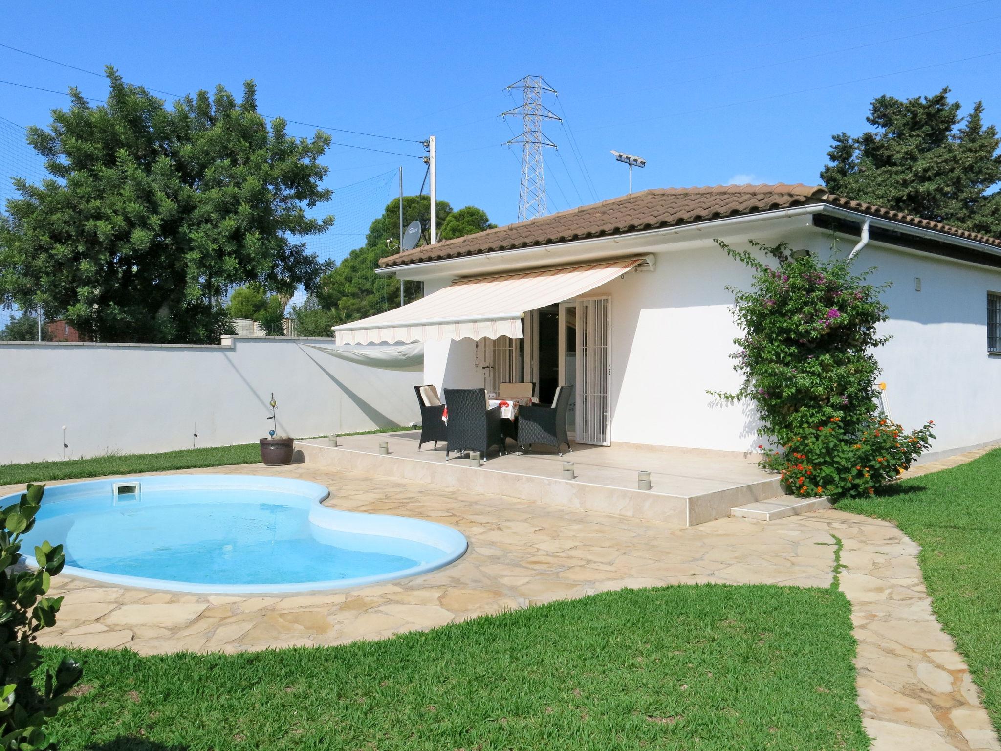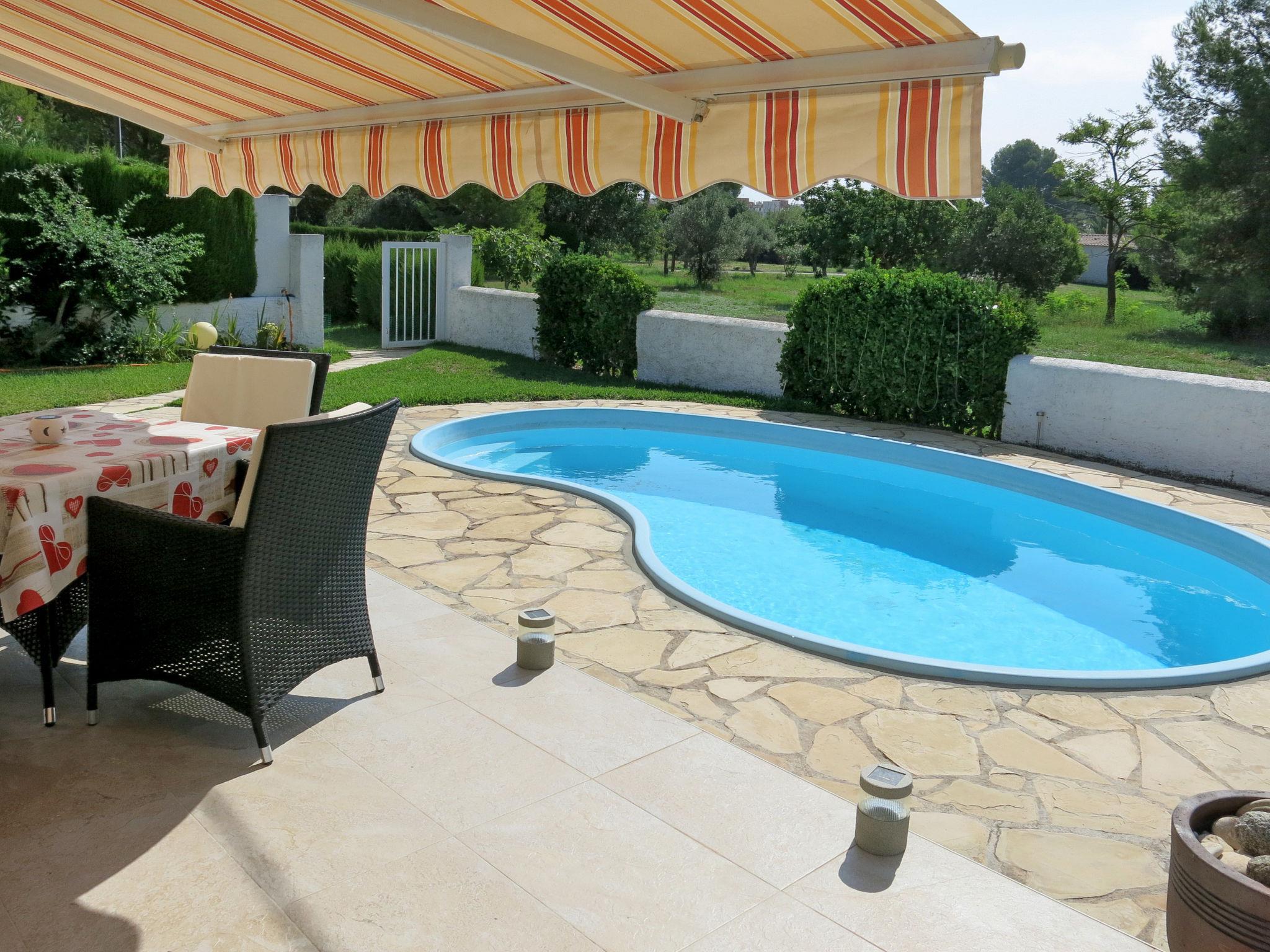 Single-family house "Ingeborg". In the district of Vilafortuny II 4 km from the centre of Cambrils, 2 km from the centre of Salou, 100 km from the centre of Barcelona, 600 m from the sea. Private: property 300 m2 (fenced), well-kept garden with lawn, swimming pool kidney shaped (20 m2, depth 150 - 150 cm, seasonal availability: 02.May. - 31.Oct.). Outdoor shower, pool maintenance by the owner/gardener. In the house: laundry. Motor access (100 m via unmade road). Roofed, parking at 100 m. Shop 500 m, supermarket 900 m, bus stop "av castell de vilafortuny" 400 m, sandy beach "Cap San Pere" 600 m.