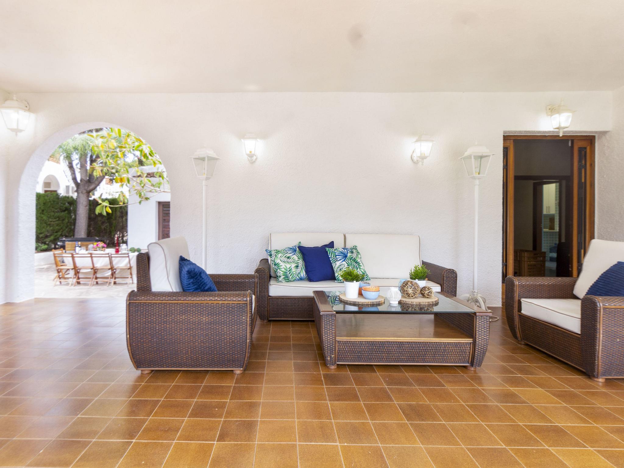 "Villa Esplai", 7-room house 149 m2. Object suitable for 8 adults + 4 children. Spacious, comfortable and cosy furnishings: living/dining room with digital TV and flat screen. 1 room with 1 french bed (180 cm, length 200 cm). 1 room with 1 french bed (140 cm, length 190 cm), bath/WC. 1 room with 1 french bed (135 cm, length 190 cm). 1 room with 2 pull-out beds (4 pers. 2 x 90 cm, length 180 cm). 1 room with 1 french bed (135 cm, length 190 cm). Kitchen (oven, dishwasher, 4 ceramic glass hob hotplates, microwave, electric coffee machine, Capsules for coffee machine (Nespresso)). 2 showers/WC. No heating option. Large terrace. Terrace furniture, barbecue, deck chairs (6). View of the garden. Facilities: washing machine, dryer, iron, children's high chair, baby cot, hair dryer. Internet (WiFi). Please note: suitable for families. Non-smoking house. HUTT-048154 // Reg. Nr.: ESFCTU00004303100004386000000000000000000HUTT-0481546