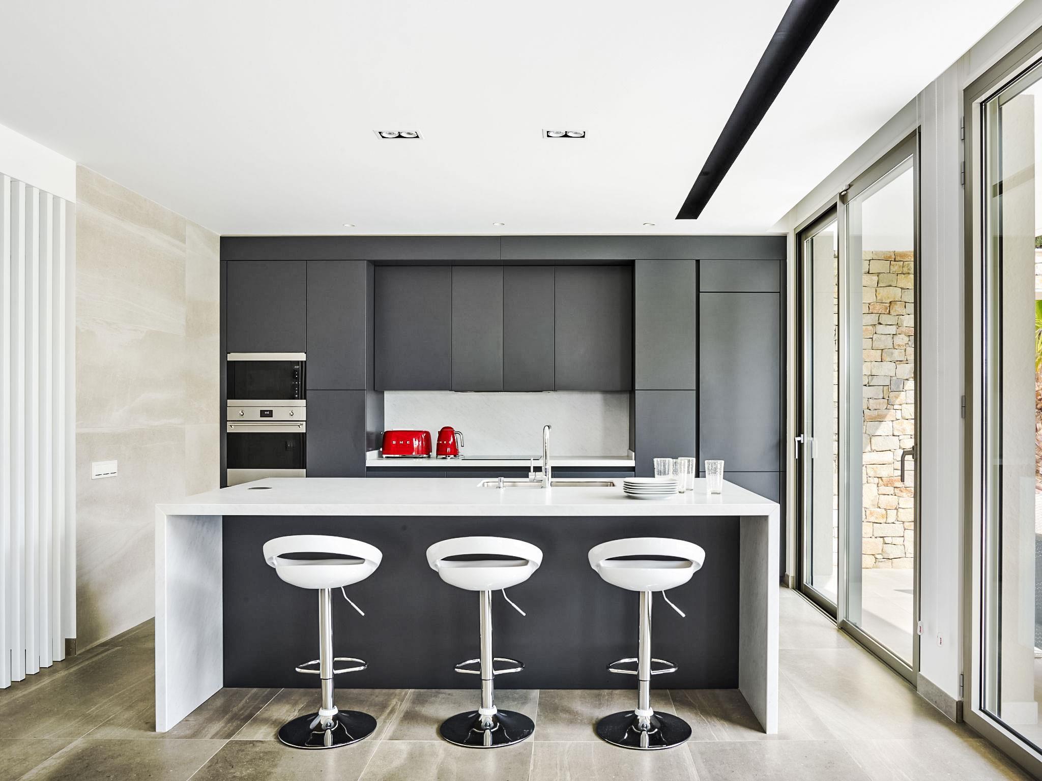 "Ardíaca", 6-room villa 260 m2. Object suitable for 6 adults + 2 children. Spacious and bright, very luxurious and stylish furnishings: open living/dining room with TV and digital TV (flat screen), electric shutters. Exit to the patio, to the swimming pool. Open kitchen (oven, dishwasher, 3 induction hot plates, microwave, electric coffee machine) with electric shutters. Exit to the patio, to the swimming pool. Sep. WC. Air-conditioning, forced-air heating. Solar power. On the lower ground floor: lounge with TV and flat screen. Shower/WC. Air-conditioning, forced-air heating. Upper floor: 1 room with 1 french bed (180 cm, length 200 cm), shower/WC. 1 room with 2 beds (90 cm, length 190 cm). Exit to the terrace. 1 room with 1 french bed (160 cm). Exit to the terrace. 1 room with 1 french bed (160 cm), shower/WC. Exit to the terrace. Shower/WC. Air-conditioning, forced-air heating. Large patio 300 m2. Terrace furniture, barbecue, deck chairs. Very beautiful view of the sea, the swimming pool and the garden. Facilities: washing machine, dryer. Internet (WiFi). Please note: non-smoking house. The pool mentioned in the description is for private use. HUTT-037450 // Reg. Nr.: ESFCTU00004303100046343900000000000000000HUTT-0374501