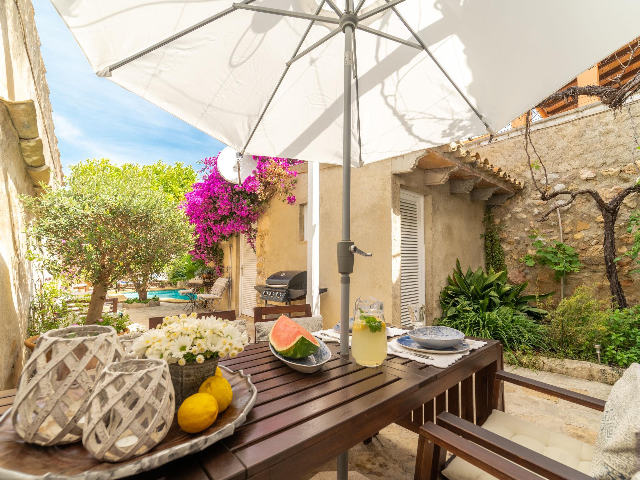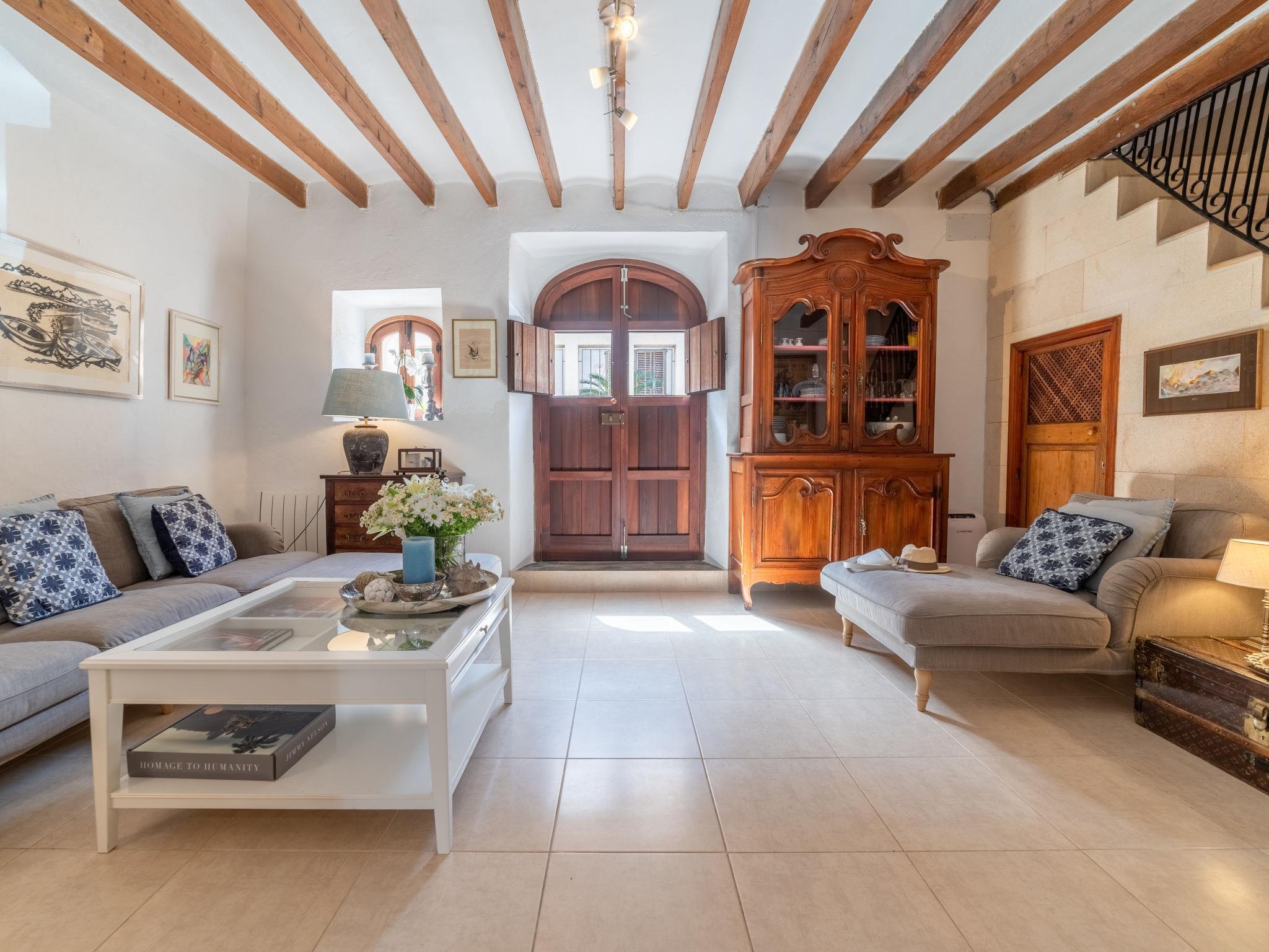 "Sa Teulera", 3-room terraced house 150 m2 on 2 levels. Object suitable for 6 adults. Partly with sloping ceilings, fully renovated, beautiful and tasteful furnishings: living room with TV and international TV channels. Dining room with open-hearth fireplace, dining table and air conditioning. Exit to the patio, to the swimming pool. Kitchen (oven, dishwasher, 3 ceramic glass hob hotplates, microwave, freezer, electric coffee machine, cooking island) with dining table. Exit to the patio, to the swimming pool. Upper floor: 1 double bedroom with 1 french bed, TV, air conditioning and forced-air heating. 1 double bedroom with 2 french beds, air conditioning and forced-air heating. Bath/shower. Natural stone floors. Comfortable furnishings in the country house style. Large patio. Terrace furniture, barbecue, deck chairs, sitting area. Partial of the swimming pool, the garden, the countryside and the resort. Facilities: washing machine, iron, children's high chair, baby cot for up to 2 year olds. Internet (WiFi, free). At the house. Suitable for families. Limited Wifi. Sometimes connection might be of low quality. The groundfloor bathroom is located on the terrace area. ETV12662 // Reg. Nr.: ESFCTU0000070220002601330000000000000000000ETV/126623