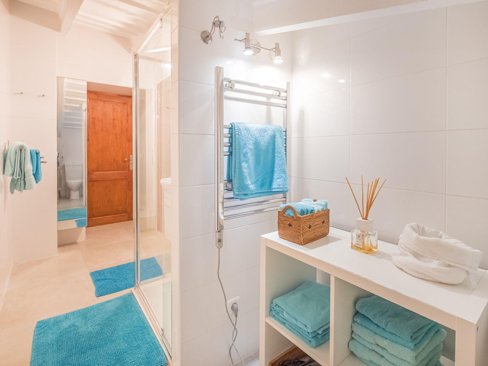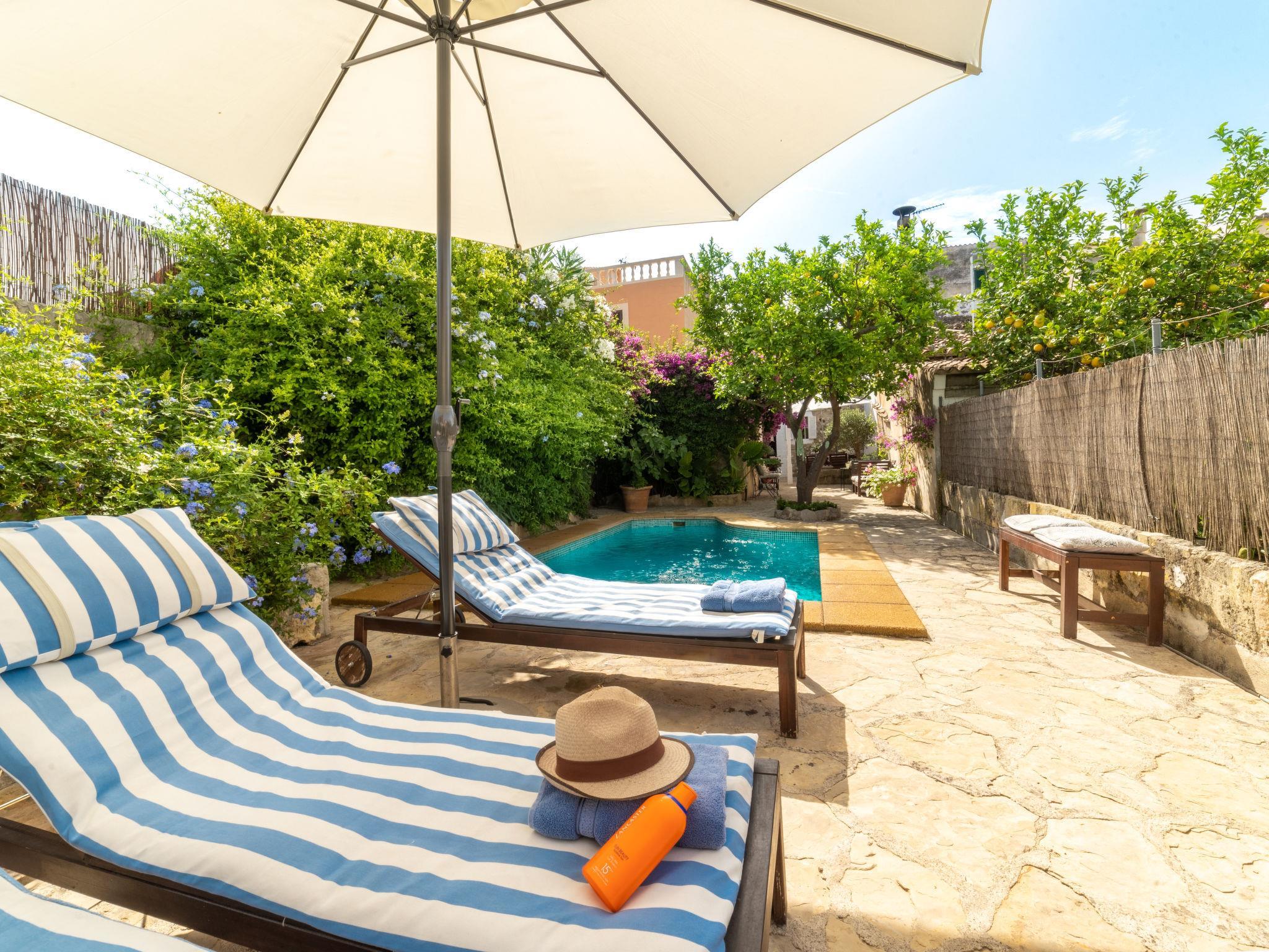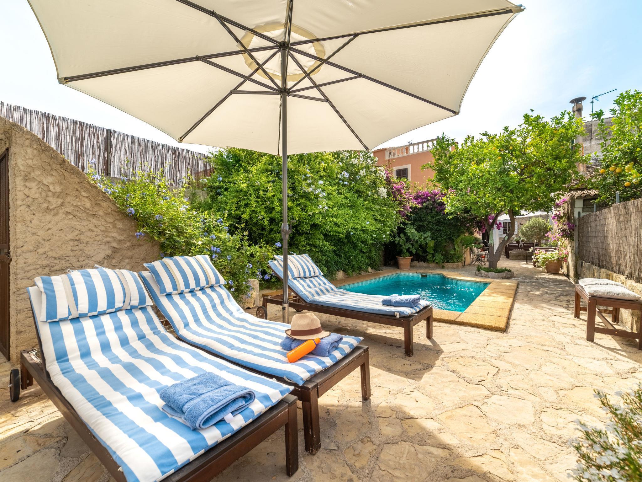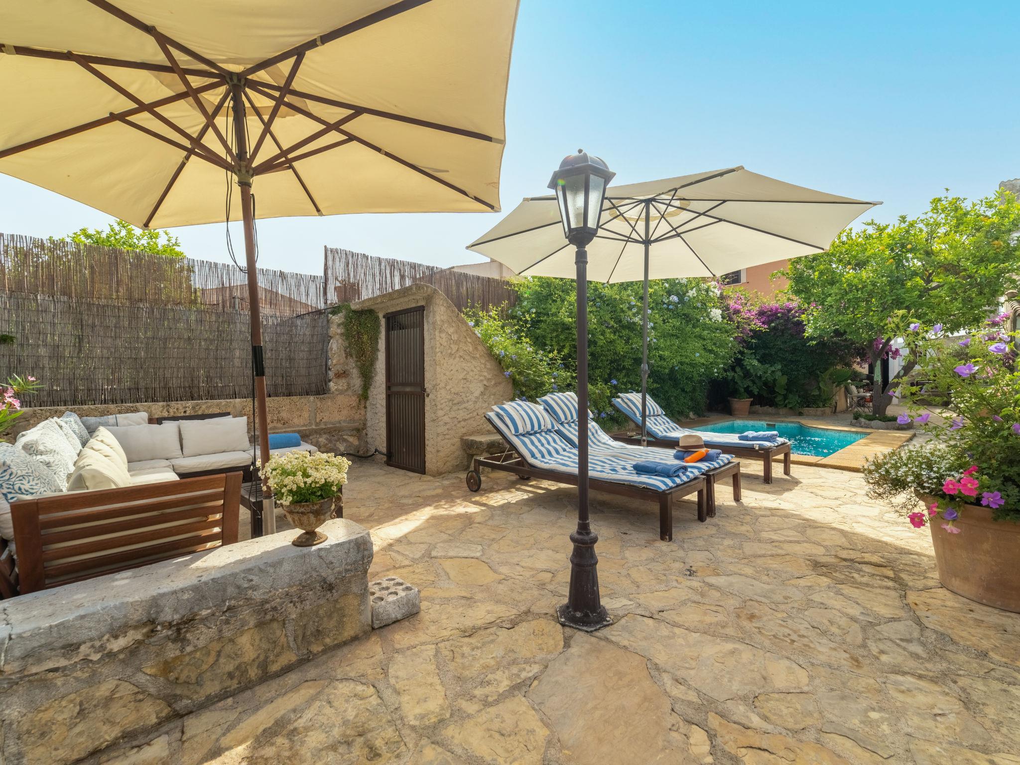 Campanet: Beautiful, rustic house "Sa Teulera", 2 storeys. In the resort, 1 km from the centre, in a quiet position, 17 km from the sea. Private: beautiful garden to relax, swimming pool angular (6 x 4 m, seasonal availability: 01.Mar. and 30.Nov.). Shower/WC in the pool area, patio (100 m2), garden furniture, barbecue. In the house: with TV, internet access, WiFi, air conditioning, washing machine, tumble dryer. Shop, grocery, supermarket, restaurant, bar, bakery, café, pedestrian zone 900 m, bicycle rental 5 km, pub garden 900 m, bus stop "Campanet" 1.5 km, sandy beach "Playa de Alcudia" 17 km pebble beach "Playa de Aucanada" 18 km, shingle beach "Playa de Aucanada" 18 km, rocky beach "Playa de Aucanada" 18 km. Sports harbour 15 km, marina 15 km, golf course (18 hole) 18 km, tennis 1 km, sports centre 1 km, cycle lane 500 m. Nearby attractions: Coves de Campanet 3 km, Fonts Ufanes 5 km, Sa Clasta Wine Tour. Please note: no lift. Suitable for families, suitable for seniors baby equipment on request. Object suitable for 6 adults groups of teenagers on request only. The owner does not accept any youth groups. Loading and unloading of baggage is possible at the holiday house. Airfield 45 km from the property.