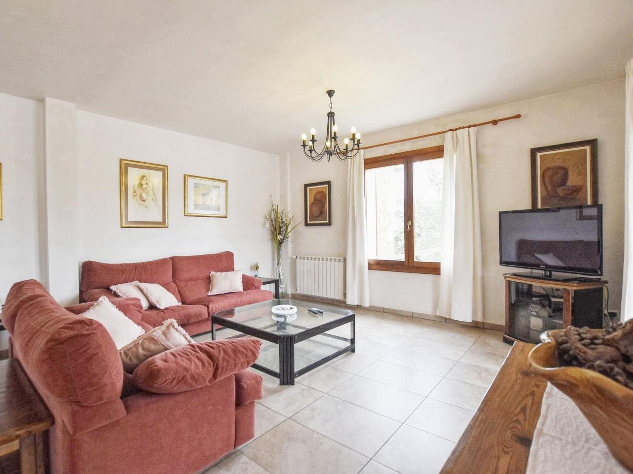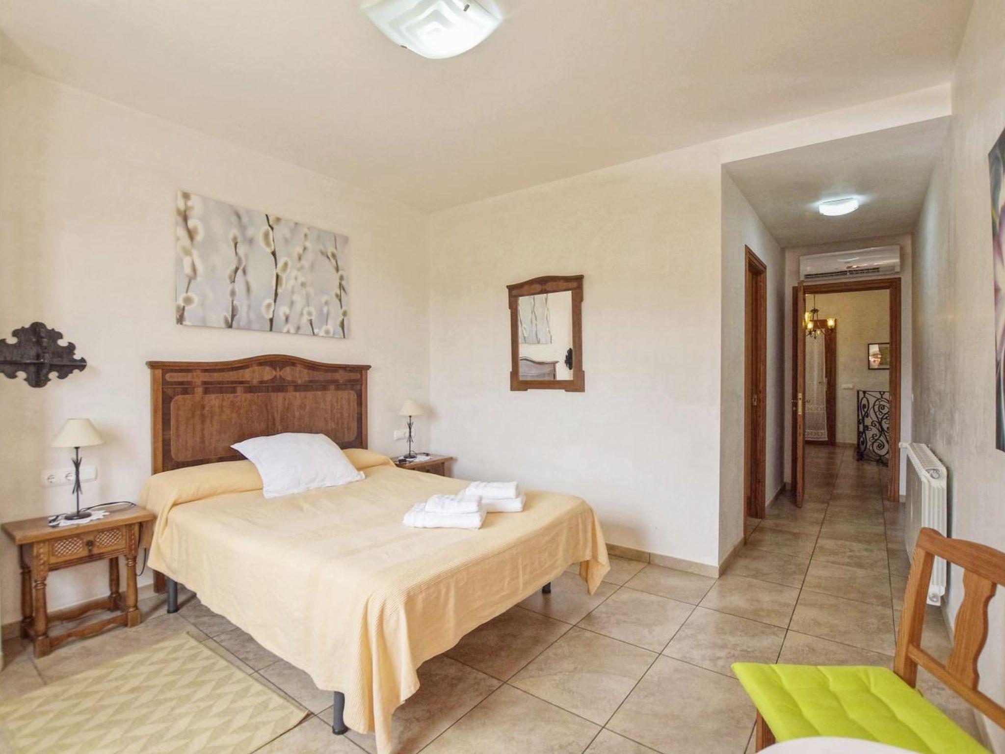 Campanet: Large, rustic, comfortable house "Pla de Ses Rotes", built in 2008, surrounded by trees and fields. In the resort Campanet, in a quiet position, 18 km from the sea, in the countryside. Private: lawn for sunbathing 2'000 m2, beautiful garden to relax, swimming pool angular (10 x 5 m, seasonal availability: 01.Mar. - 30.Oct.). Outdoor shower, patio, pergola, garden furniture, barbecue. In the house: internet access, WiFi, air conditioning, washing machine. Parking on the premises. Shop 1.3 km, grocery 1.3 km, supermarket 1.3 km, restaurant 1.3 km, bus stop 450 m, sandy beach 18 km. Please note: car recommended. Suitable for families, suitable for seniors baby equipment on request (included). Object suitable for 11 adults. The owner does not accept any youth groups. Loading and unloading of baggage is possible at the holiday house. Airfield 45 km from the property.