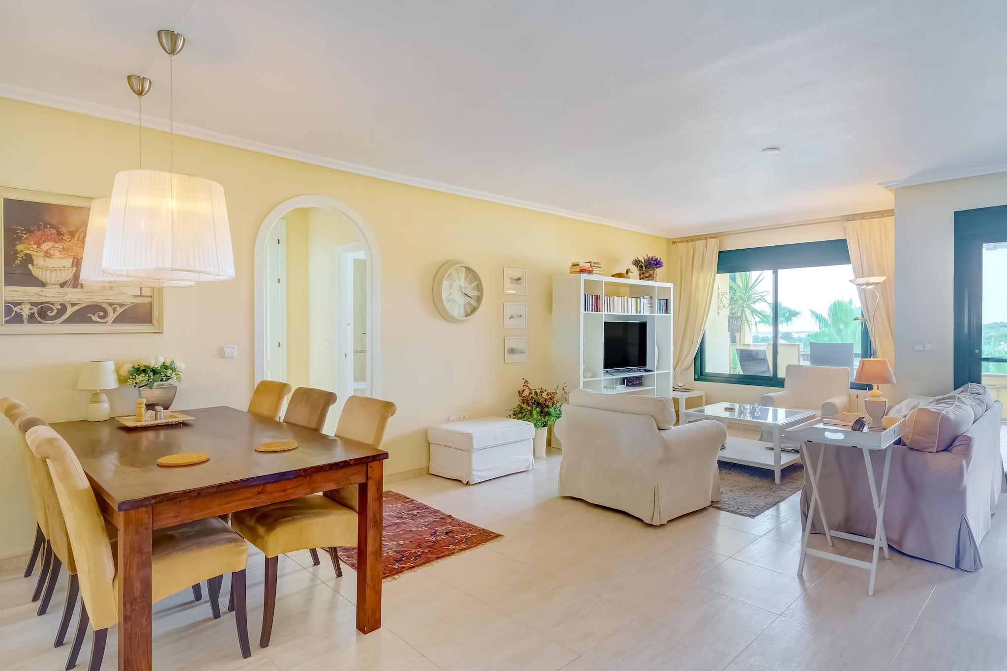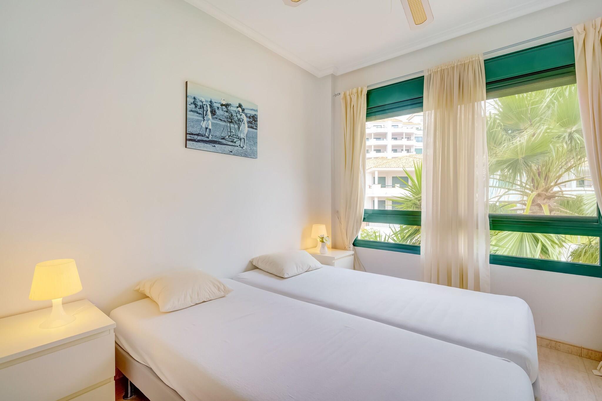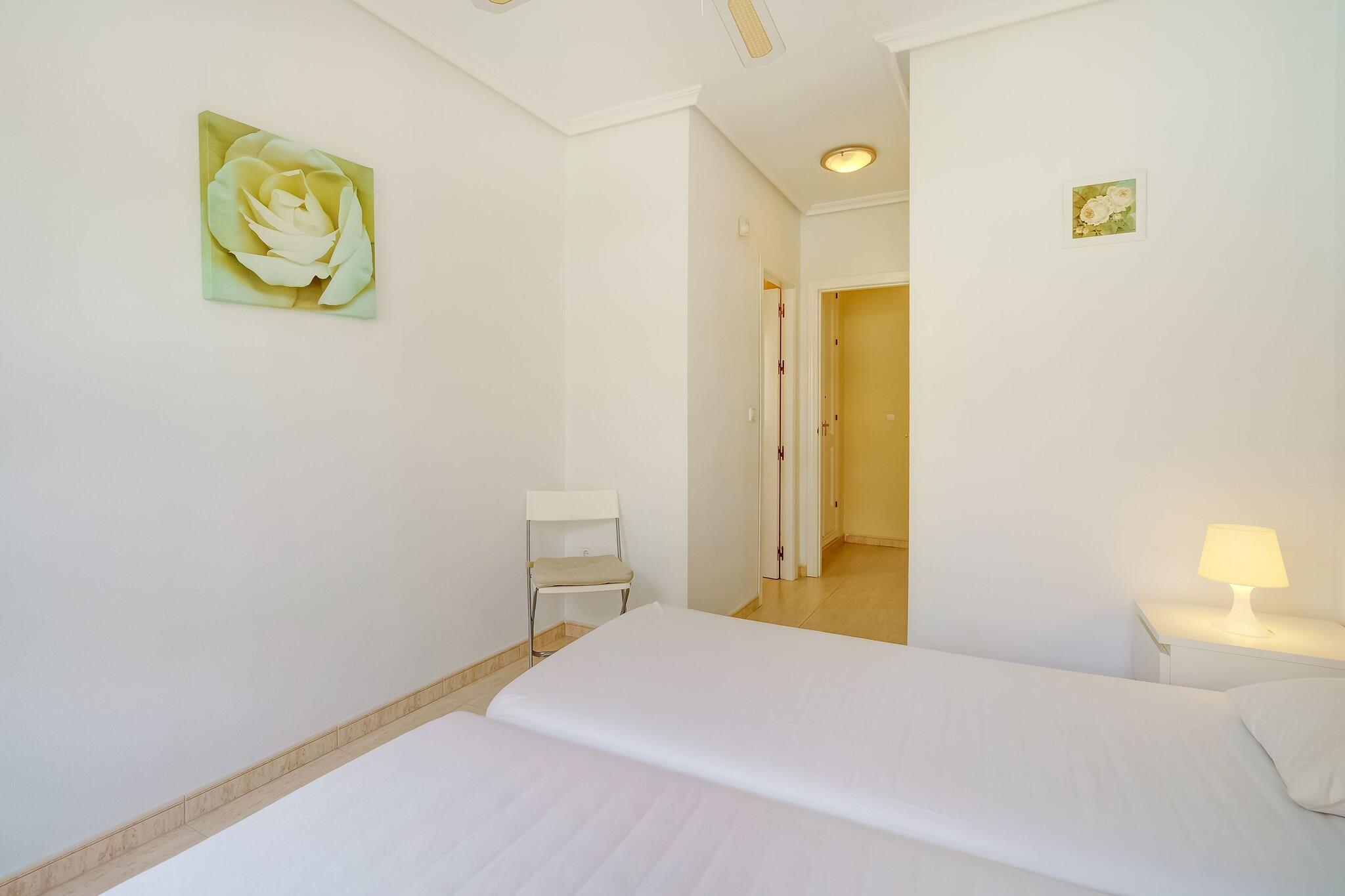 Nyd en stilfuld middelhavsflugt i denne luksuriøse 2-værelses lejlighed i Valencia, perfekt til familier eller små grupper på op til 4 gæster. Beliggende kun 11 km fra Torrevieja og 55 km fra Alicante Lufthavn, tilbyder det et fredeligt tilflugtssted med nem adgang til kystcharme og byliv. Lejligheden har en lys stue med aircondition og en privat terrasse møbleret til udendørs spisning eller afslapning i solen. Det moderne køkken er fuldt udstyret med kaffemaskine, mikroovn, opvaskemaskine, tørretumbler og vaskemaskine, ideel til længere ophold eller hjemmelavede måltider. Gæsterne kan slappe af i den fælles swimmingpool eller udforske nærliggende restauranter kun 1 km væk. Med kæledyrsvenlig indkvartering for op til 3 lodne ledsagere er hele familien velkommen. WiFi. Uanset om du er her for stranddage, kulturelle udflugter eller blot for at slappe af i komfort, tilbyder denne lejlighed den perfekte base for din Valencia-ferie.