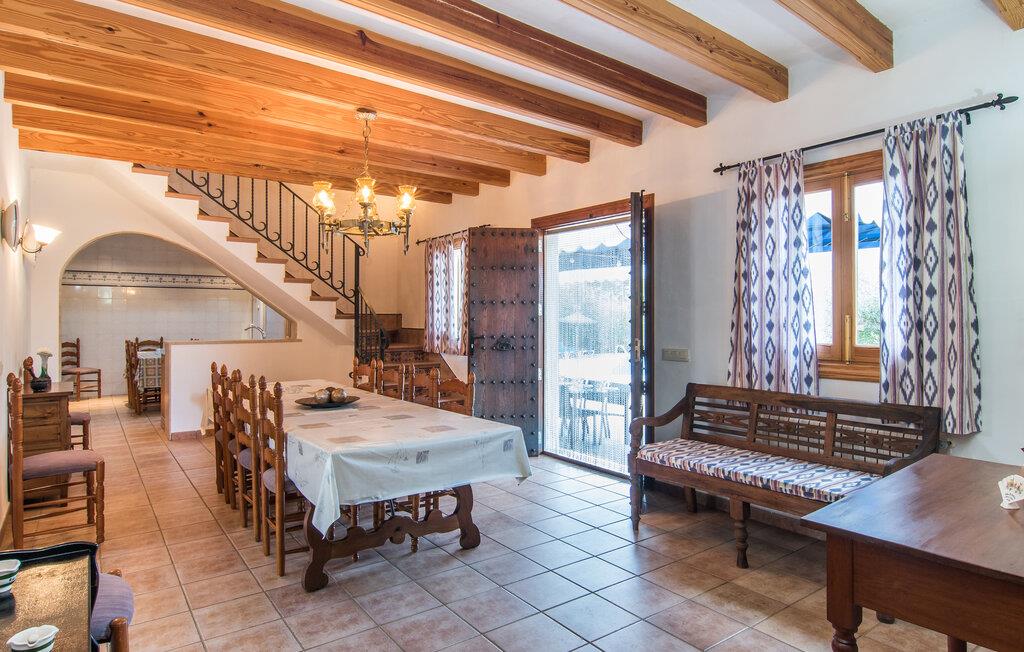 Oplev en afslappende ferie i dette rummelige feriehus på det sydlige Mallorca. Omgivet af brede marker og middelhavsnatur kan I nyde fred og privatliv her, mens I stadig kun er en kort køretur fra øens smukke strande. Find jer godt til rette i de rummelige opholdsområder. Fincaens traditionelle charme afspejles i de høje lofter med træbjælker, rustikke klinkegulve og varme mallorcanske møbler. Det store køkken med et langt spisebord lægger op til at lave mad sammen.