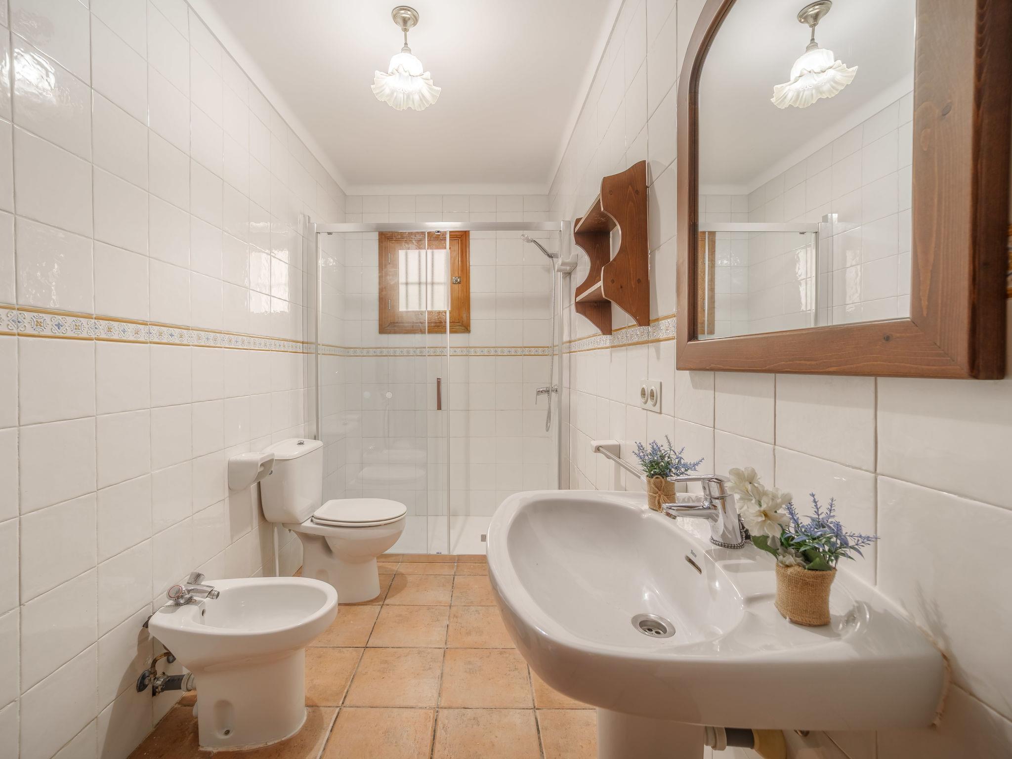 Campos 5 km from Es Trenc: Beautiful, cosy, simple farmhouse "Es Palmer des Trenc", 2 storeys. Property composed of main house and outbuilding, 6 km from the sea, 6 km from the beach. Private: garden with lawn, swimming pool angular (3 x 7 m, seasonal availability: 01.Mar. - 31.Oct.). Patio, pergola, garden furniture, barbecue, pool maintenance by the owner/gardener. In the house: washing machine. Parking at the house. Grocery 8 km, supermarket 8 km, shopping centre 8 km, restaurant 6 km, bar 6 km, bakery 8 km, bus stop "Campos" 8 km, sandy beach "Ses Covetes" 6 km. Marina 8 km, golf course (18 hole) 16 km. Nearby attractions: Ses Covetes 8 km, Campos 8 km, Santanyi 14 km, Ses Salines 6 km. Please note: car recommended. Suitable for families, baby equipment (included). Object suitable for 8 adults. The owner does not accept any youth groups. Loading and unloading of baggage is possible at the holiday house. Airfield 39 km from the property.