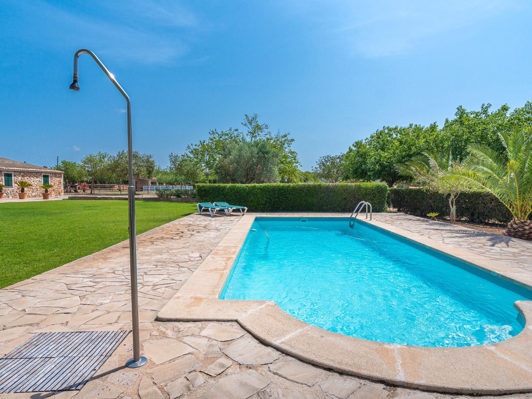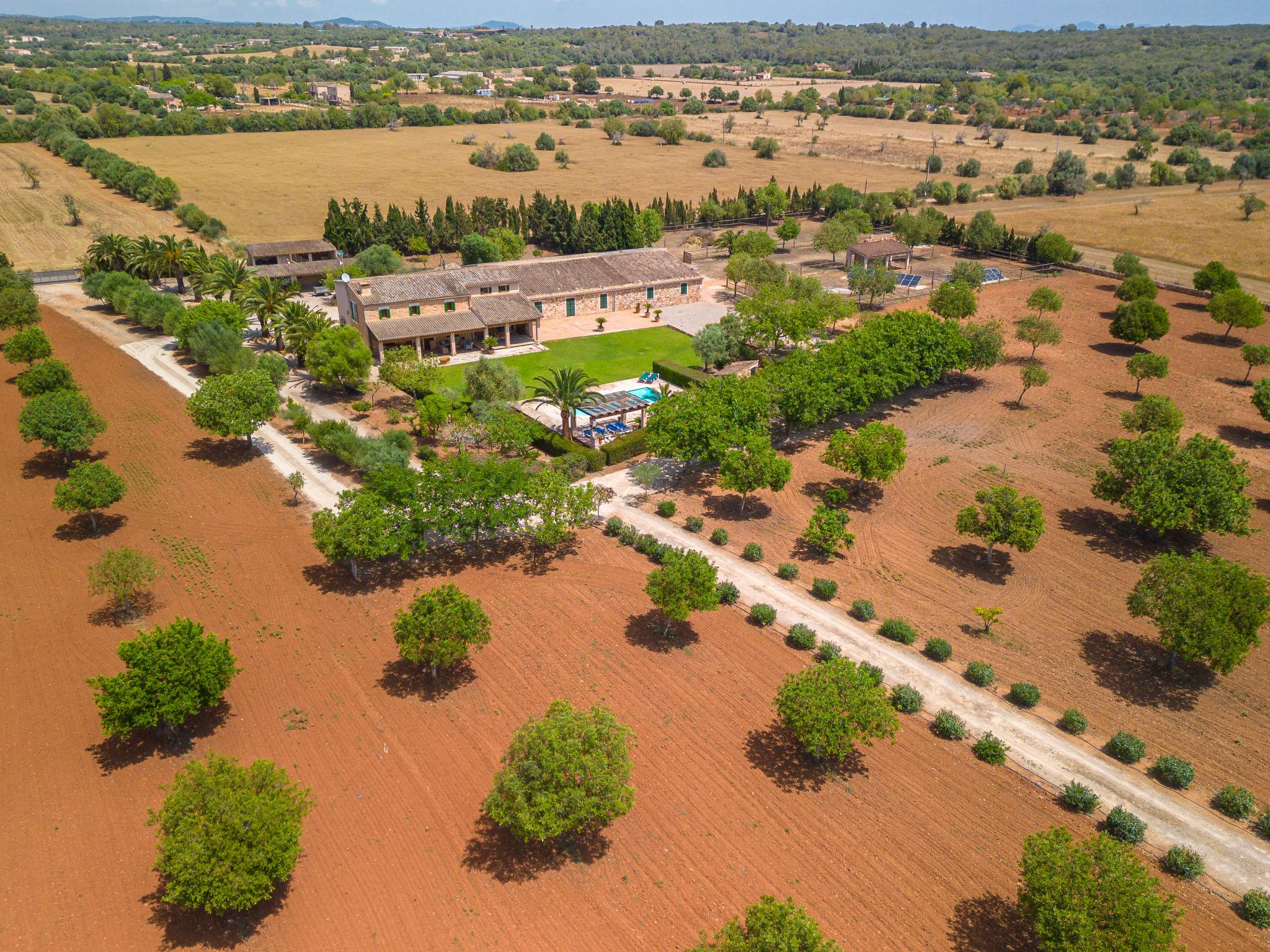 Farm estate "Son Viquet", detached, surrounded by fields. 6 km from the centre of Campos, 18 km from the centre of Llucmajor, 43 km from the centre of Palma, 17 km from the sea. Private: natural state property 60'000 m2, lawn, swimming pool (10 x 4 m, seasonal availability: 01.Jan. - 31.Dec.). Outdoor shower, parking on the premises. Supermarket 6 km, bus stop "Campos" 2 km, sandy beach "Es Trenc" 17 km. Golf course (18 hole) 24 km. Please note: car recommended.