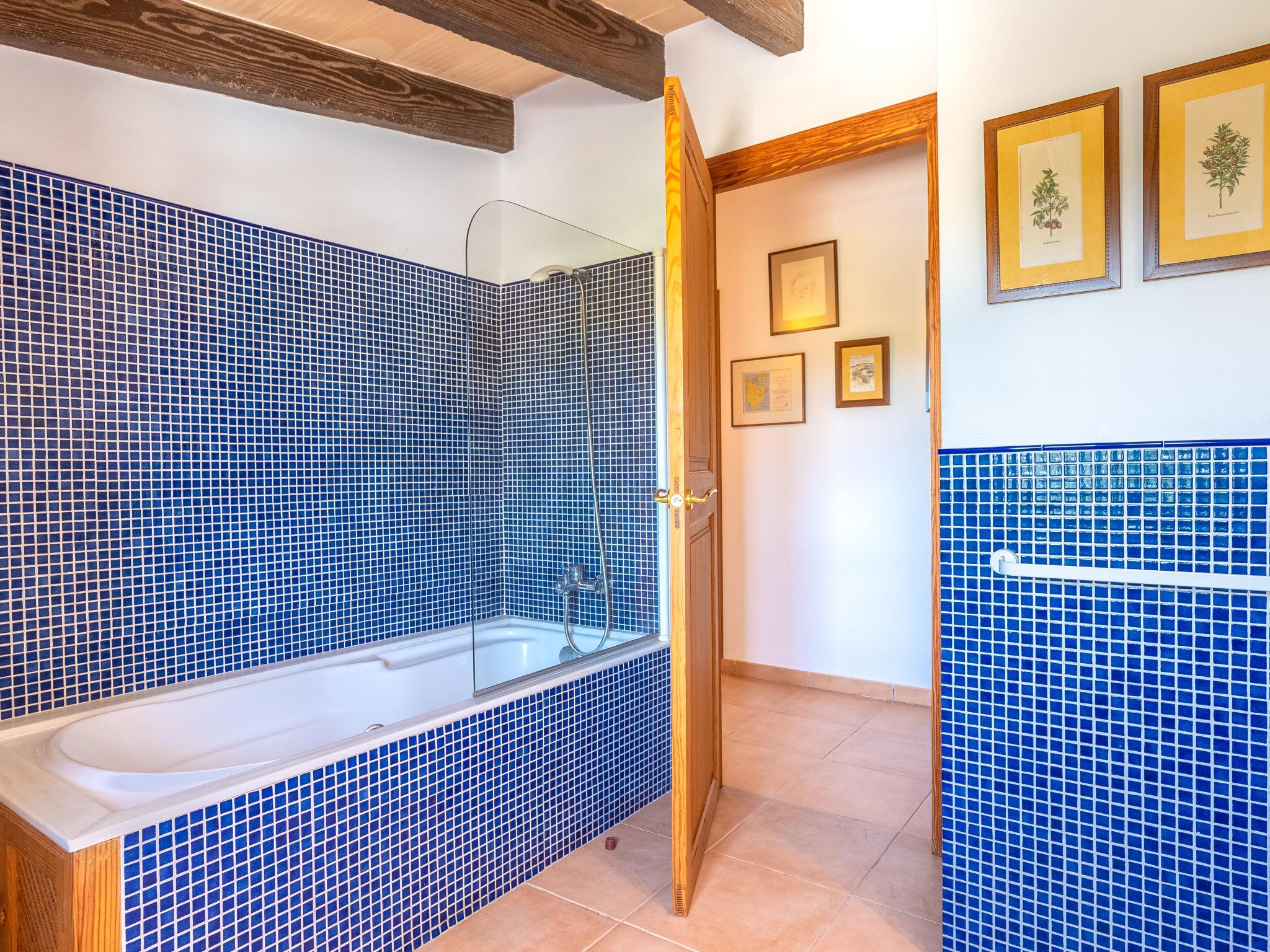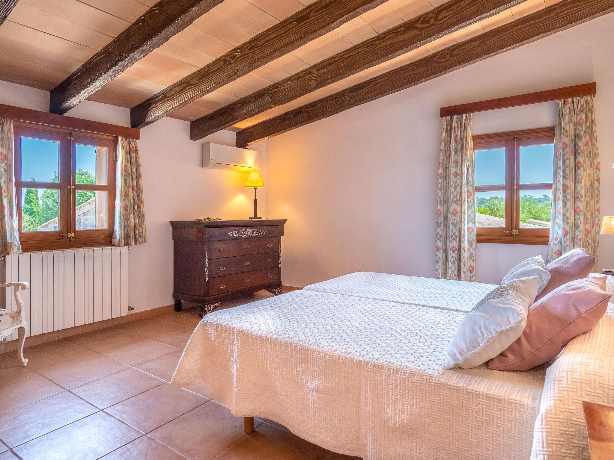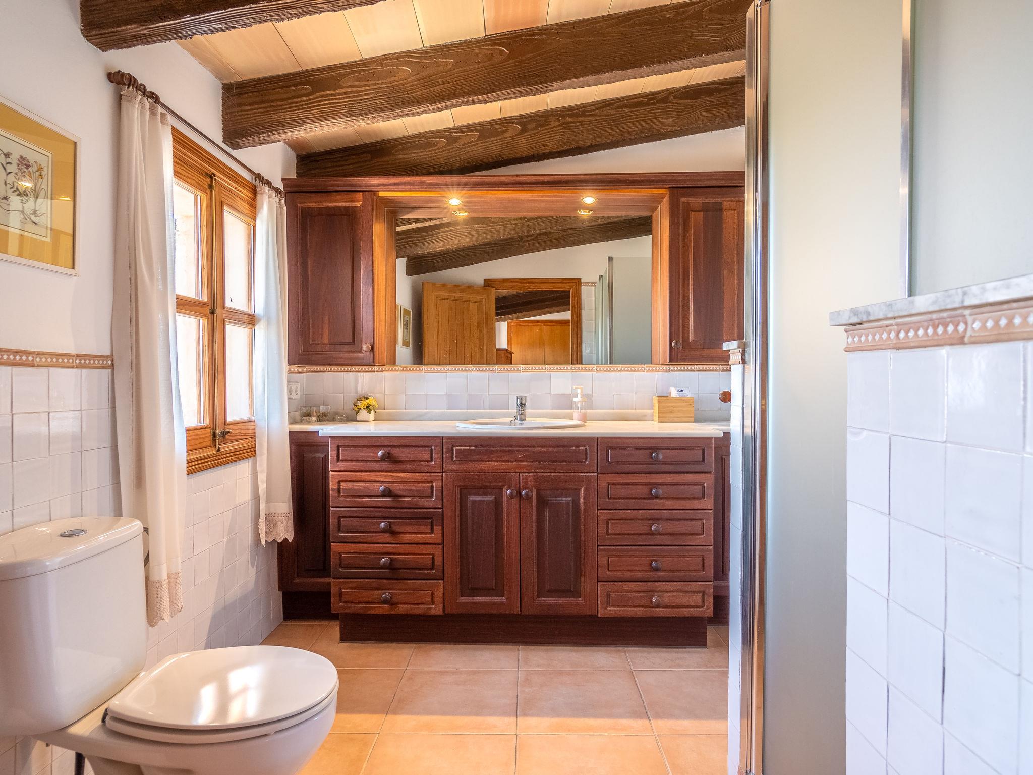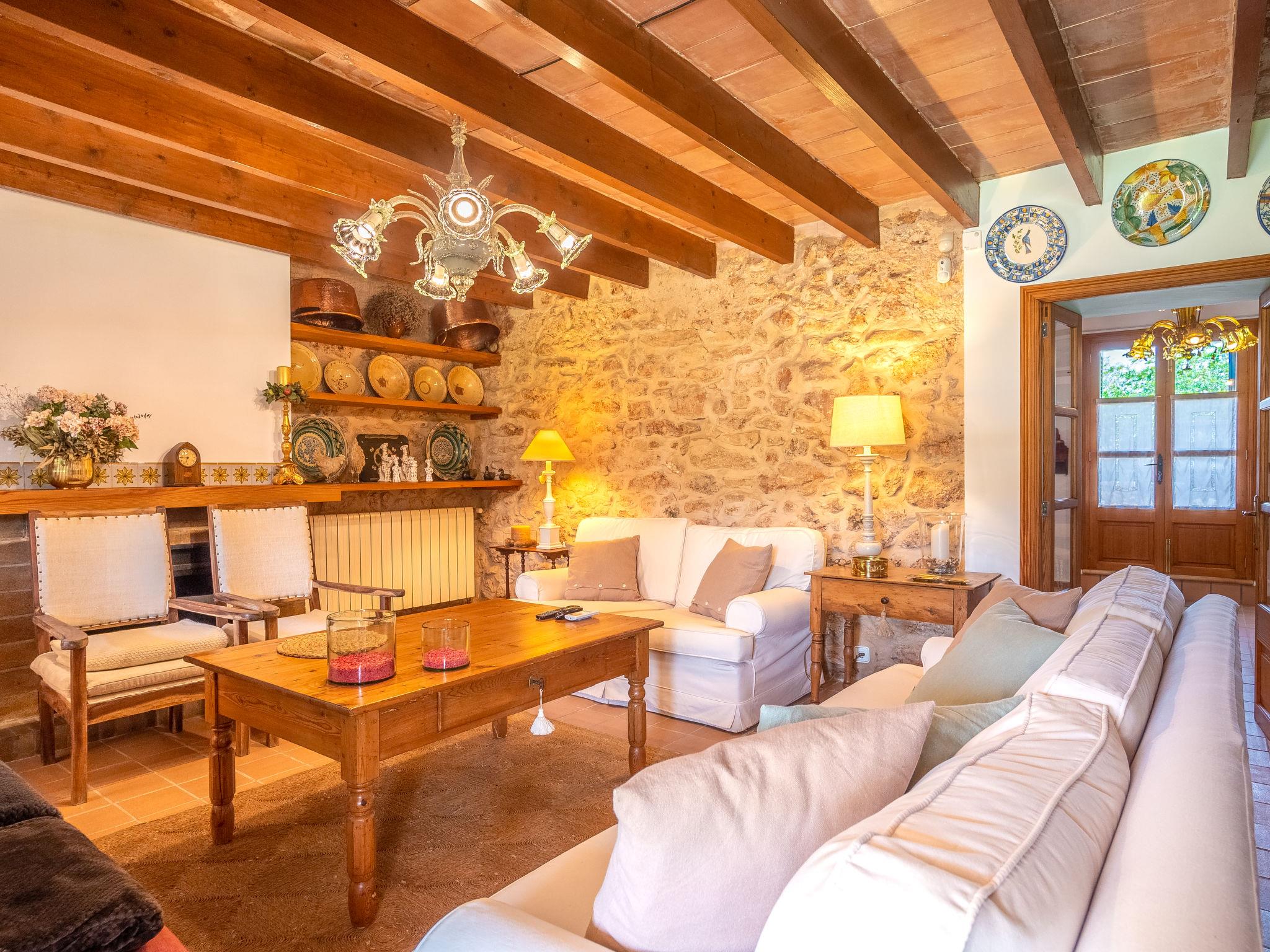 "Son Viquet", 5-room house 200 m2 on 2 levels. Beautiful furnishings: living room with open-hearth fireplace (only for decoration), satellite TV, digital TV and radio. Exit to the terrace. Kitchen (oven, dishwasher, 5 gas rings, toaster, microwave, freezer, electric coffee machine) with dining table. Exit to the terrace. Bath/WC. Upper floor: living room. 1 room with 1 french bed (180 cm), shower/WC. 1 room with 2 beds. 1 room with 1 french bed (180 cm). Bath/WC, double hand-basin. Heating, oil heating, air-conditioning. Terrace roofed. Terrace furniture, barbecue, deck chairs. Facilities: washing machine, iron, children's high chair, baby cot, hair dryer. Internet (WiFi, free). Please note: non-smoking house. Fire extinguisher. ETV/1394 // Reg. Nr.: ESFCTU00000700800086394900000000000000000000ETV/13945