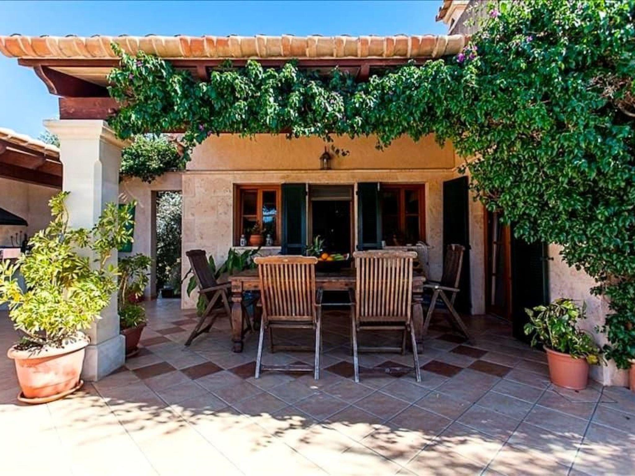 Finca Verde - directly in the surroundings of Campos in the south of Mallorca Finca Verde with pool and large garden is only 8 km away from the beaches in the south. Es Trenc can be reached very quickly, making the finca a fantastic base for exploring the surrounding area or simply for the perfect finca holiday.The typical island house has four bedrooms and is furnished for eight people. Two bathrooms, living room, dining room and kitchen complete the offer. The house has been lovingly renovated and decorated and is equipped with many details. The grounds of Finca Verde are spacious and offer plenty of private space. Shady terraces with cosy furnishings and a brick-built charcoal barbecue with outdoor kitchen are ideal for outdoor living. The rooms are spacious and offer beautiful views of the property and shops and restaurants, as well as weekly markets and many other amenities can be found in the towns of Campos and Colonia San Jordi. From Colonia San Jordi, numerous natural beaches can be easily reached on foot.special features: