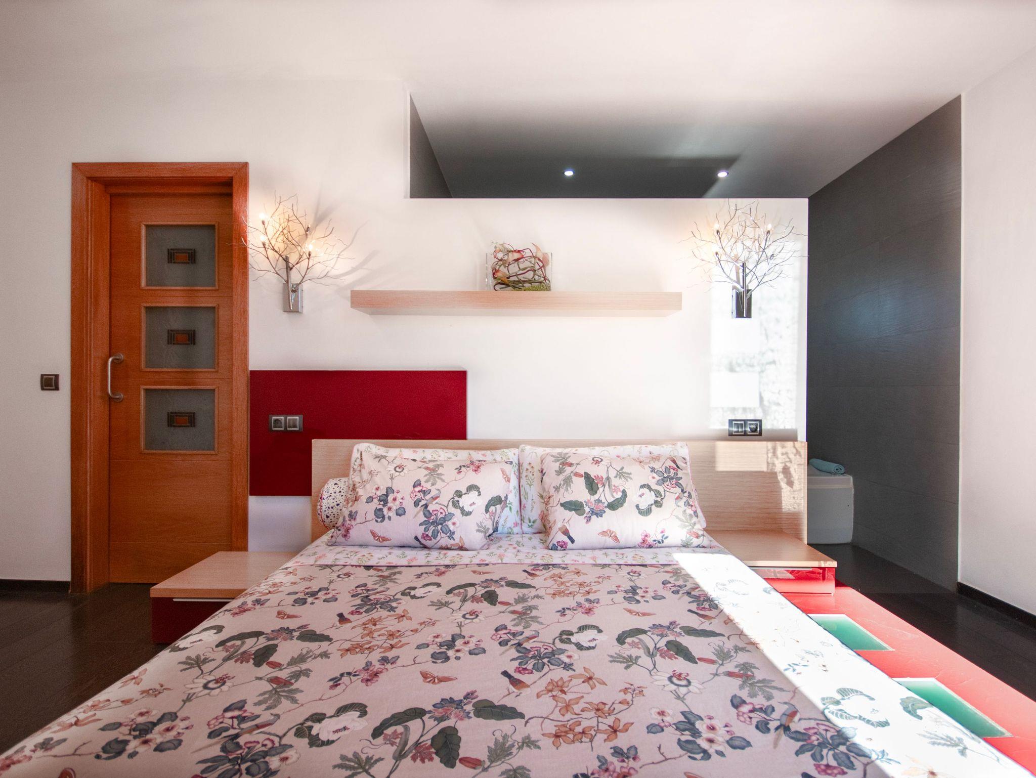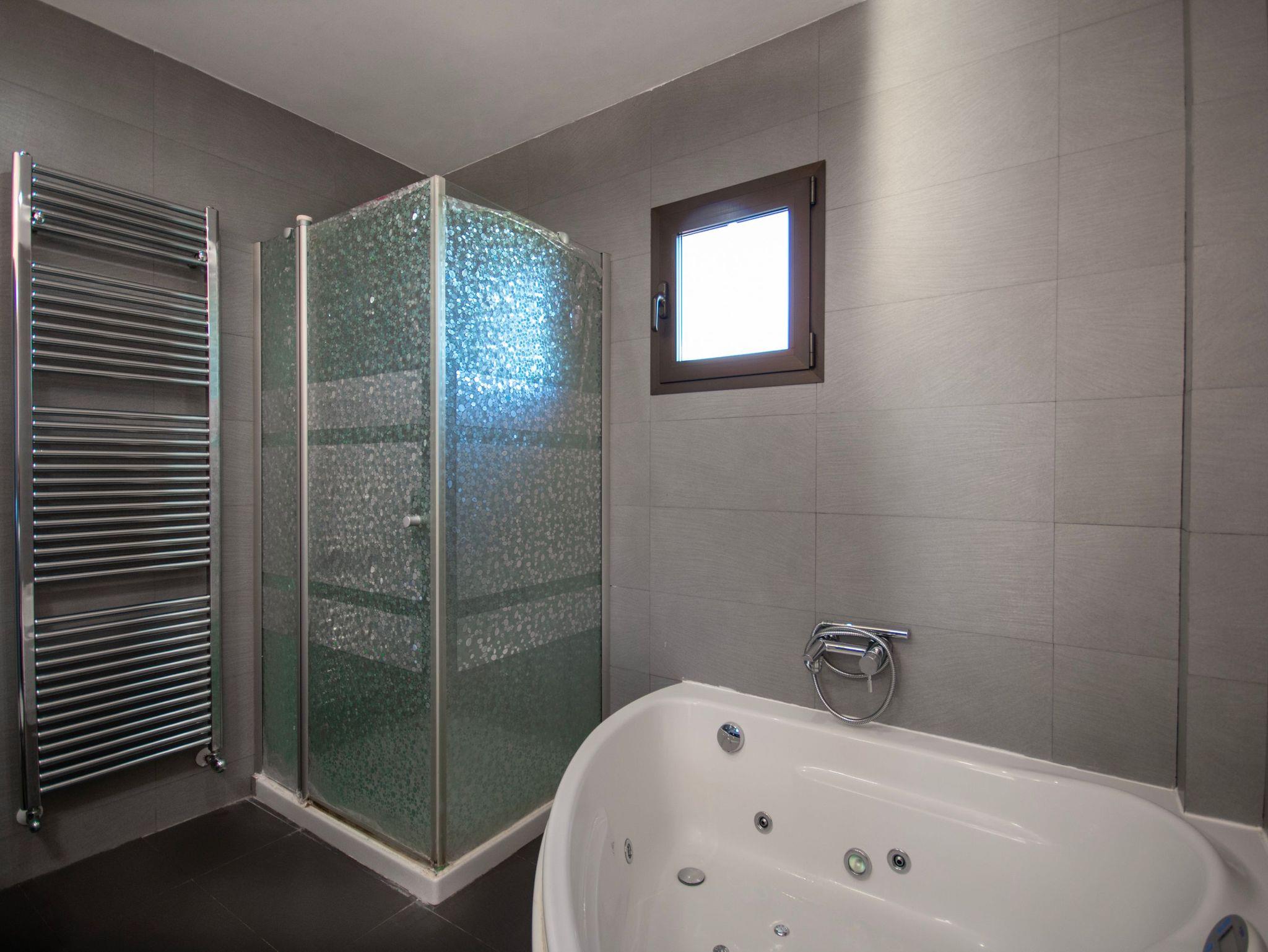 Insgesamt verfügt das Haus über drei gemütliche Schlafzimmer ? alle mit Klimaanlage, SAT-TV, Kleiderschrank oder Ankleidezimmer sowie direktem Zugang zu einer Terrasse. Im Erdgeschoss befindet sich ein Schlafzimmer mit Doppelbett und eigenem Bad, das über eine Dusche und eine Whirlpool-Badewanne verfügt. Ein weiteres Bad mit Dusche steht ebenfalls auf dieser Etage zur Verfügung. Im Obergeschoss finden Sie ein Schlafzimmer mit zwei Einzelbetten, ein weiteres mit Doppelbett sowie ein komplettes Badezimmer mit Badewanne. Für Babys stehen außerdem ein Kinderbett und ein Hochstuhl bereit. Das Haus ist mit einer Zentralheizung (Öl) für kühlere Monate ausgestattet.