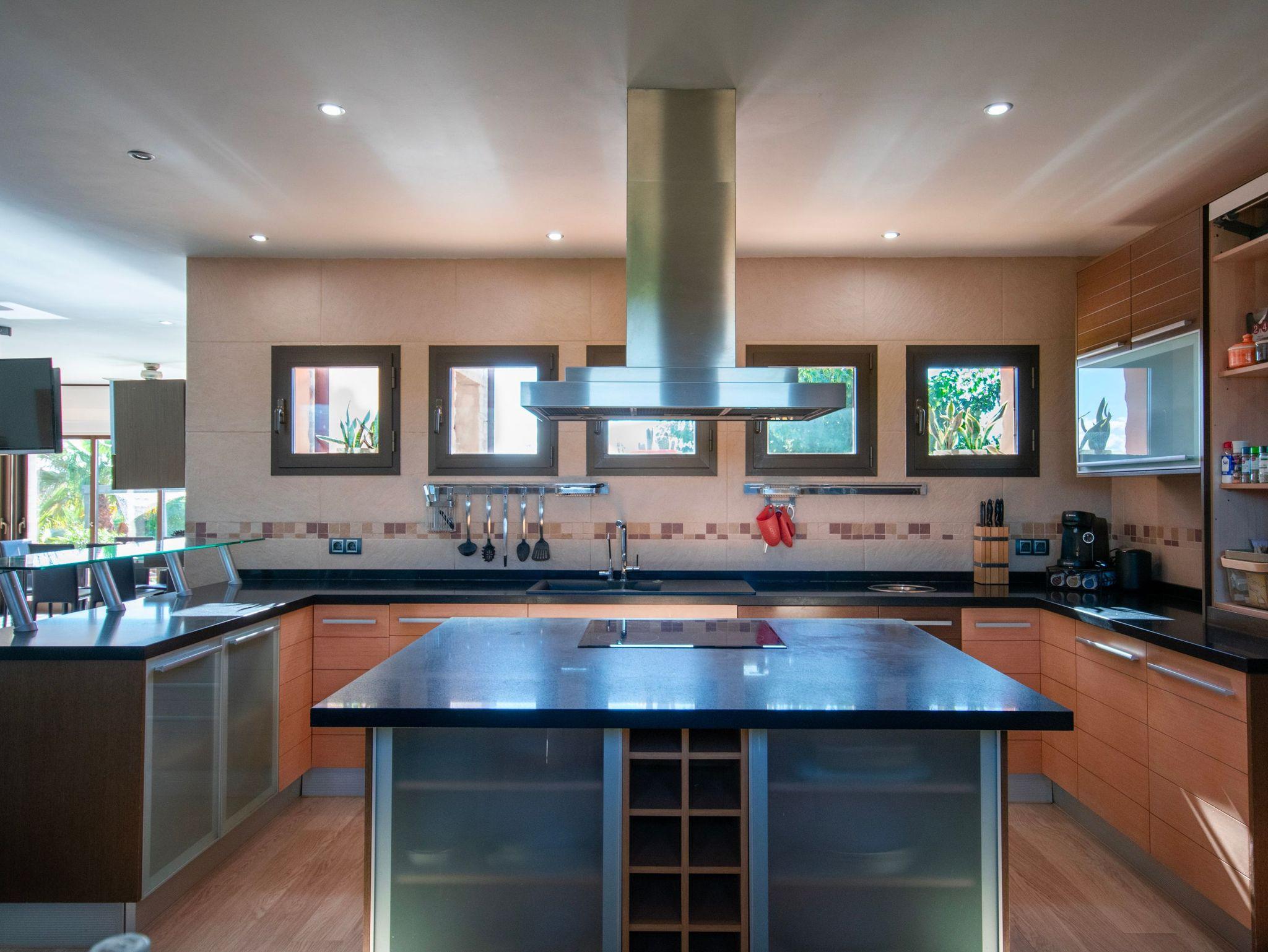 Das Innere des Hauses erstreckt sich über zwei Etagen und bietet einen hellen, offenen Wohnraum, in dem Wohnzimmer, Essbereich und Küche dank großer Fenster harmonisch miteinander verbunden sind. Hier können Sie Satellitenfernsehen schauen, Musik hören oder in der modernen Küche mit großer Kochinsel köstliche Mahlzeiten zubereiten. Eine separate Waschküche ist ebenfalls vorhanden, ausgestattet mit Waschmaschine, Bügeleisen und Bügelbrett.